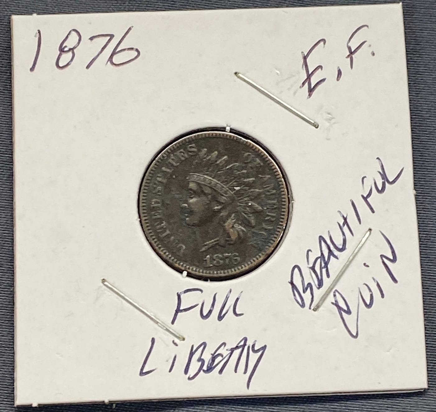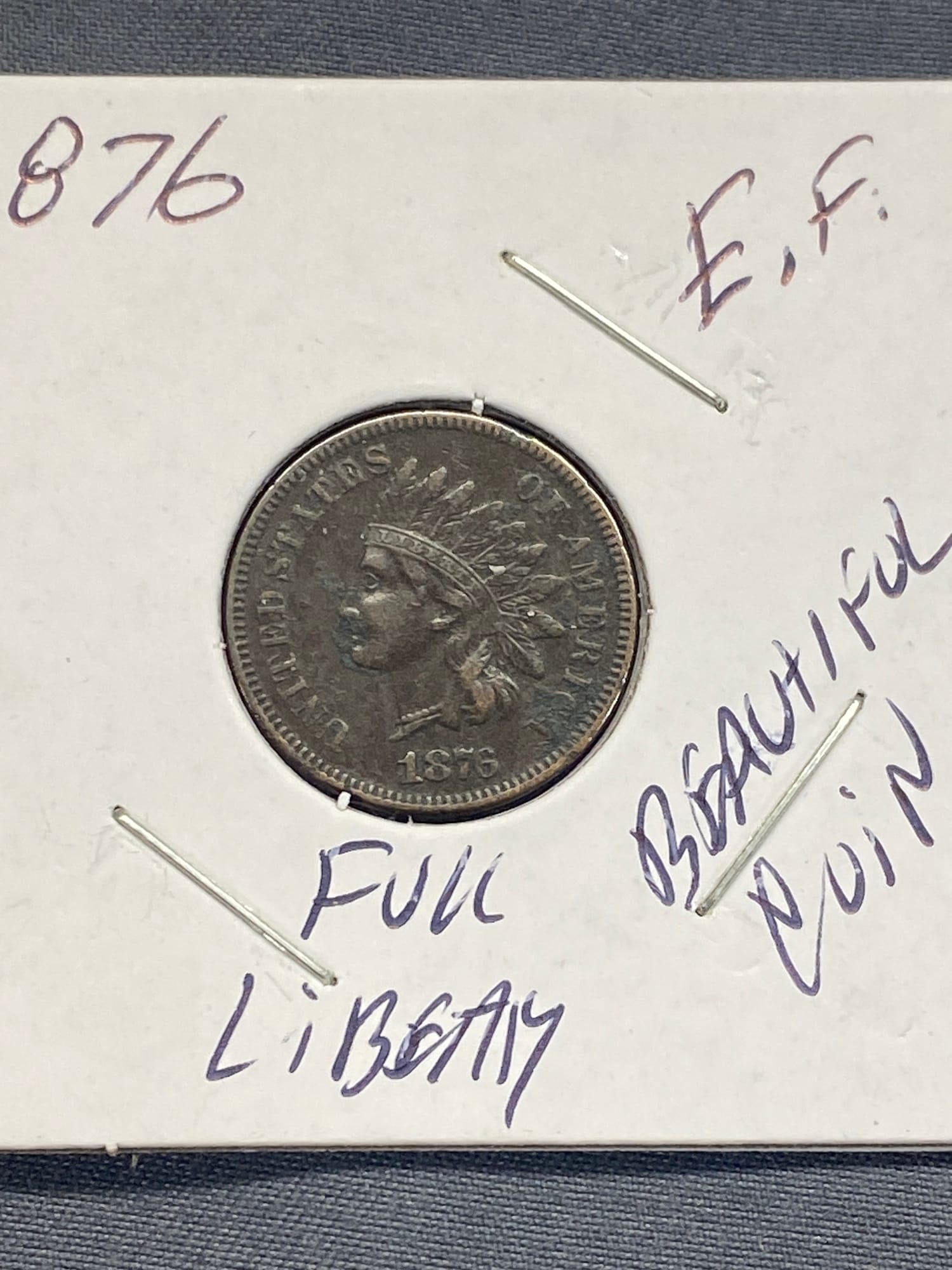 15 1876 Indian Head Penny, E. F. Full Liberty