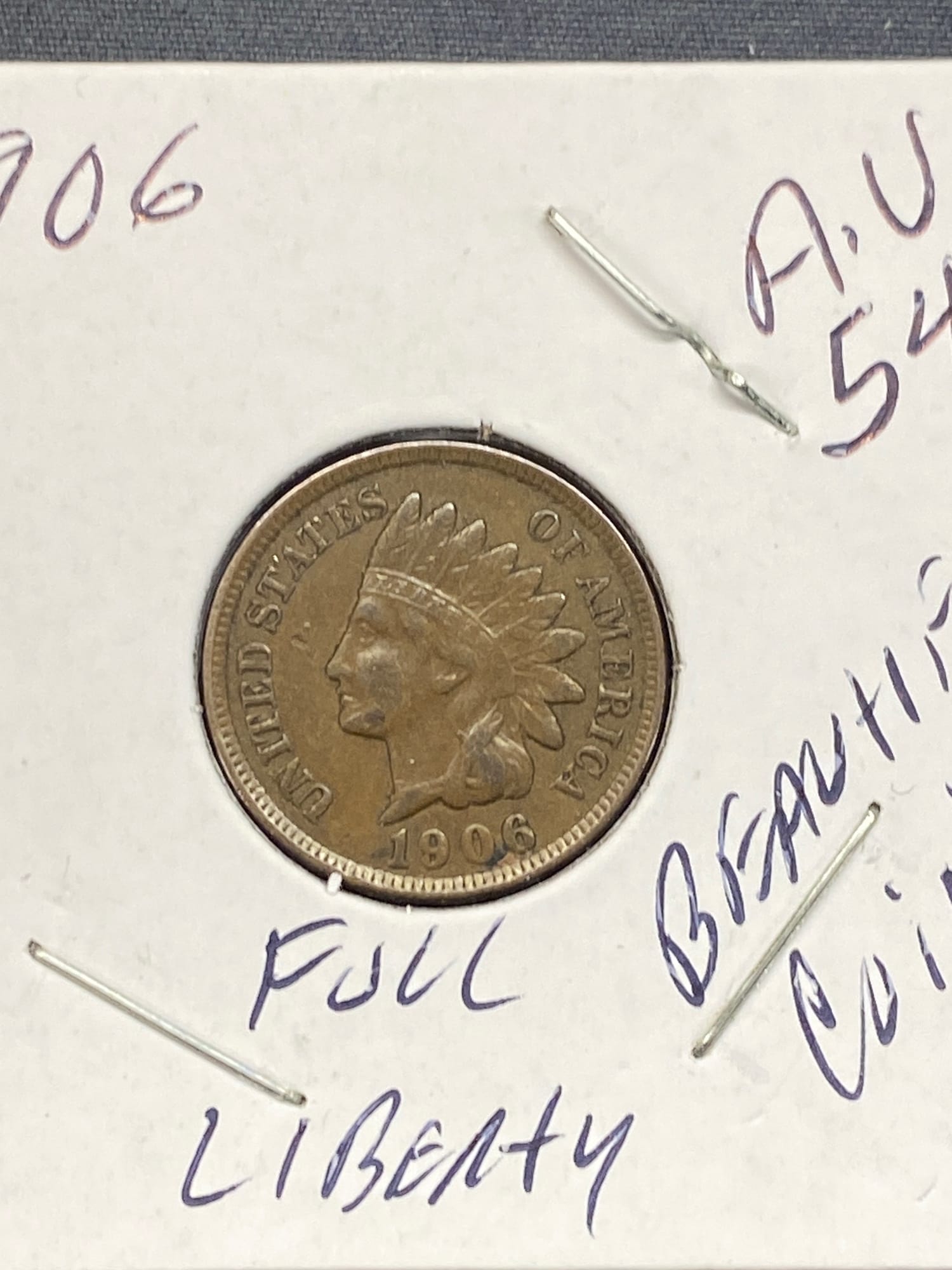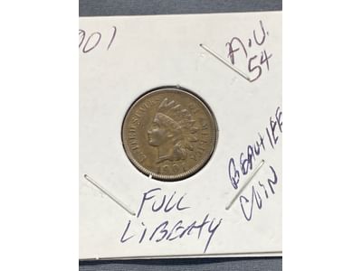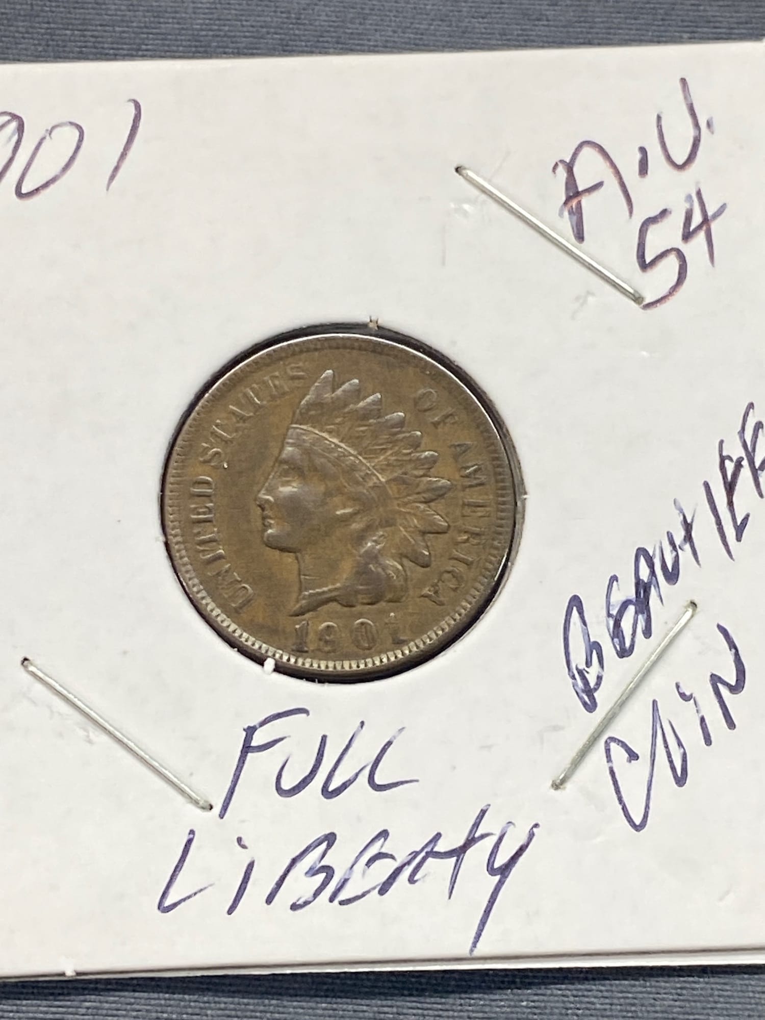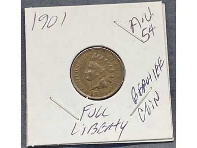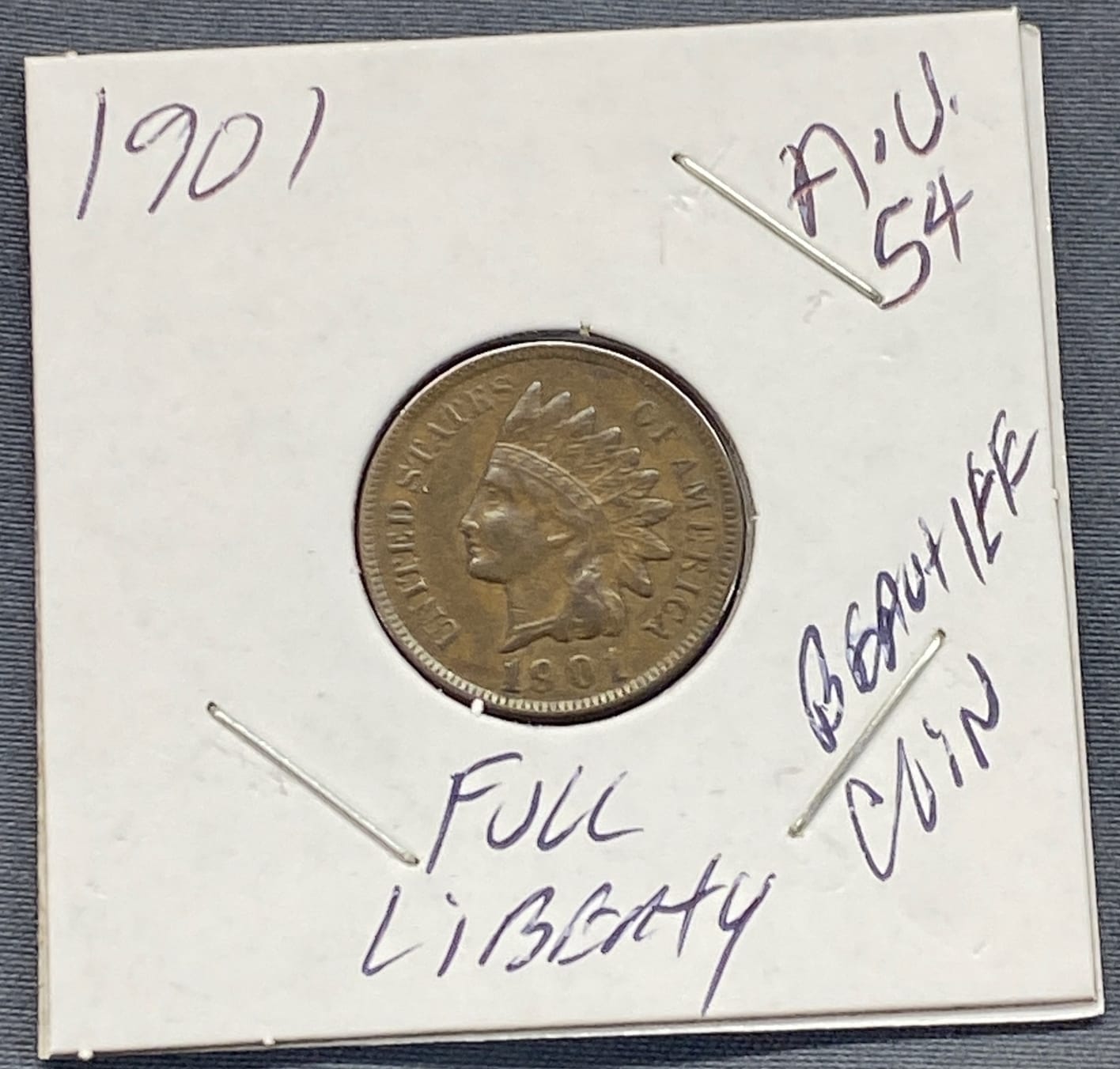 17 1901 Indian Head Penny AU-54, Full Liberty