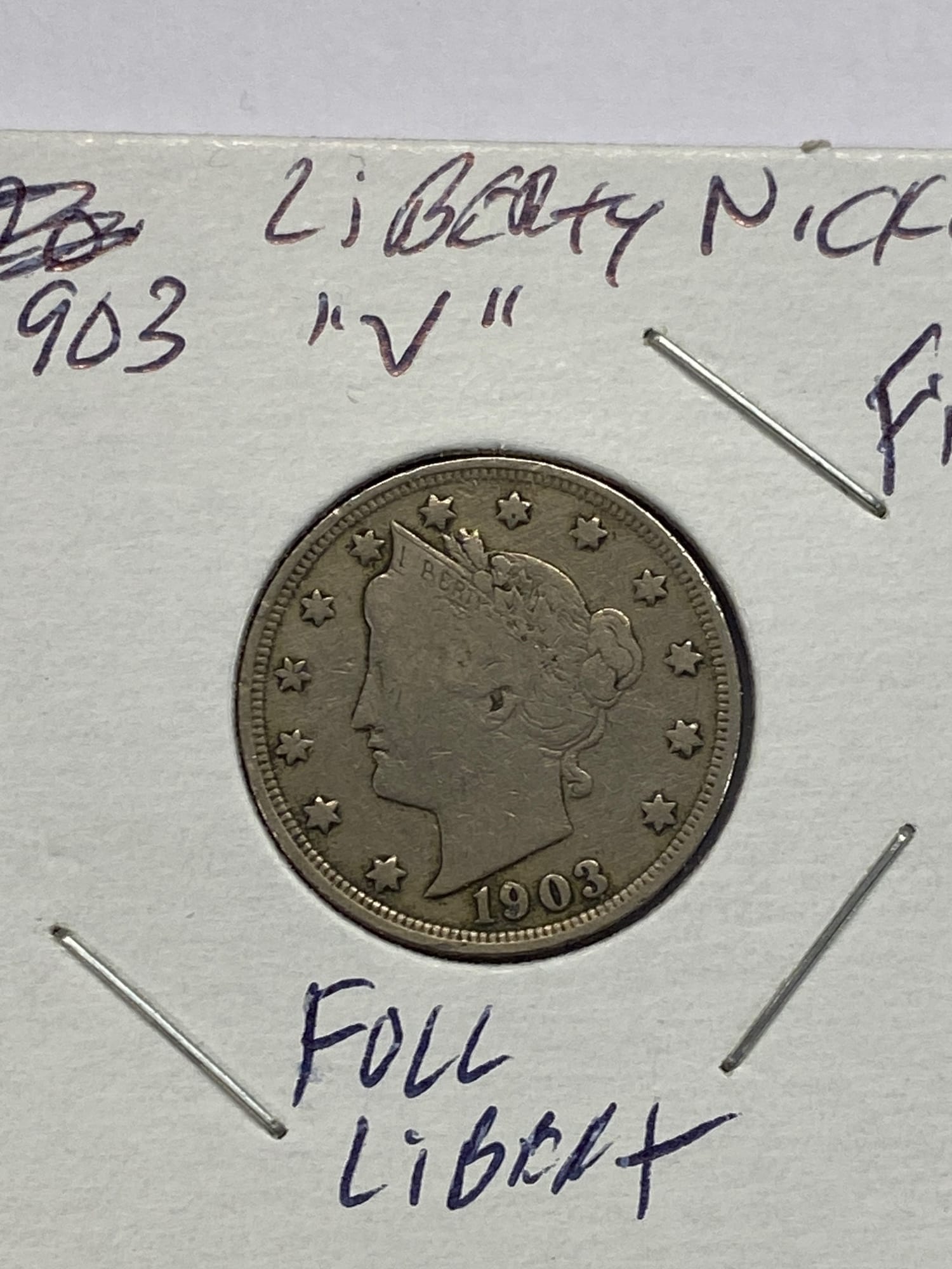 84 1903 Liberty “V” Nickel, Fine, Full Liberty