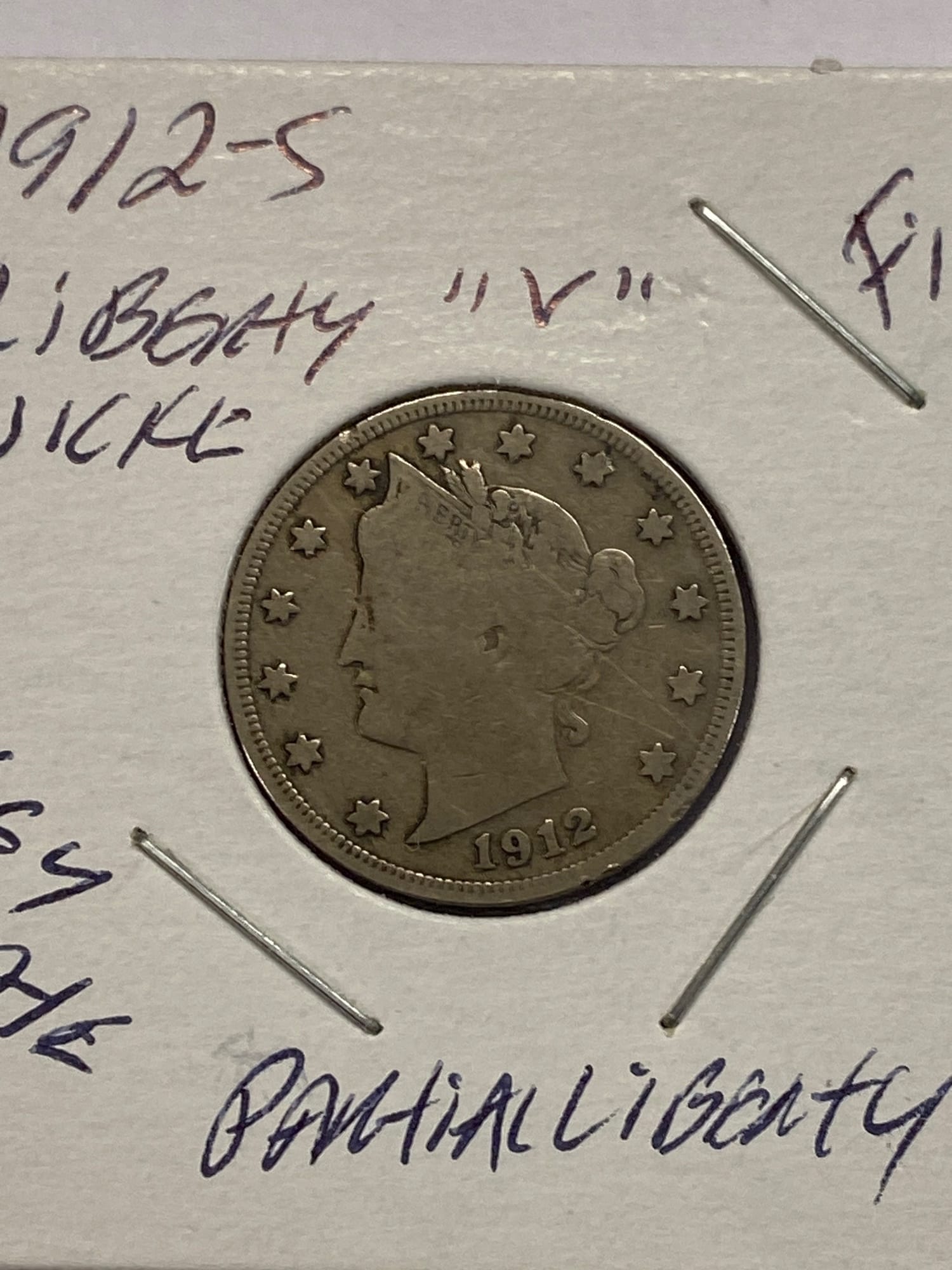 619 1912 Liberty “V” Nickel, Partial Liberty