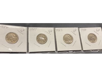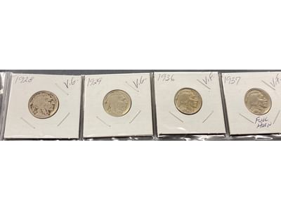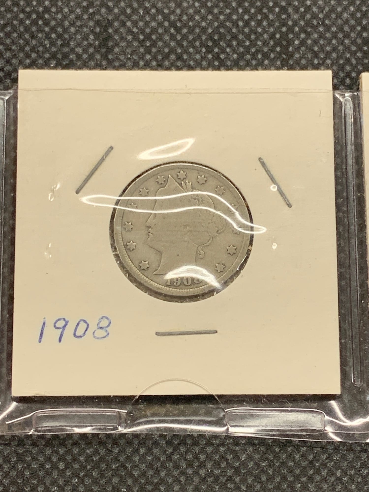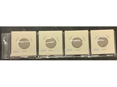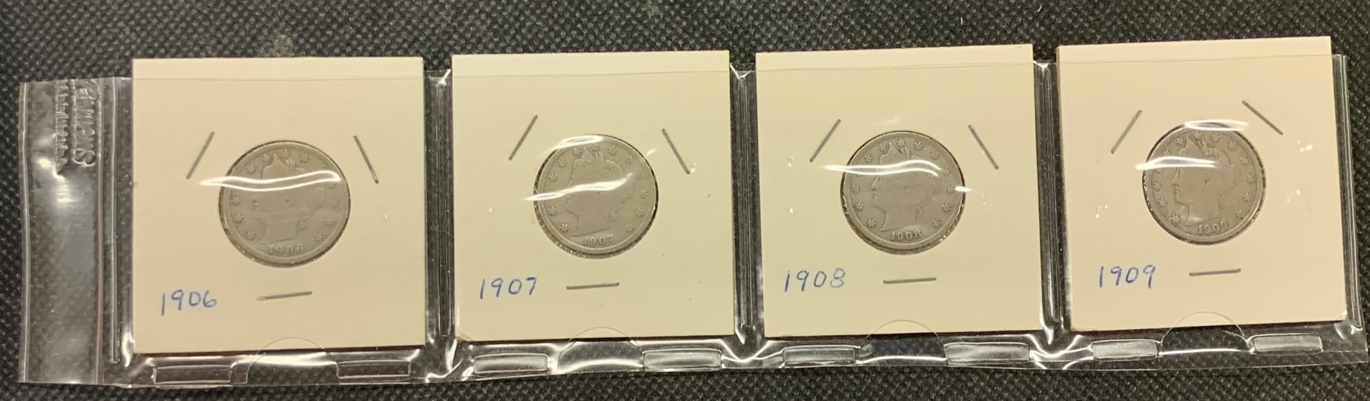 625 4 - Liberty “V” Nickels, 1906, 1907, 1908, 1909