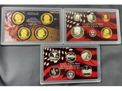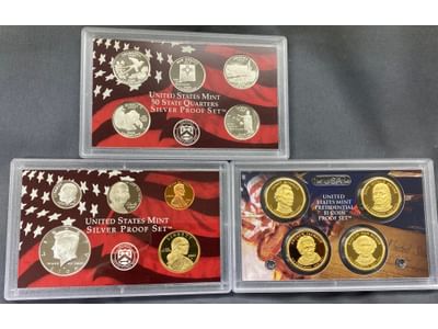 MANY HIGH GRADE/MINT/KEY DATES - SILVER DOLLARS & SILVER ROUNDS - GOLD COINS - SILVER PROOF SETS - 2 CENT & 3 CENT CONS - 1833 CAPED BUST HALF - BARBER COINS - V NICKELS - LINCOLN CENTS & MORE!