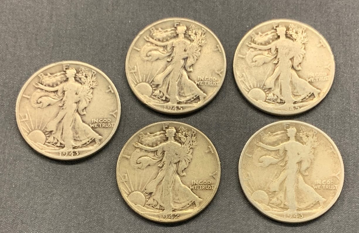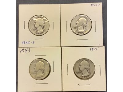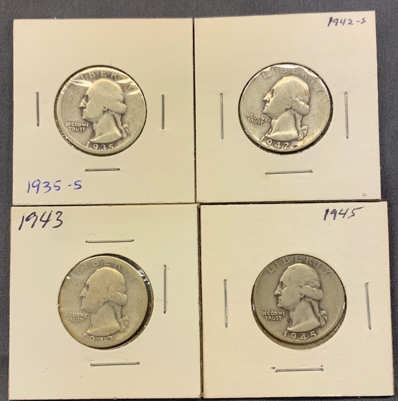 552 4 - Silver Washington Quarters, 1935-S, 1942-S, 1943, 1945