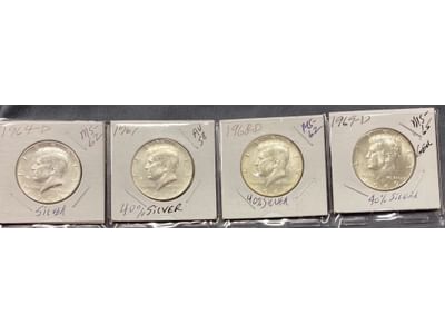 556 4 - Silver Washington Quarter, 1959, 1961, 1963-D, 1964-D