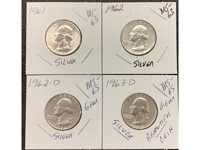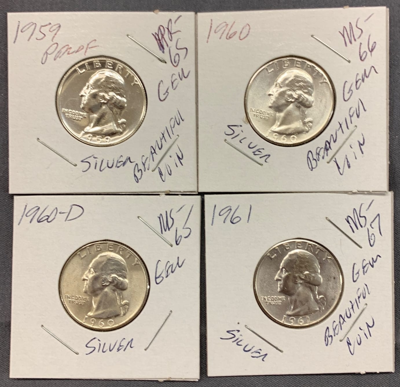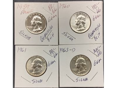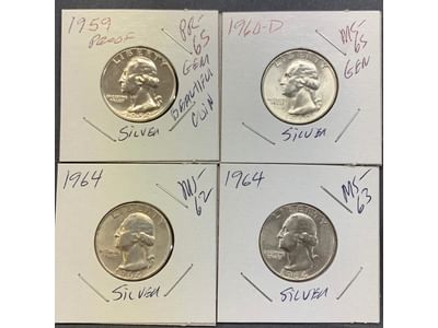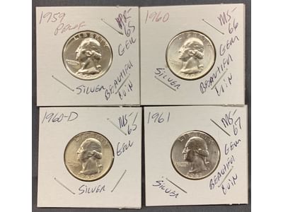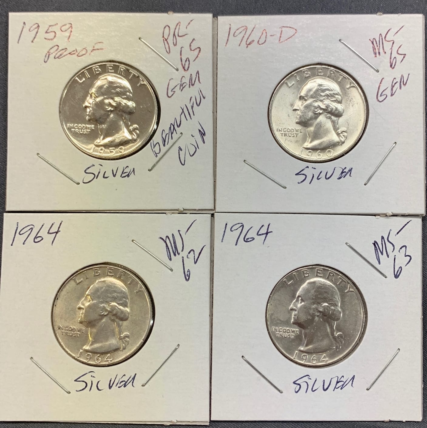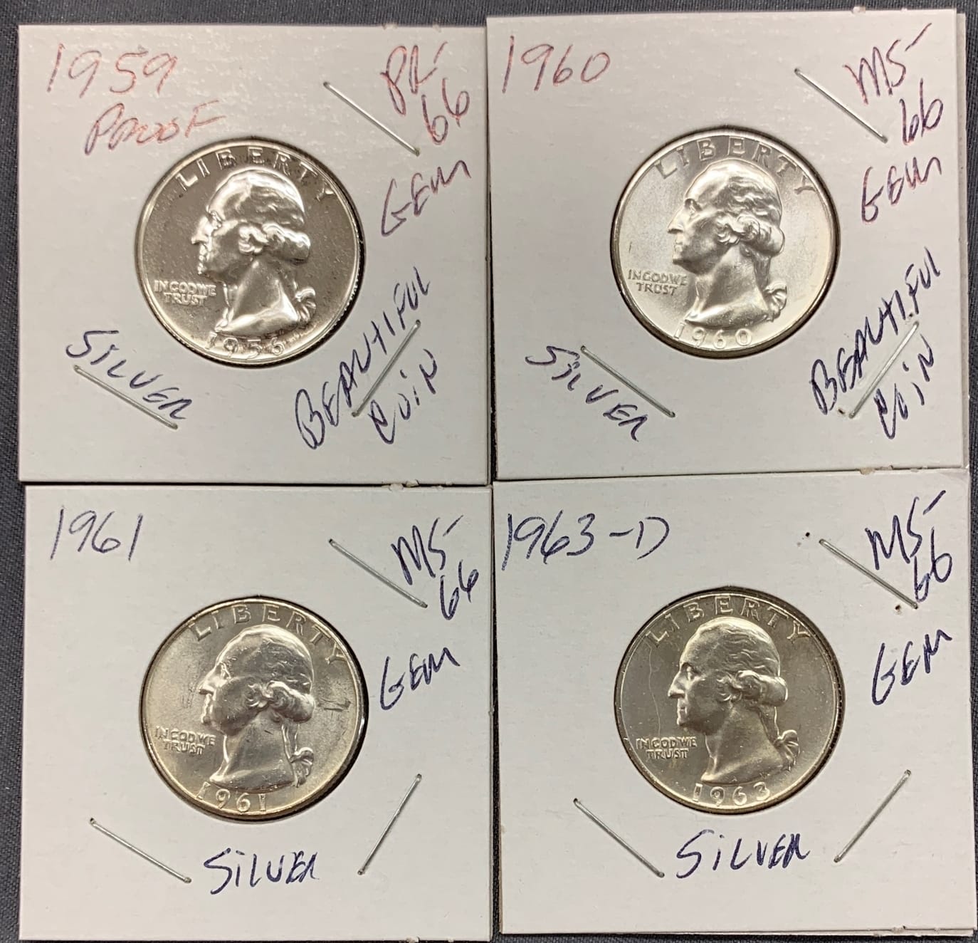 560 4 - Silver Washington Quarters, 1959, 1960, 1961, 1963-D