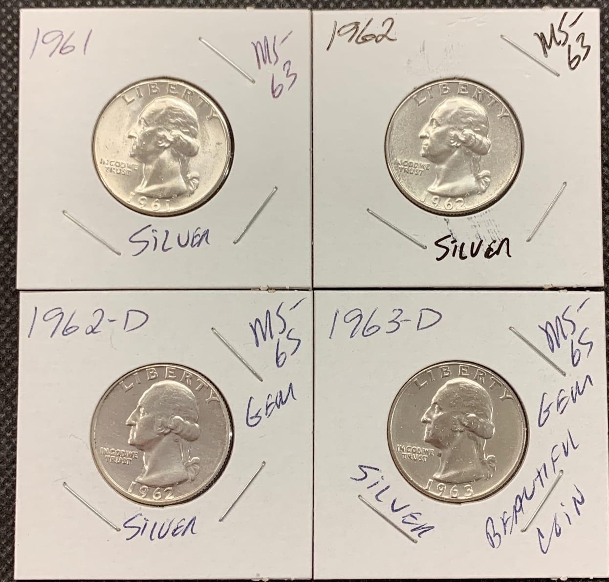 558 4 - Silver Washington Quarter, 1961, 1962, 1962-D, 1963-D
