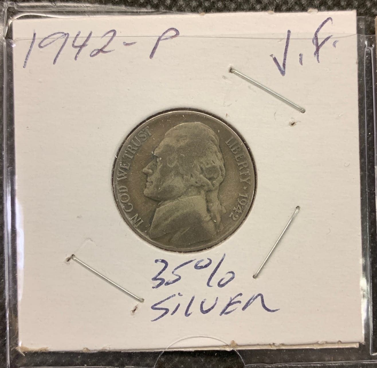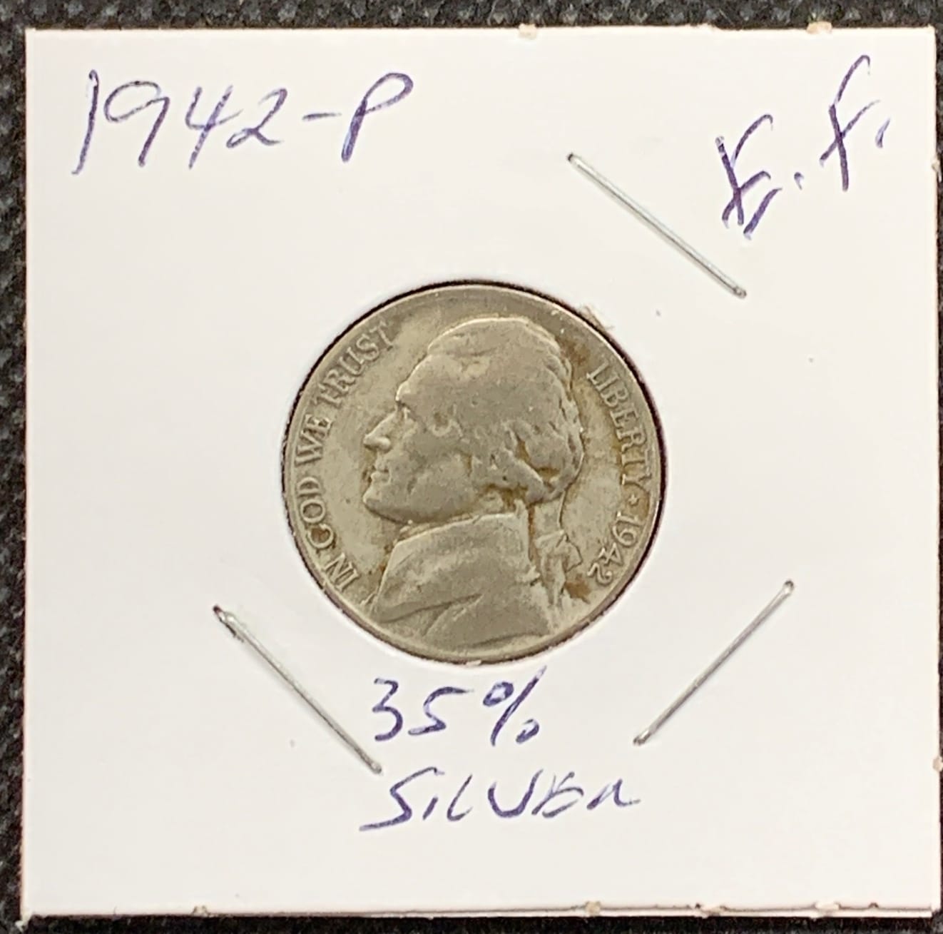 586 4 - Jefferson Nickels, 1942-P, 1944-P, 1945-S, 1945-D