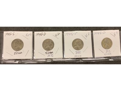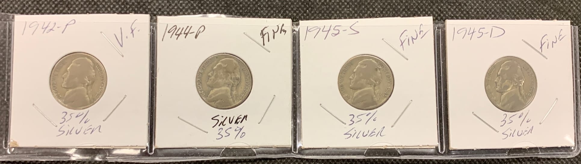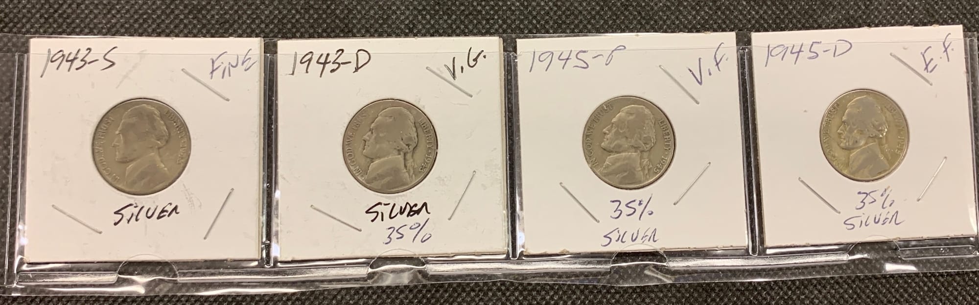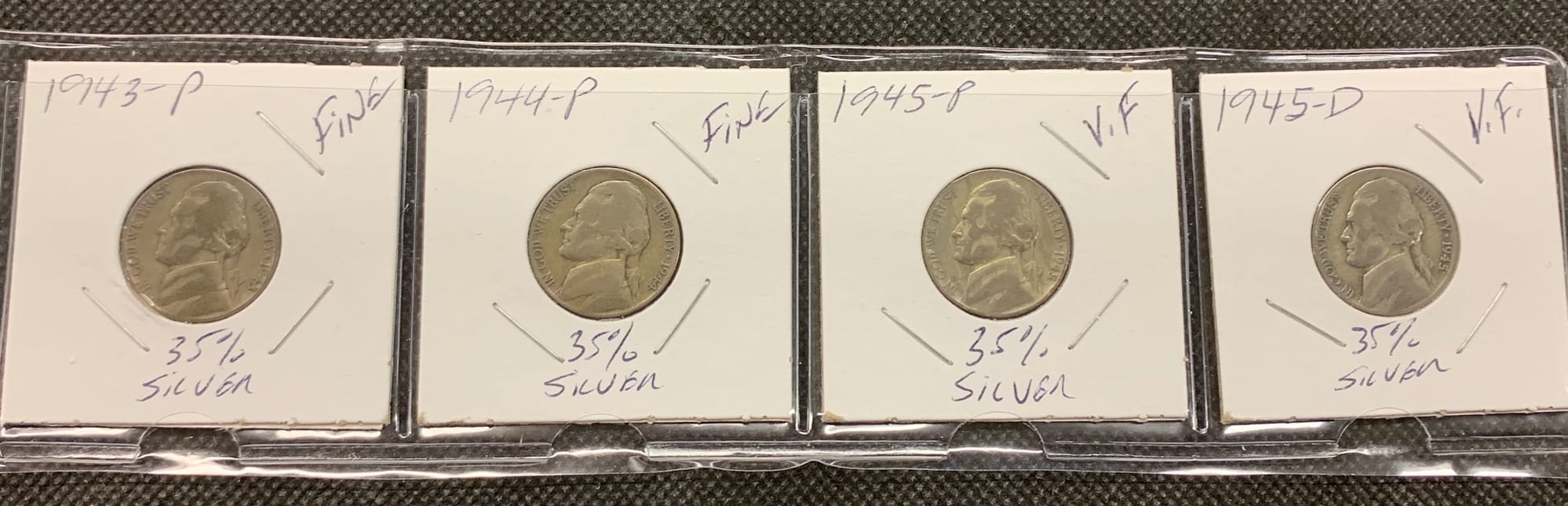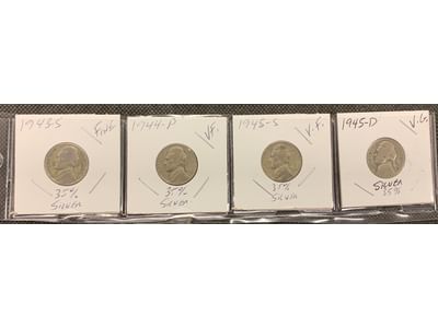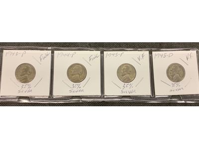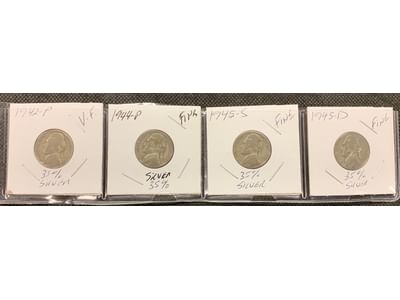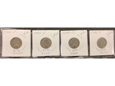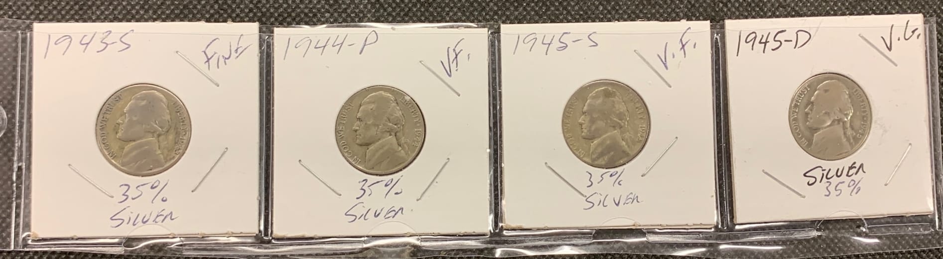 590 4 - Jefferson Nickels, 1943–P, 1944-P, 1945-P, 1945-D