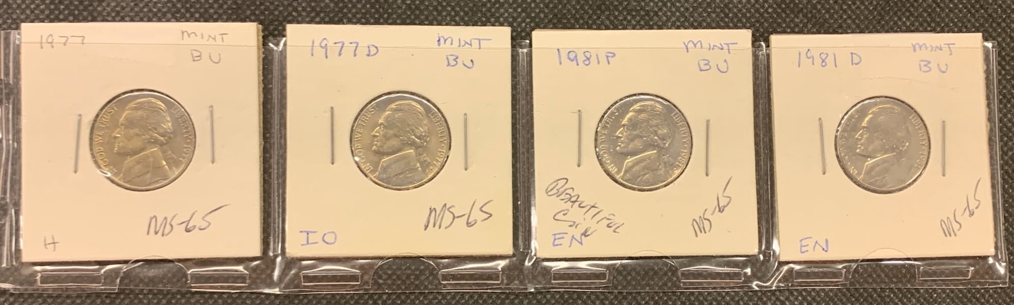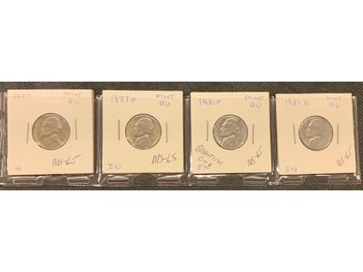 593 4 - Jefferson Nickels, 1977, 1977-D, 1981-P, 1981-D
