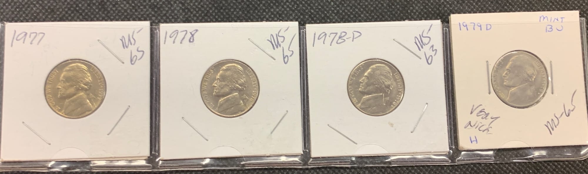 595 4 - Jefferson Nickels, 1977, 1978, 1978-D, 1979-D