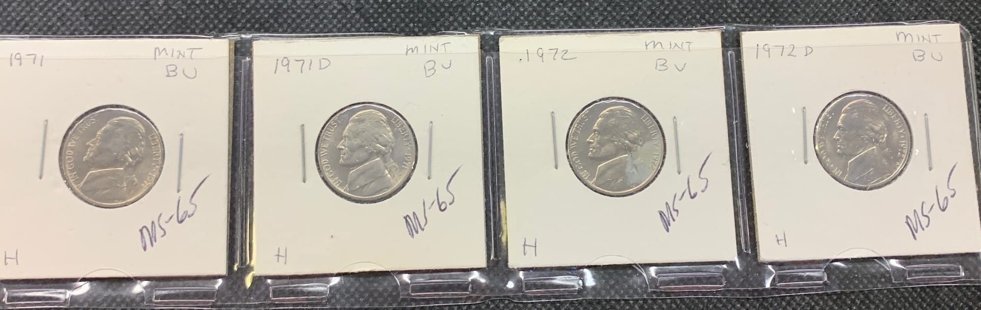 596 4 - Jefferson Nickels, 1971, 1971-D, 1972, 1972-D