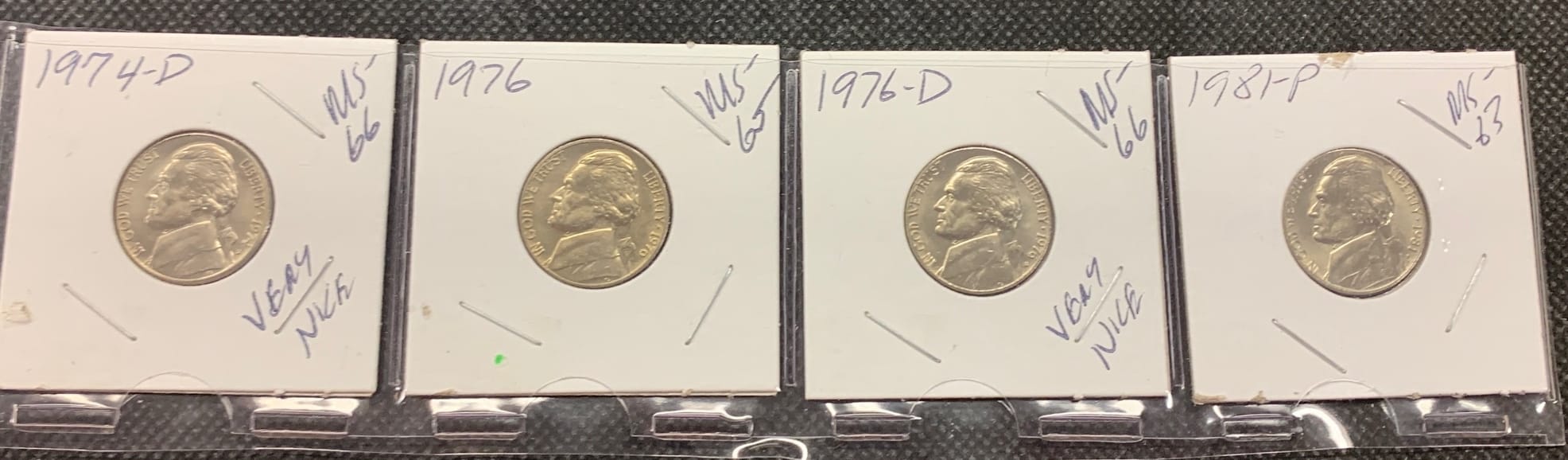 597 4 - Jefferson Nickels, 1974-D, 1976, 1976-D, 1981-P