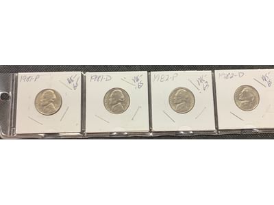 598 4 - Jefferson Nickels, 1981-D, 1981-P, 1982-P, 1982-D