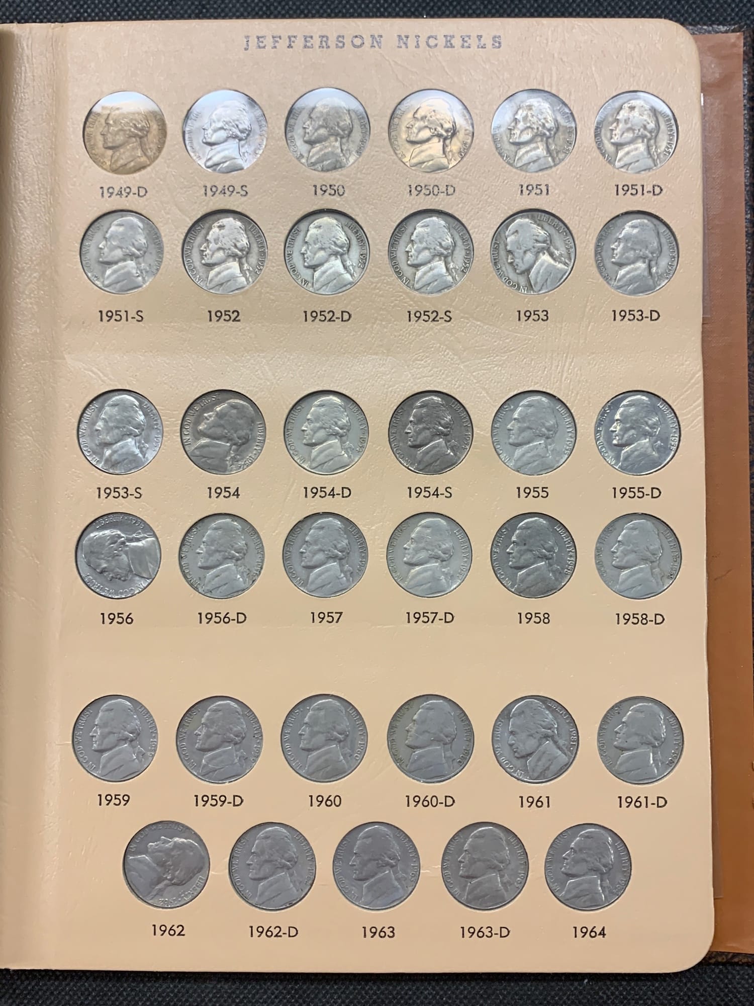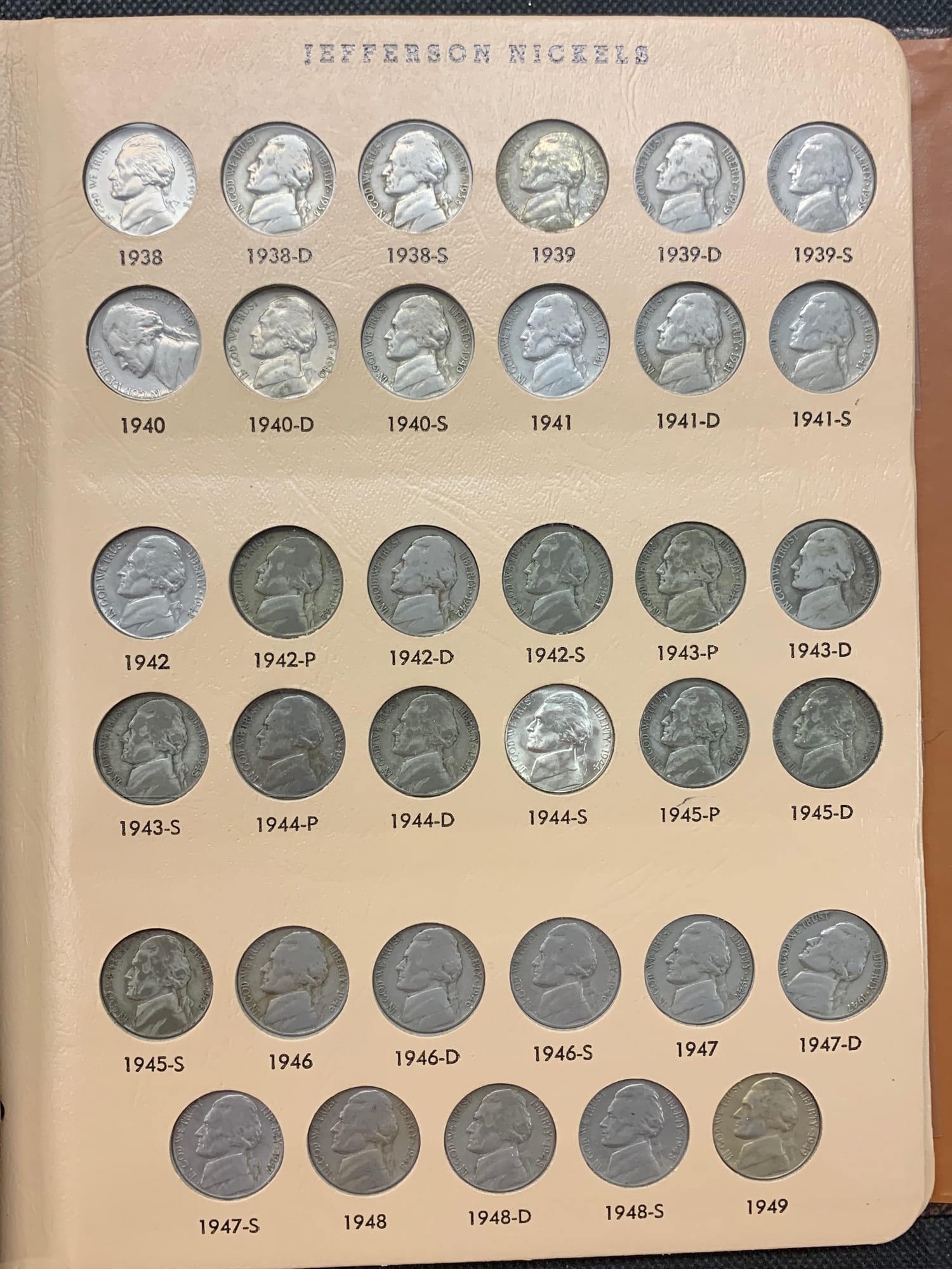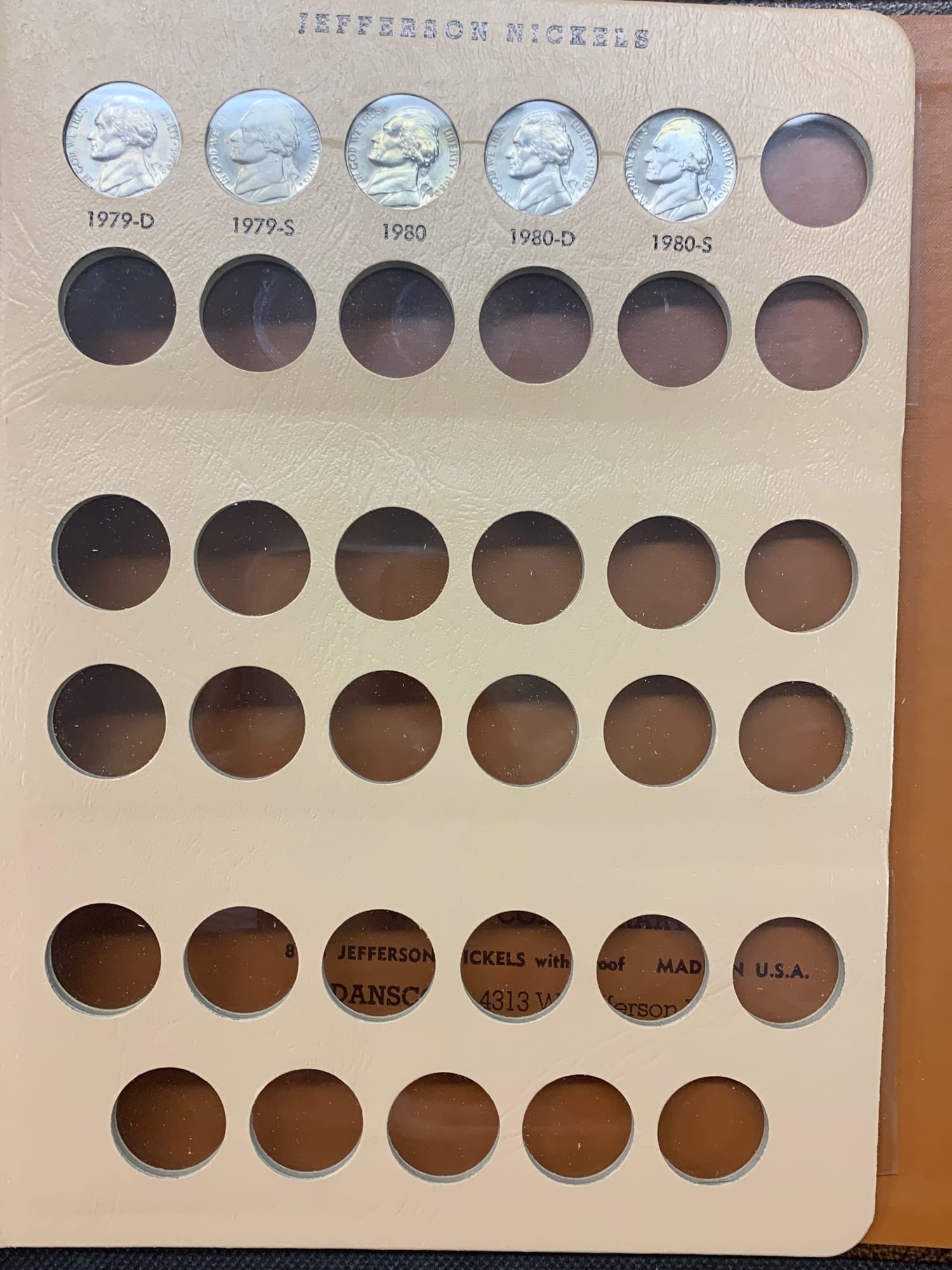 599 Dansco Complete Jefferson Nickel Set, 1938-1980-S, 110 Coins