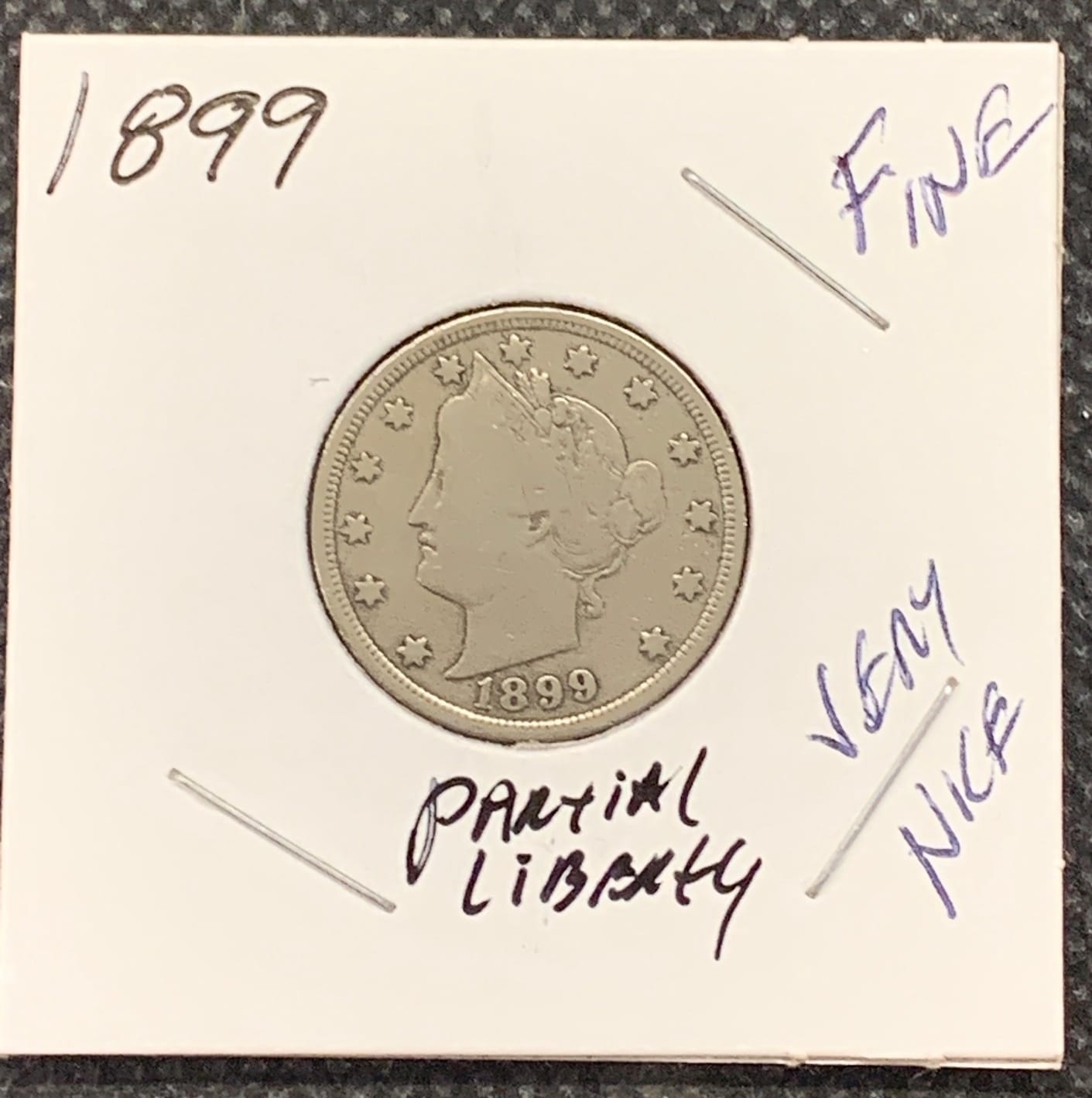 607 1899 Liberty “V” Nickel, G., Partial Liberty