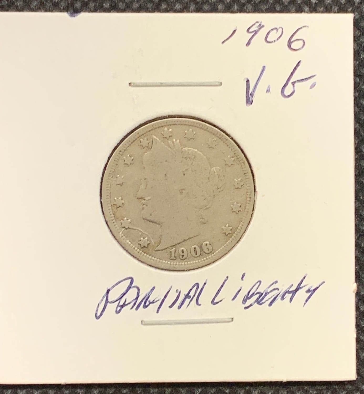 613 1906 Liberty “V” Nickel, V.G. Partial Liberty