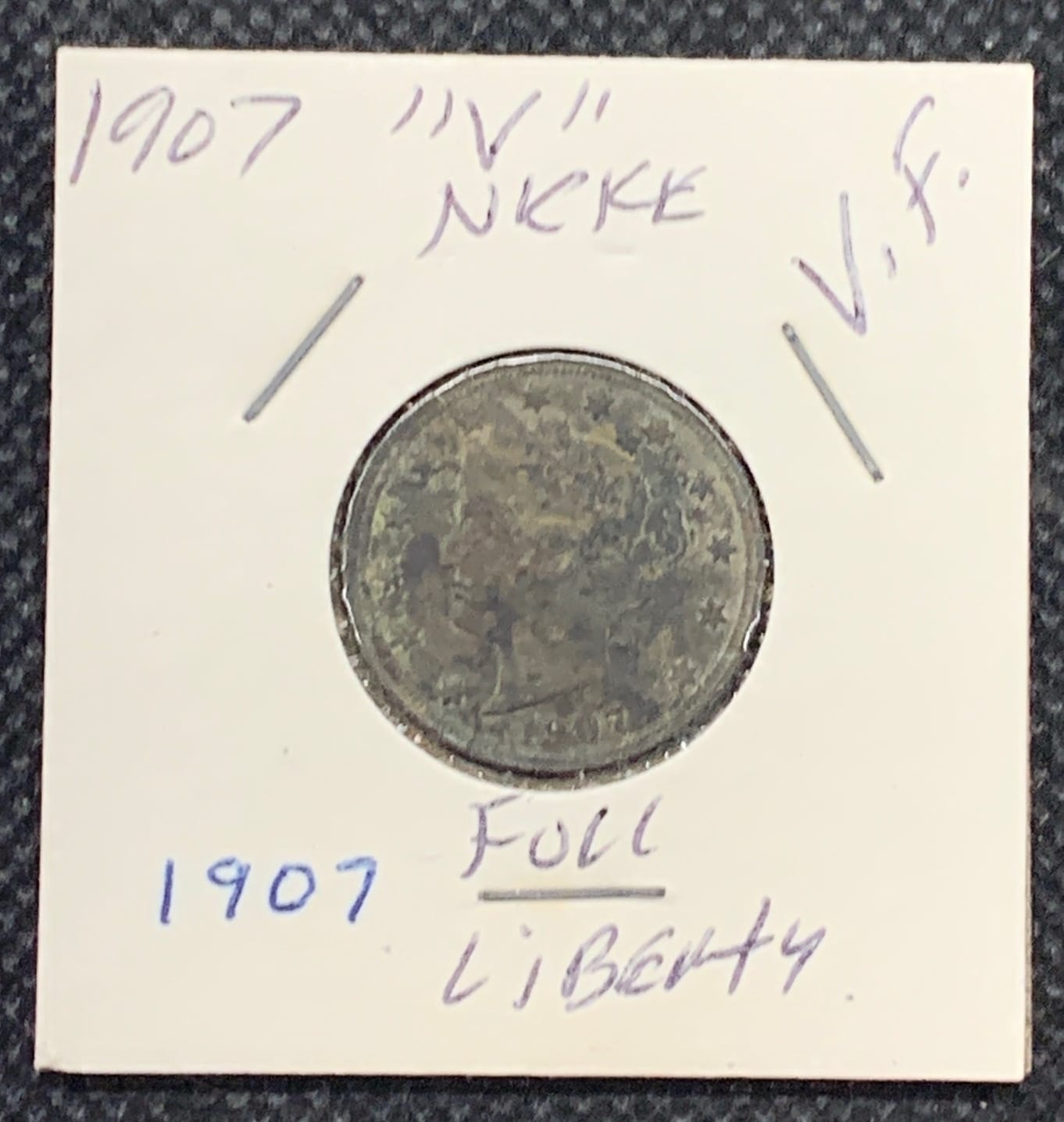 614 1907 Liberty “V” Nickel, V.F., Full Liberty