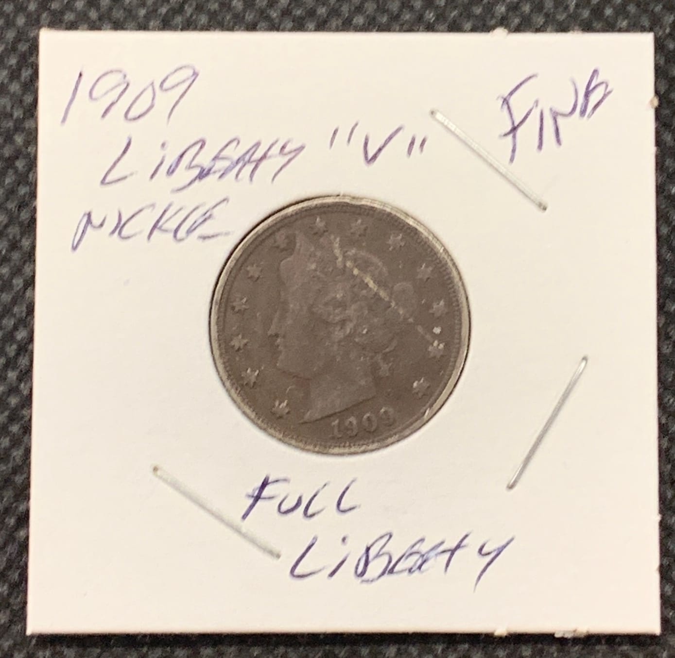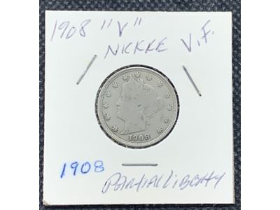 615 1908 Liberty “V” Nickel, V.F., Partial Liberty