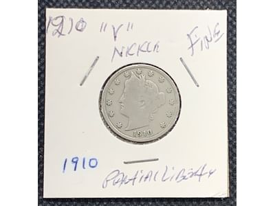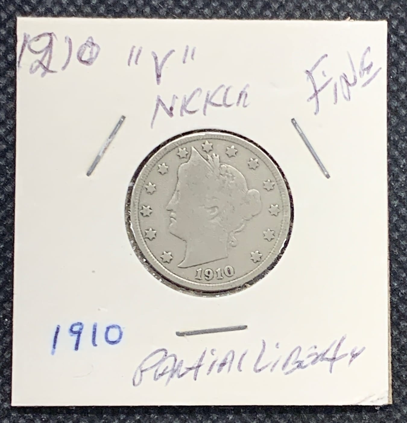 617 1910 Liberty “V” Nickel, Partial Liberty