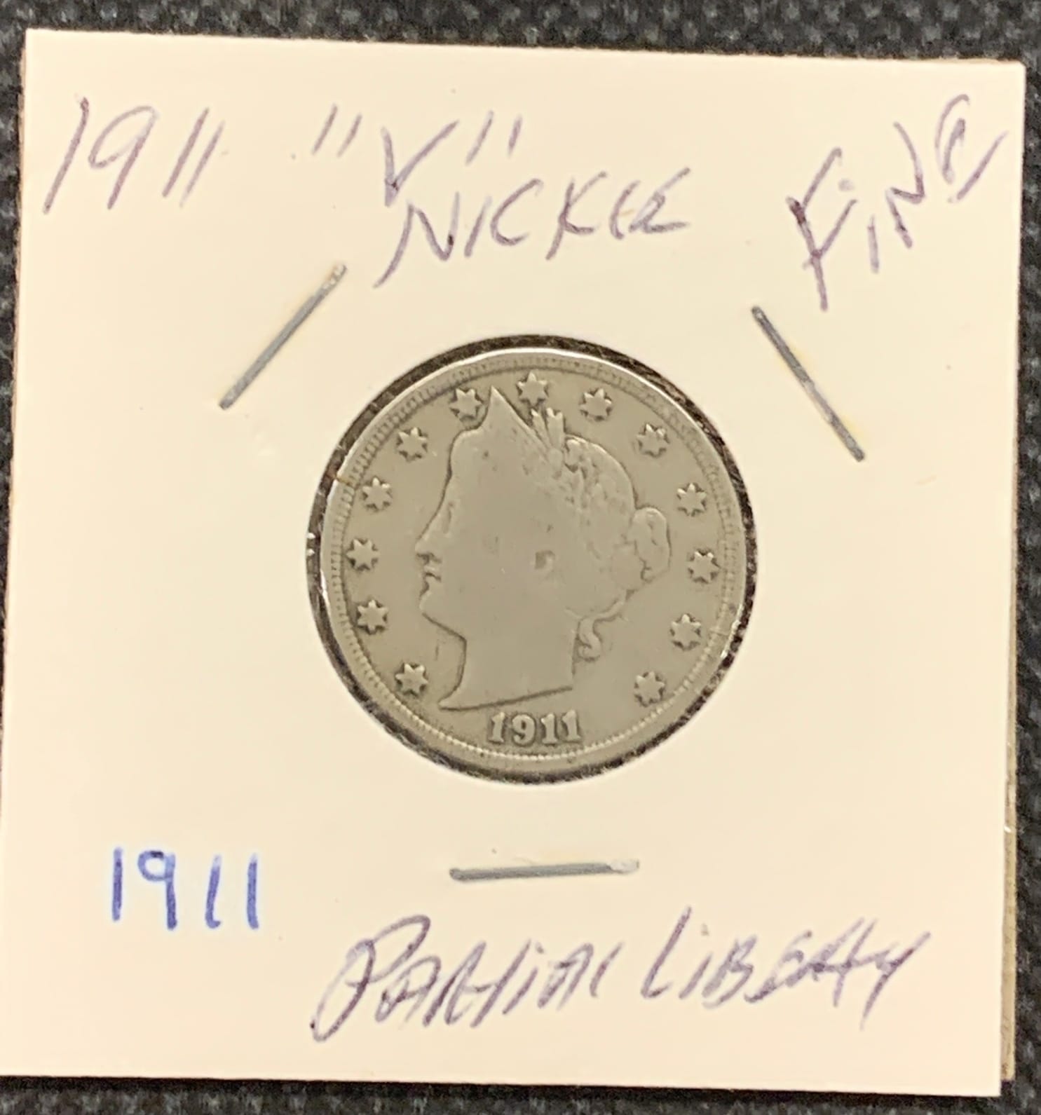 618 1911 Liberty “V” Nickel, Partial Liberty