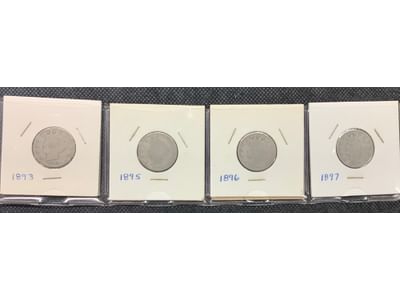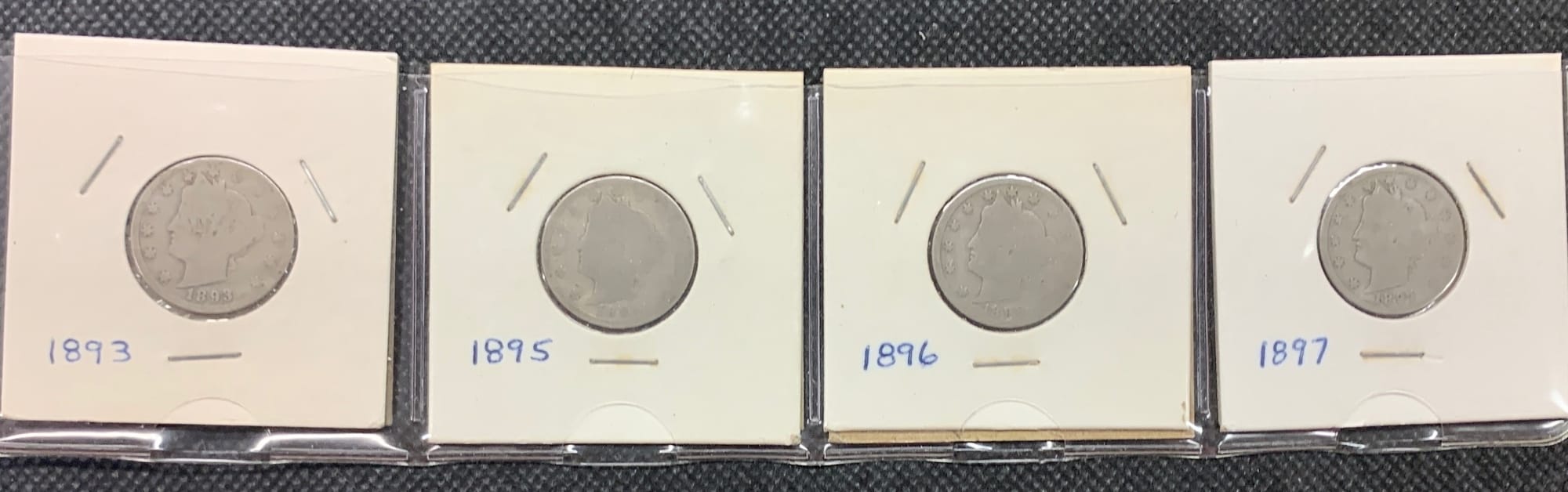 621 4 - Liberty “V” Nickels, 1893, 1895, 1896, 1897