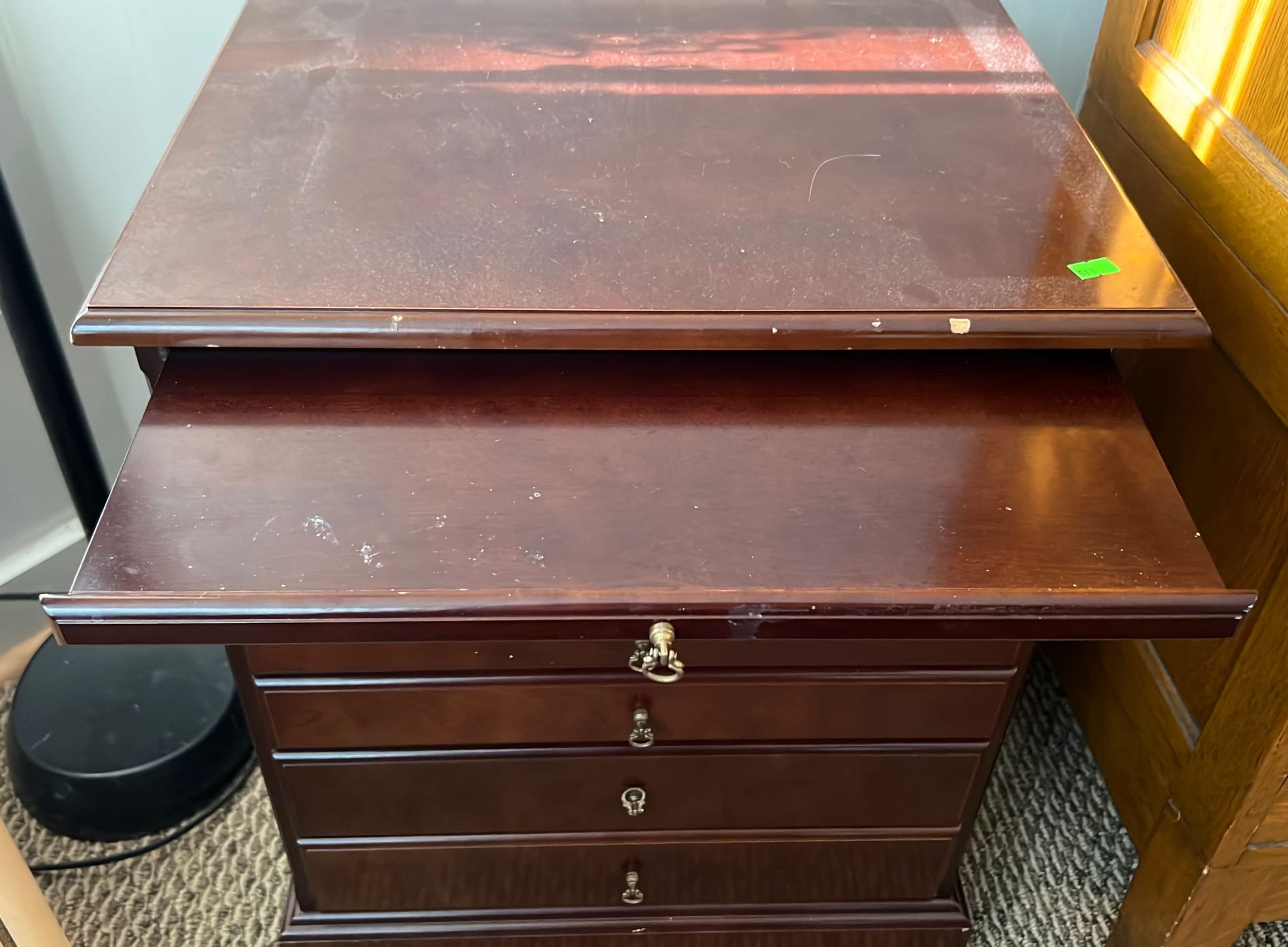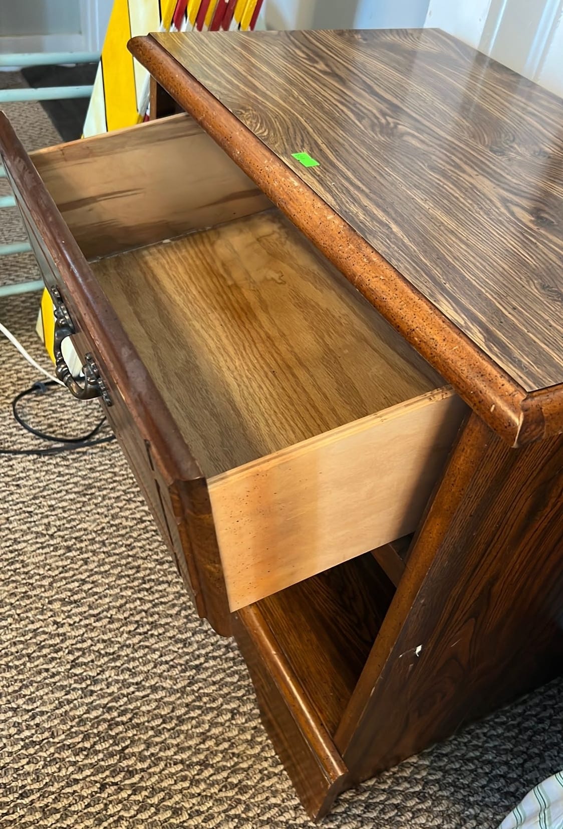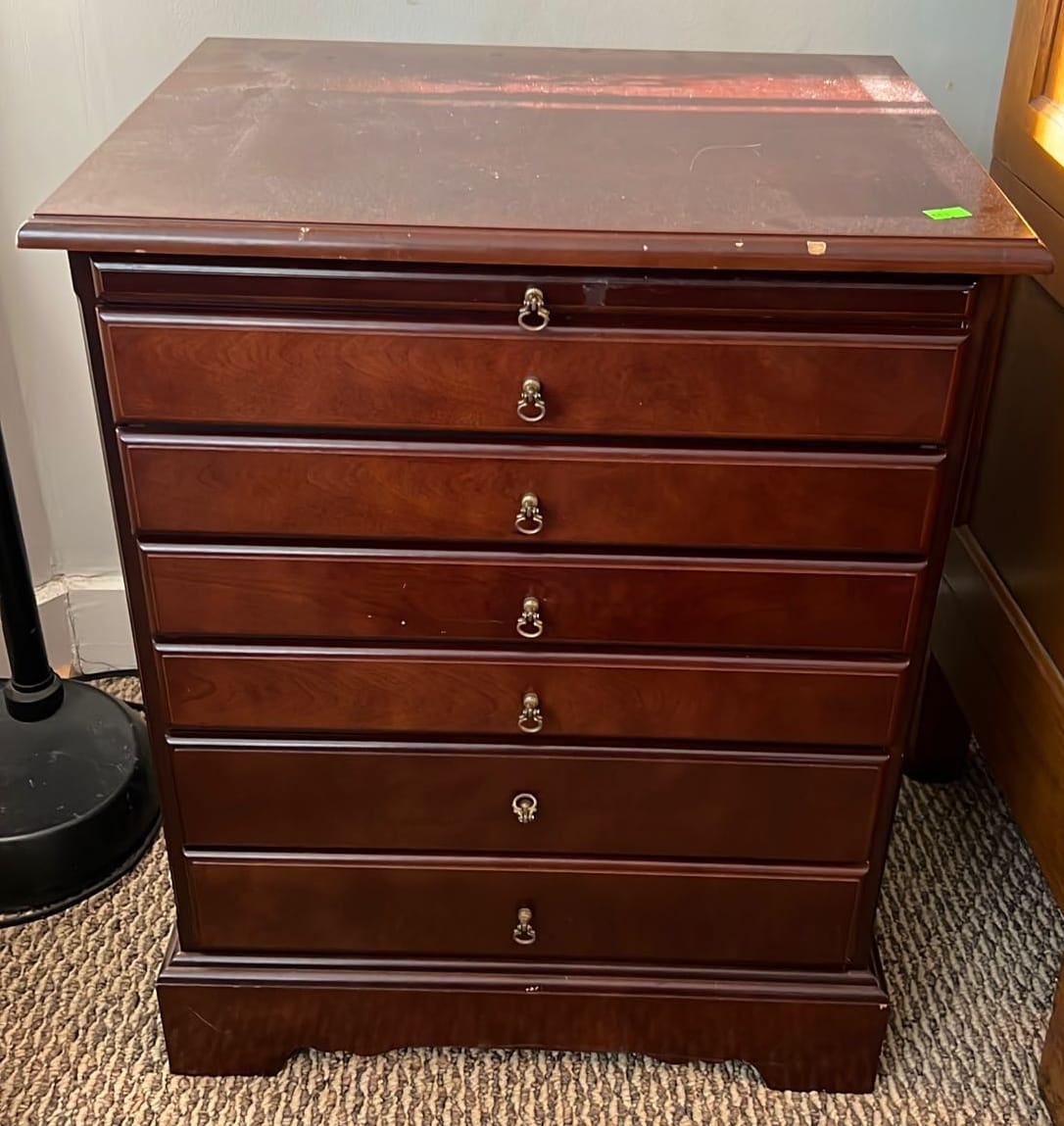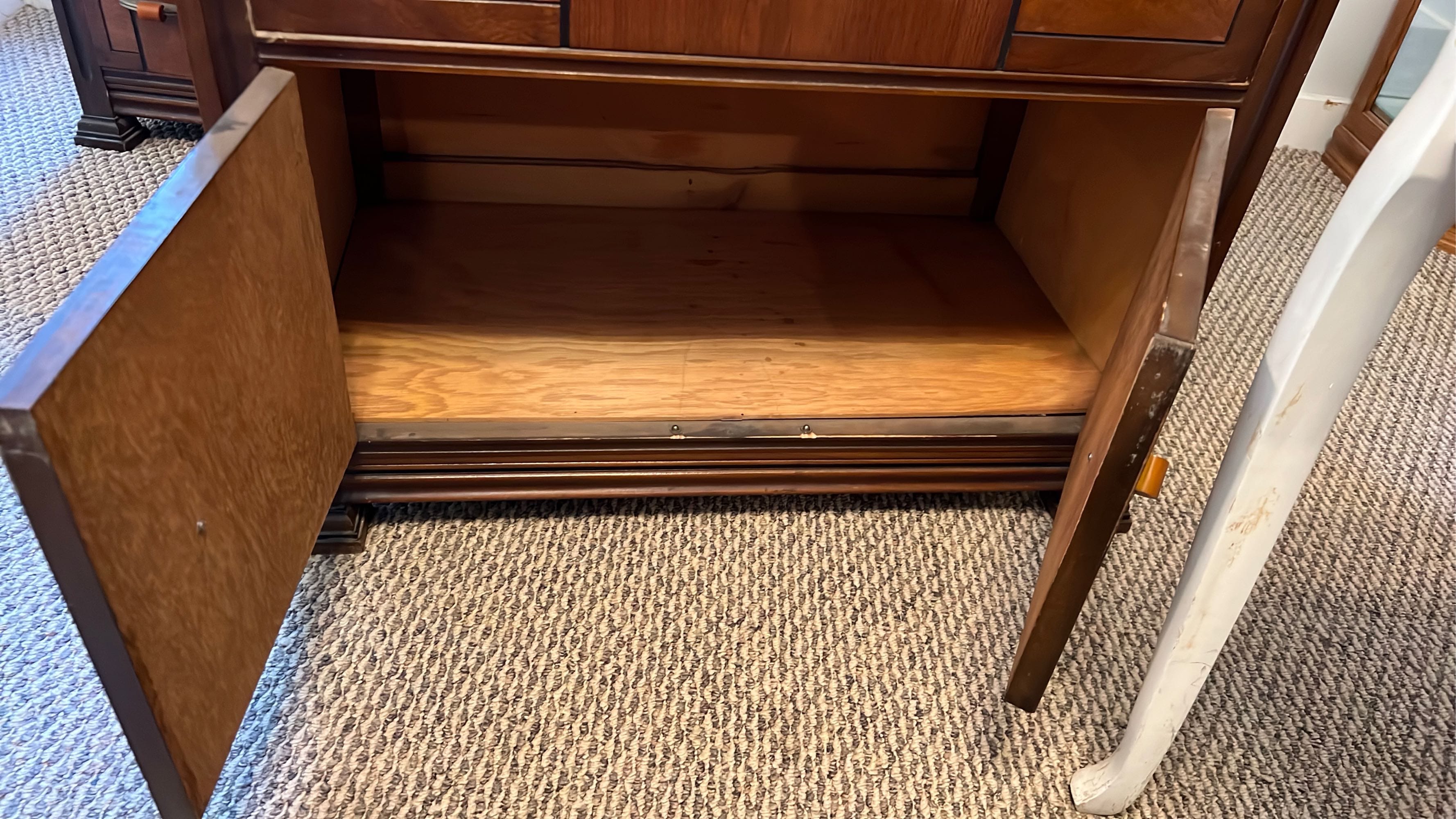 6 Vintage Drexel Dresser with roll open door storage 20”x44”x43.5”, contents not included