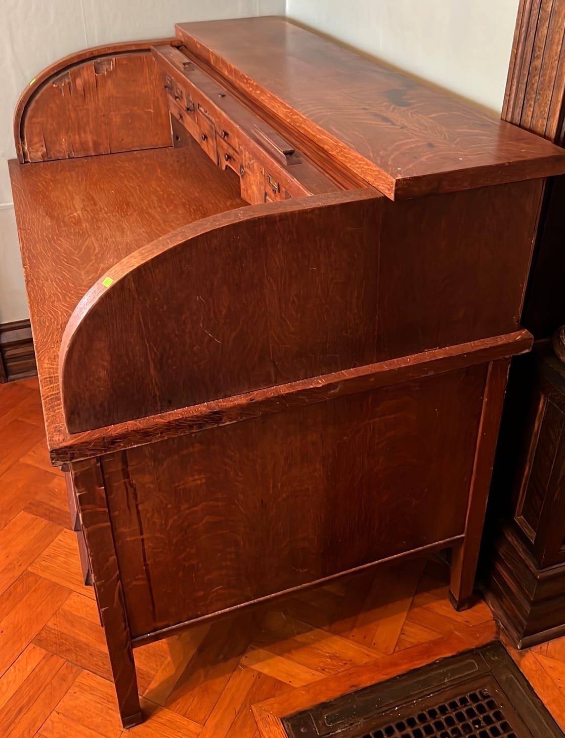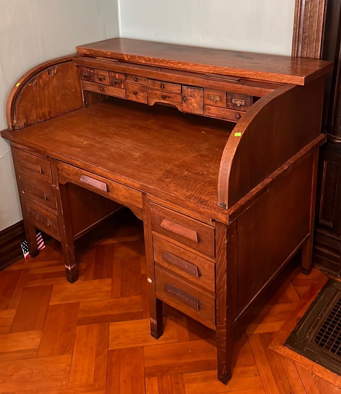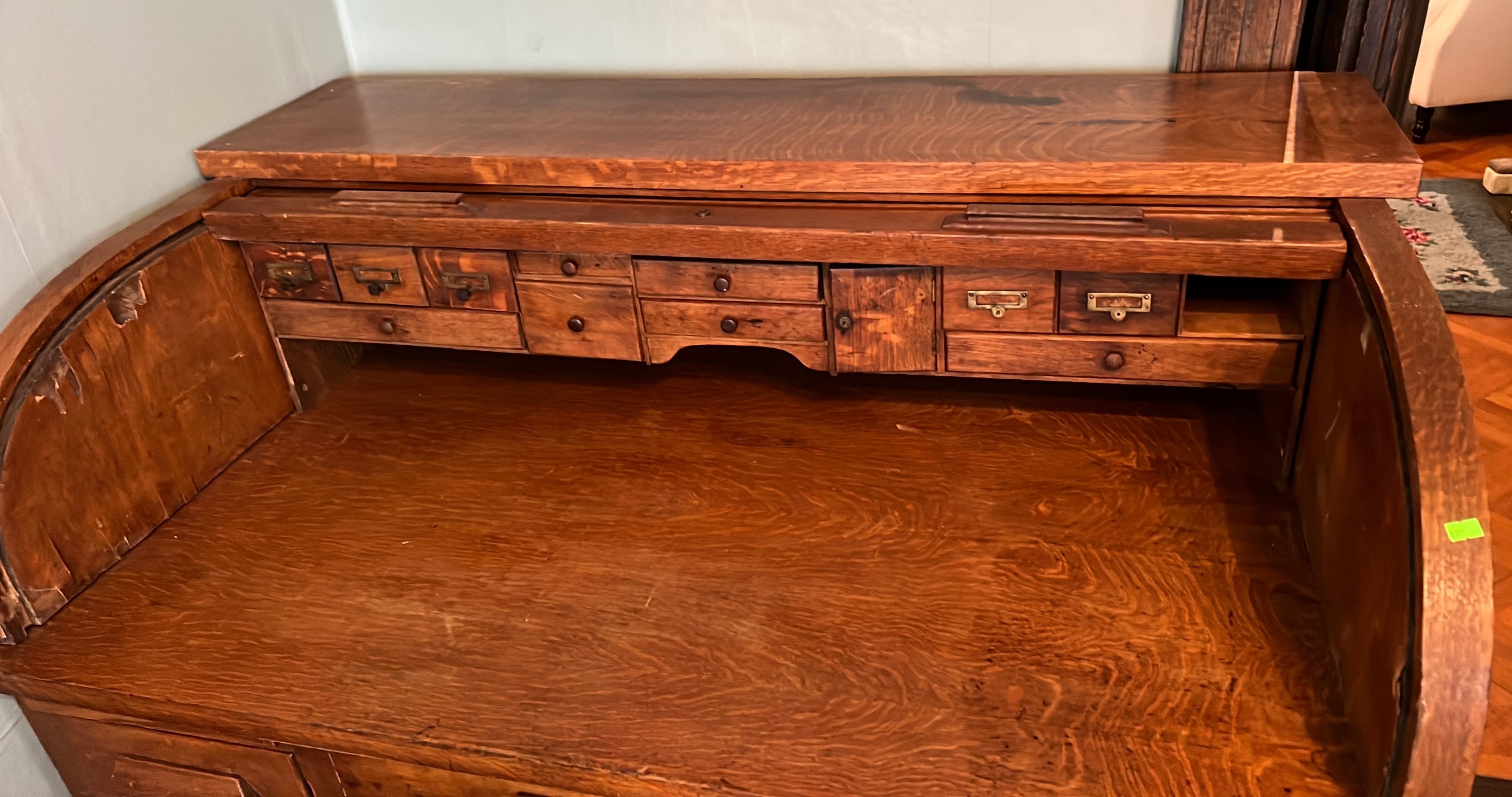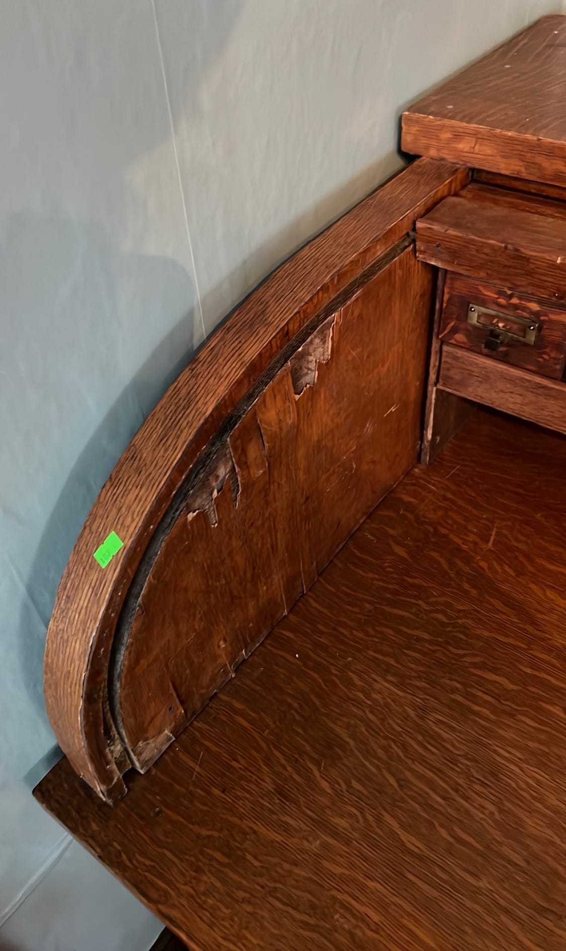 9 Vintage Roll Top Desk 55.25”x44”.5”x33” (inside is rough in places)
