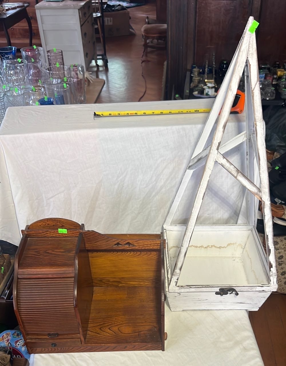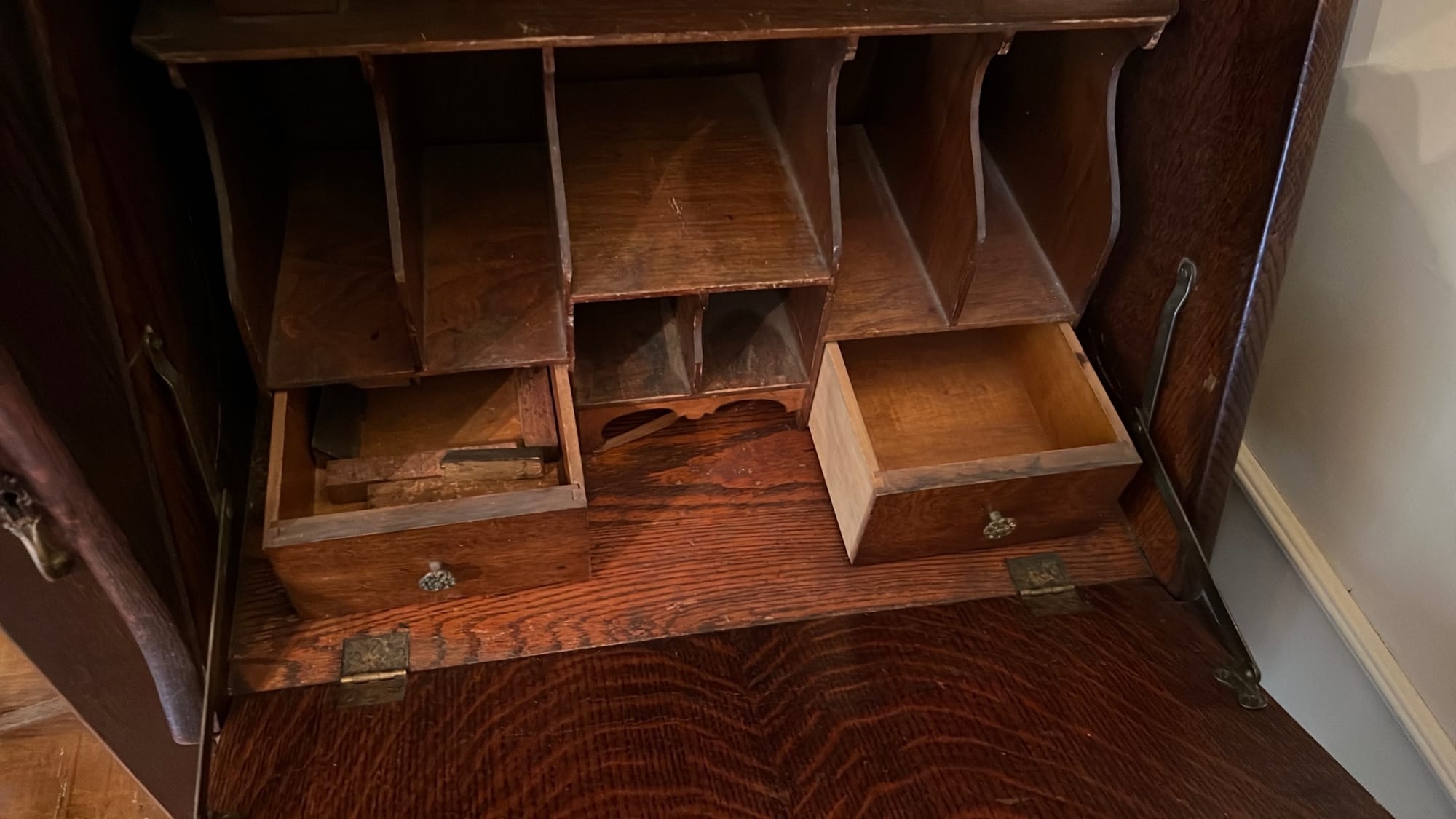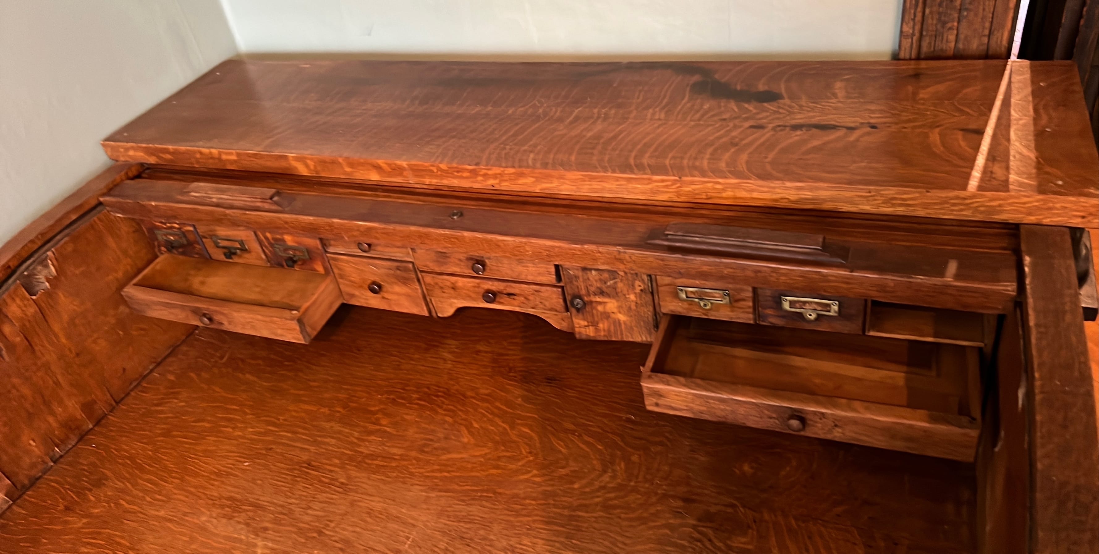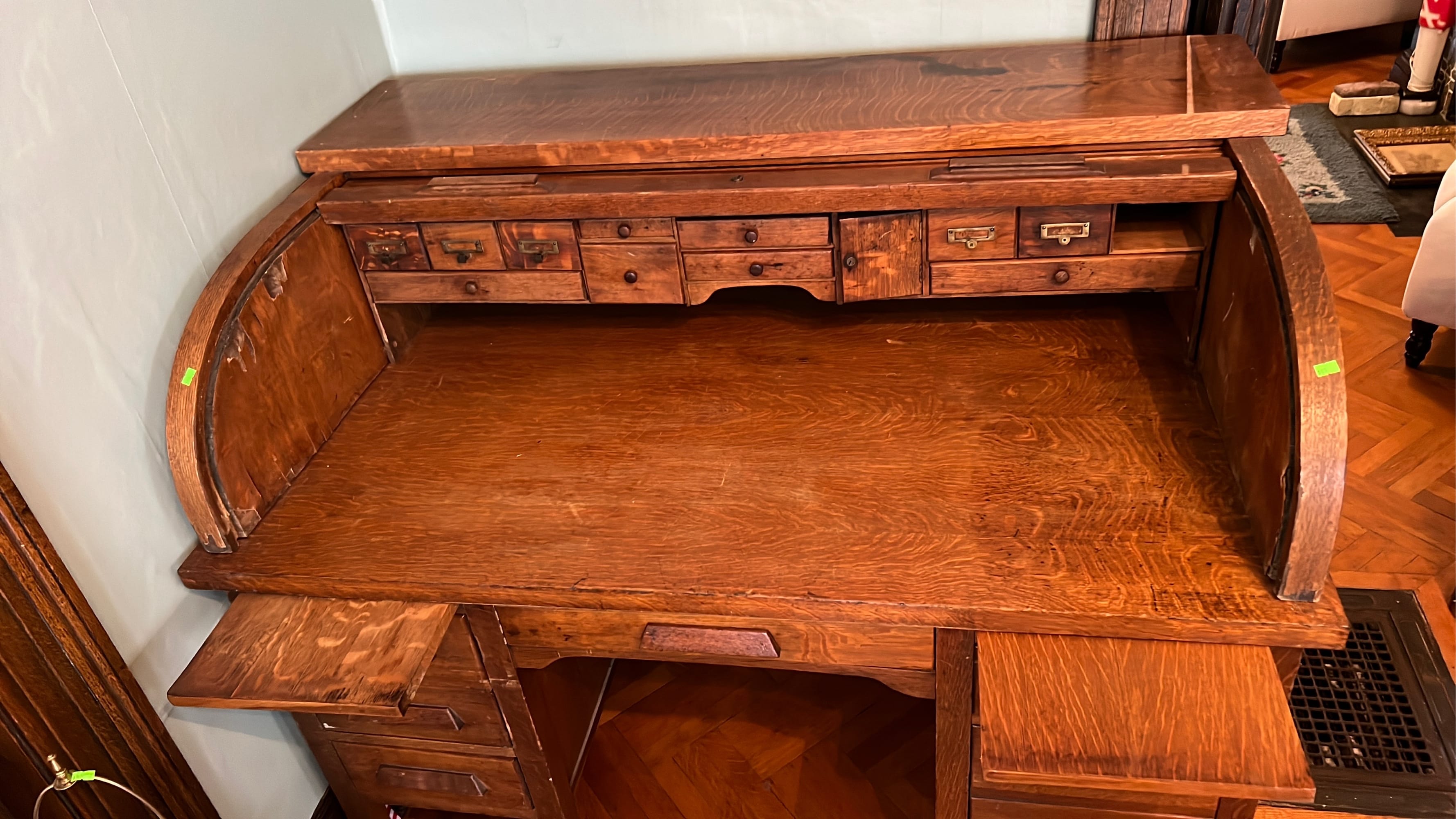 9 Vintage Roll Top Desk 55.25”x44”.5”x33” (inside is rough in places)
