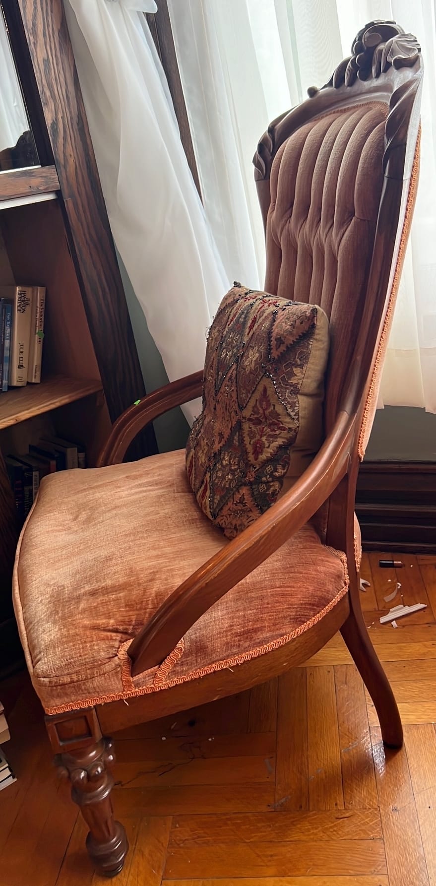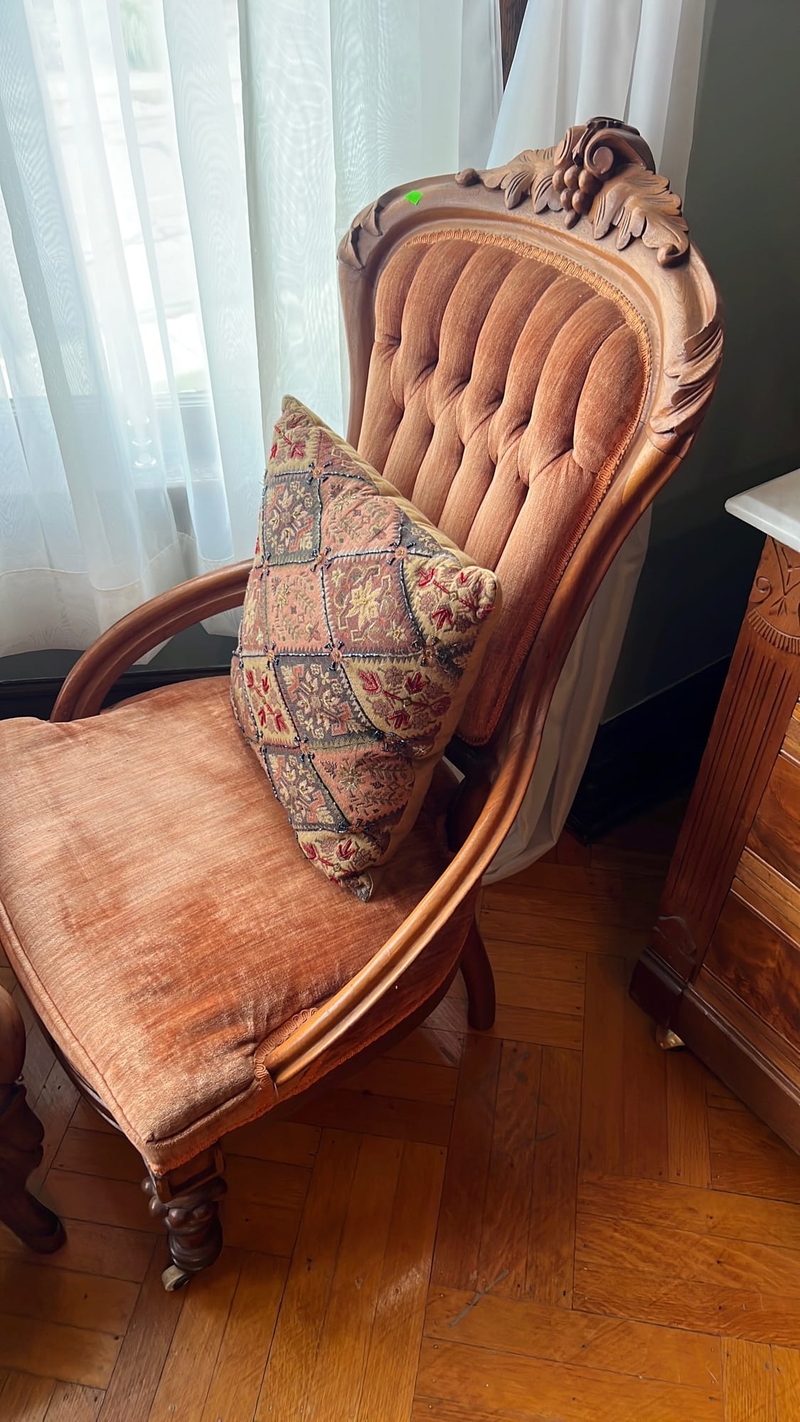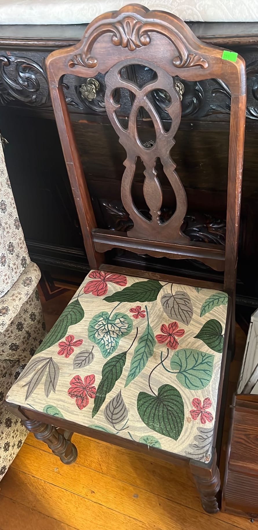 10 Vintage Ornate Chair with Padded Seat 25” wide Seat height 14.5” & Decorative Pillow