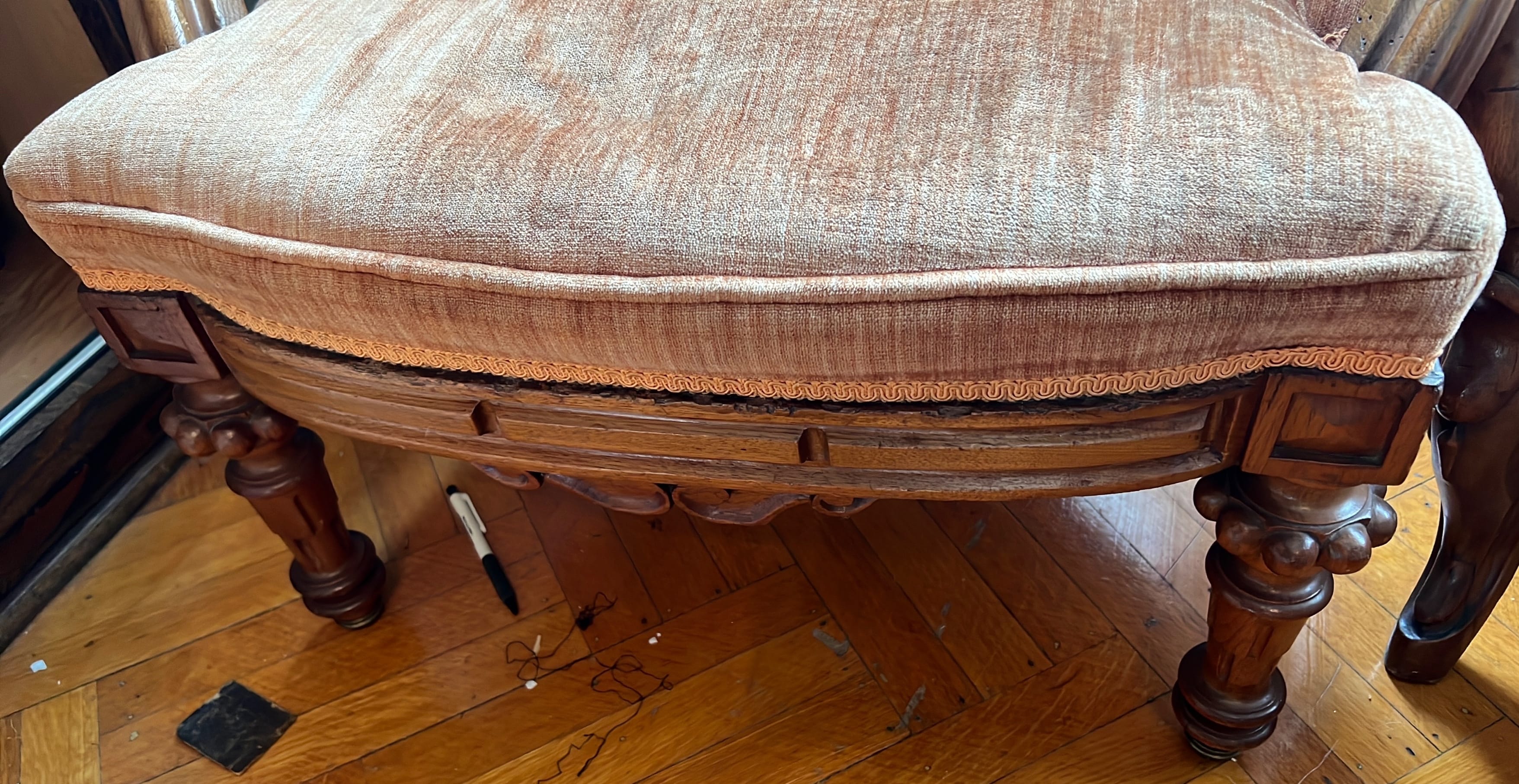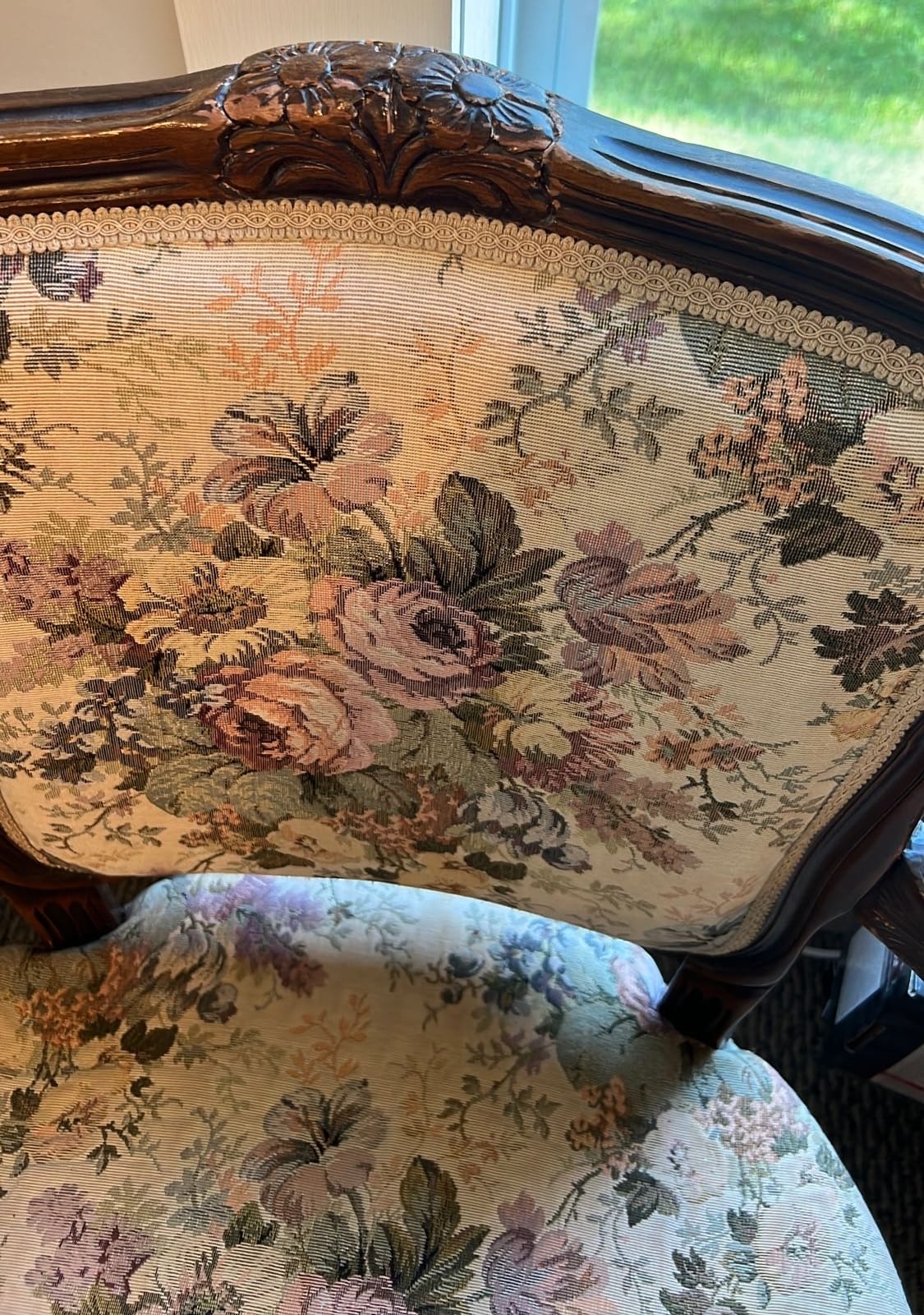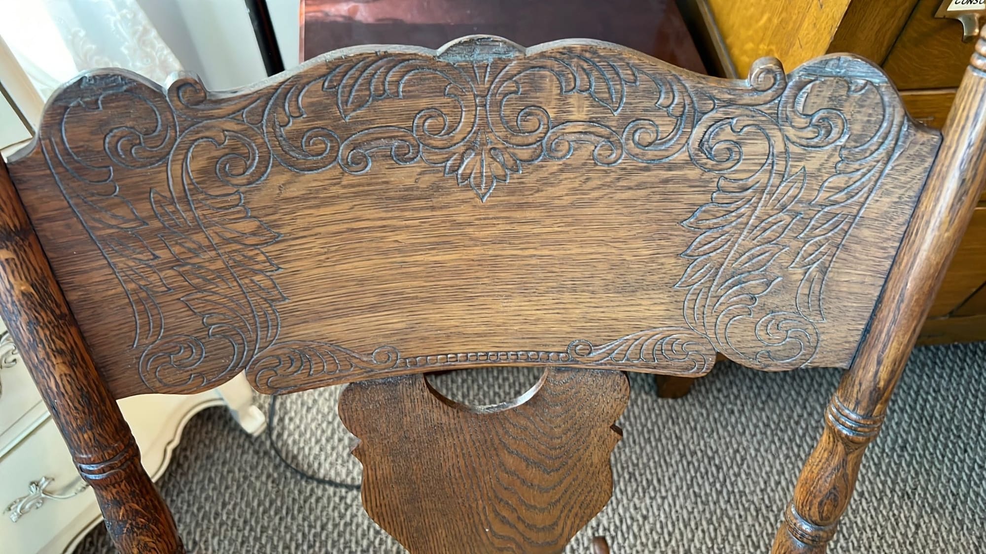 10 Vintage Ornate Chair with Padded Seat 25” wide Seat height 14.5” & Decorative Pillow
