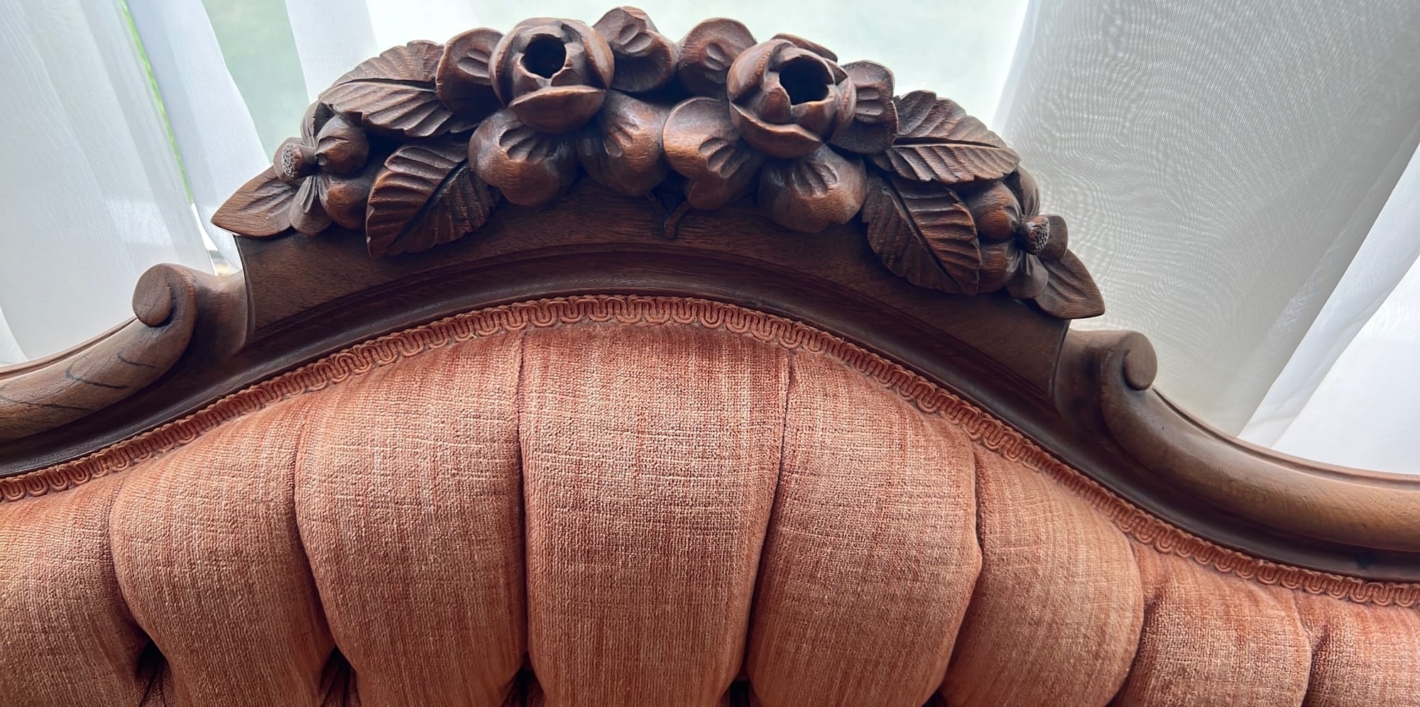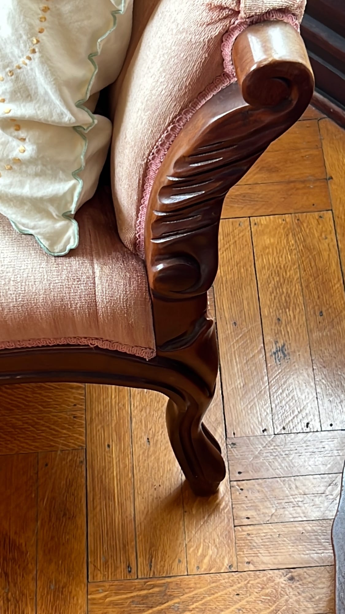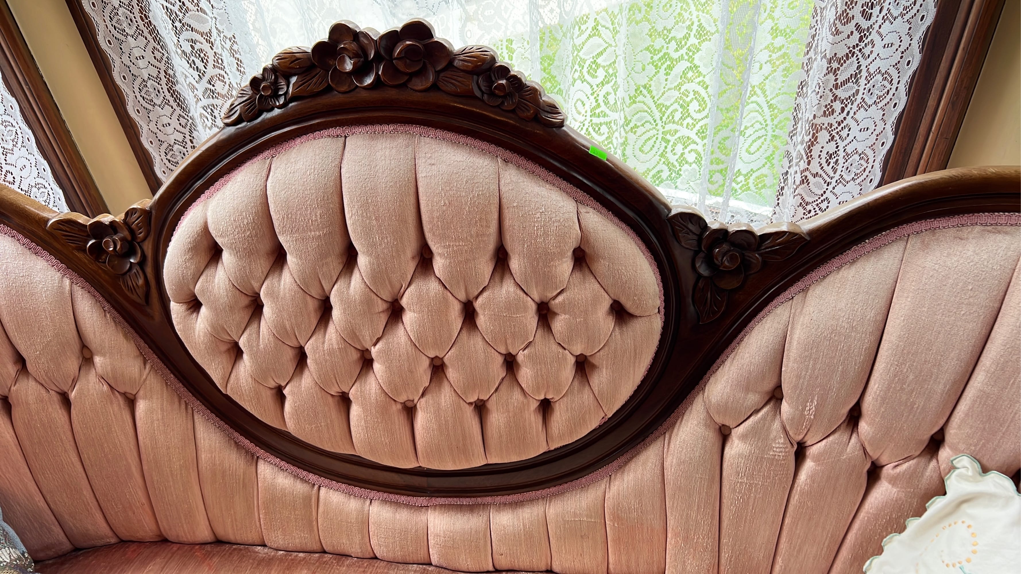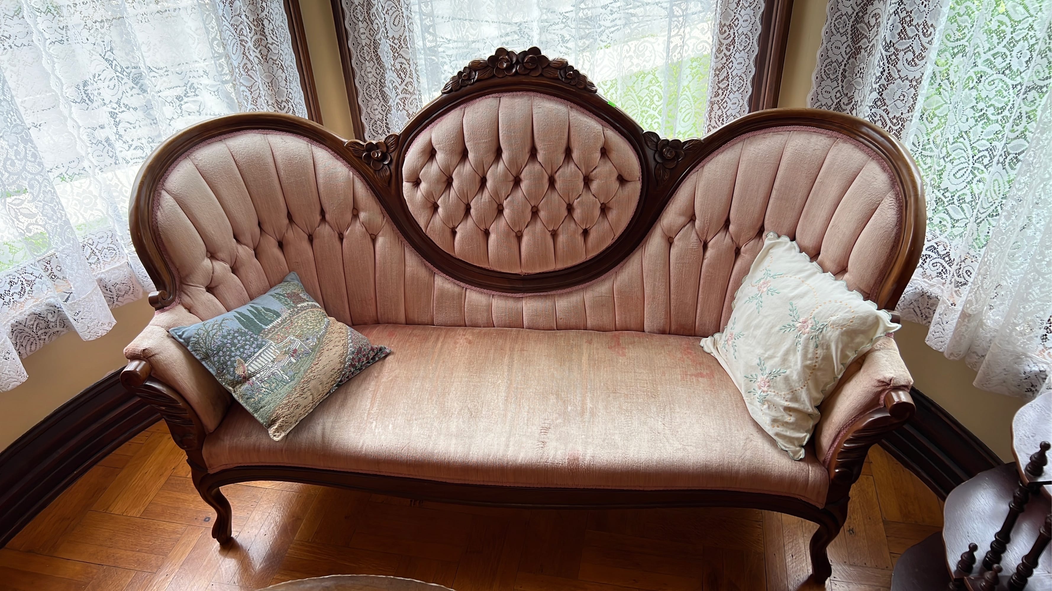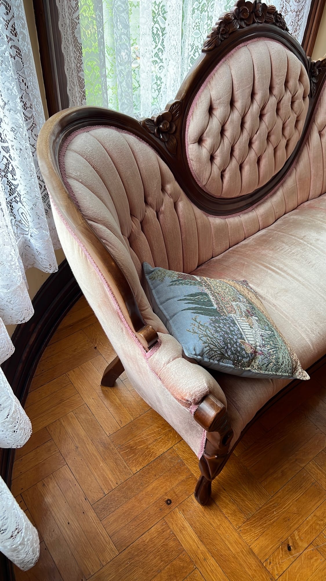33 Rose Victorian Style Settee 67” wide Seat height 15.5”