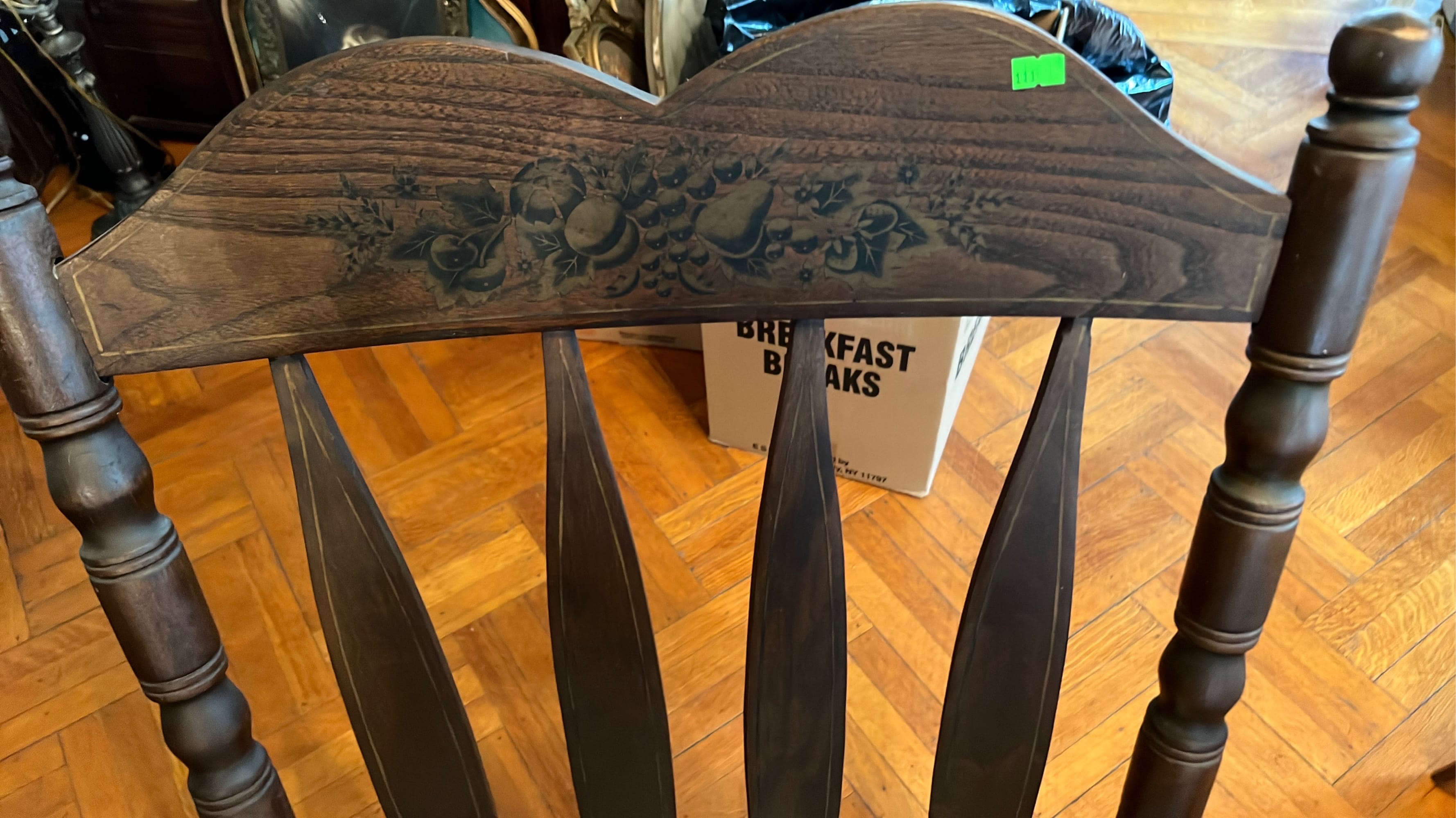 14 Wood Rocking Chair with Fruit Stencil 23.25” wide Seat height 17.5”