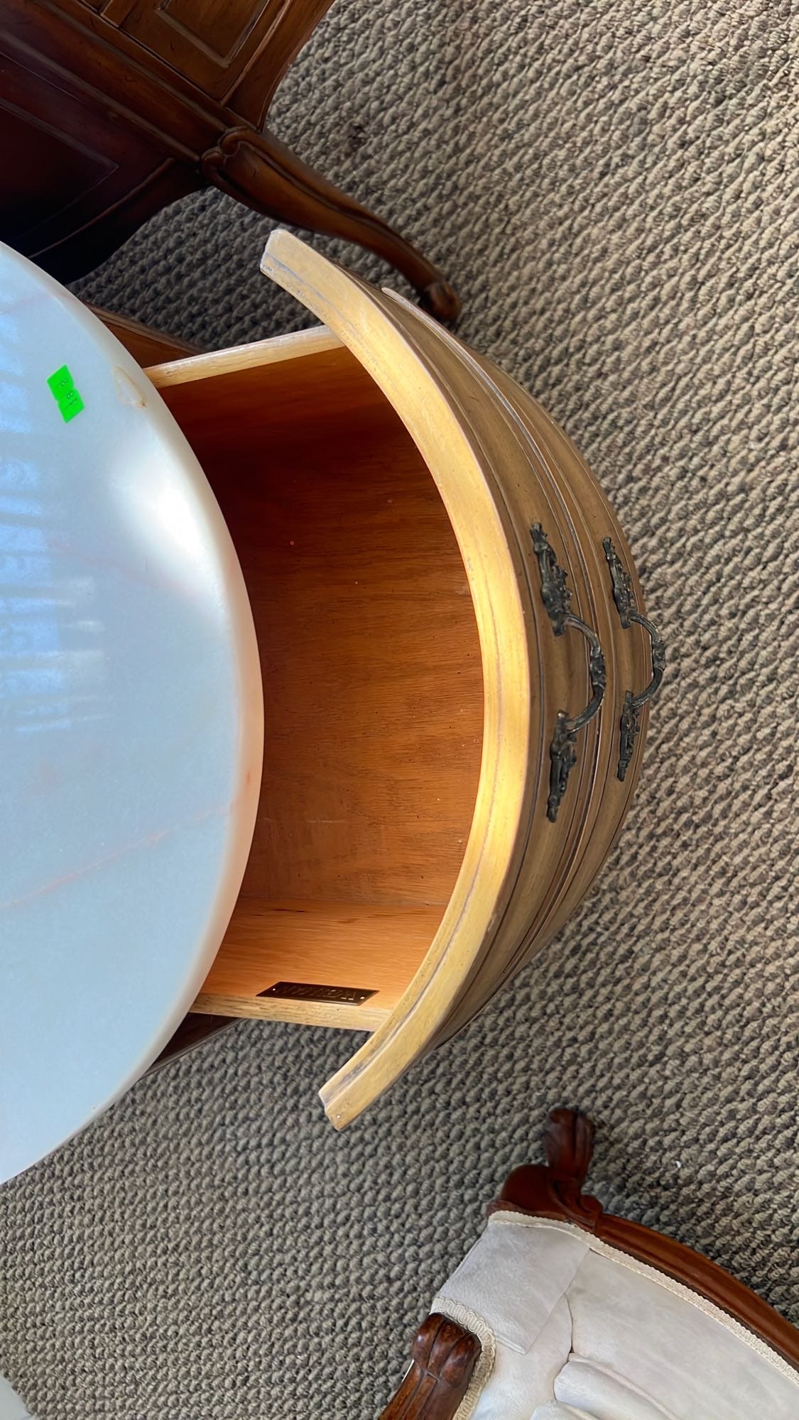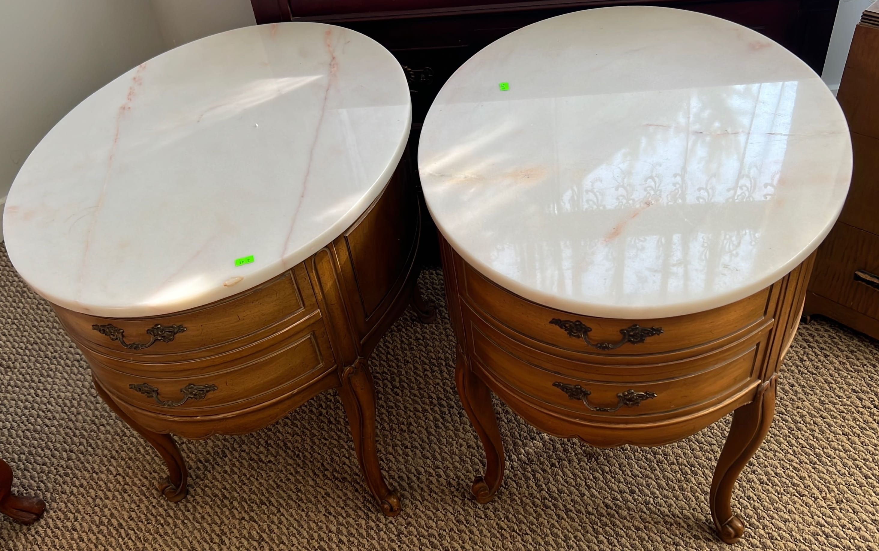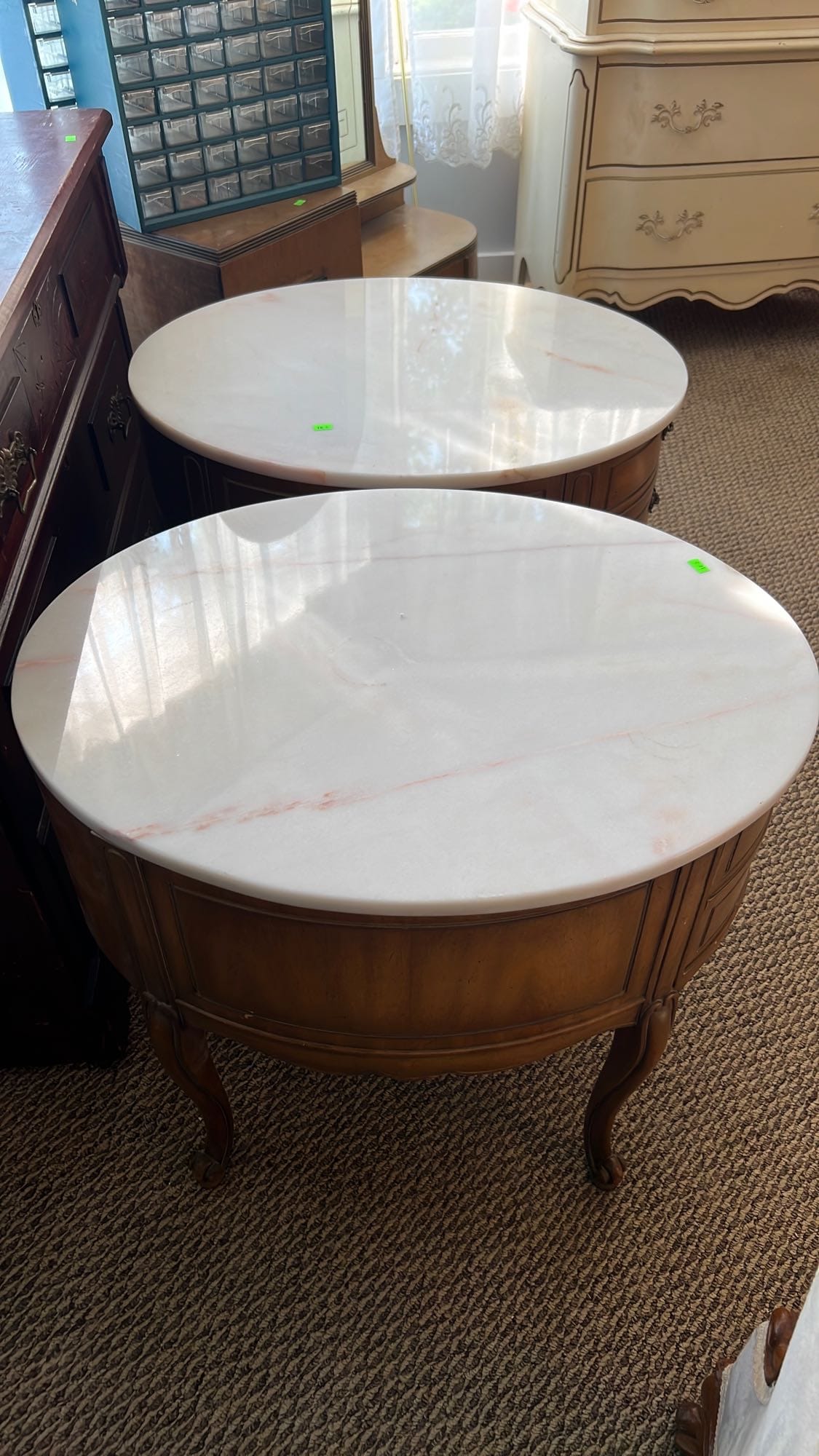 18 2- Weiman Marble Top End Tables , with drawers , 21”x27”x 24”