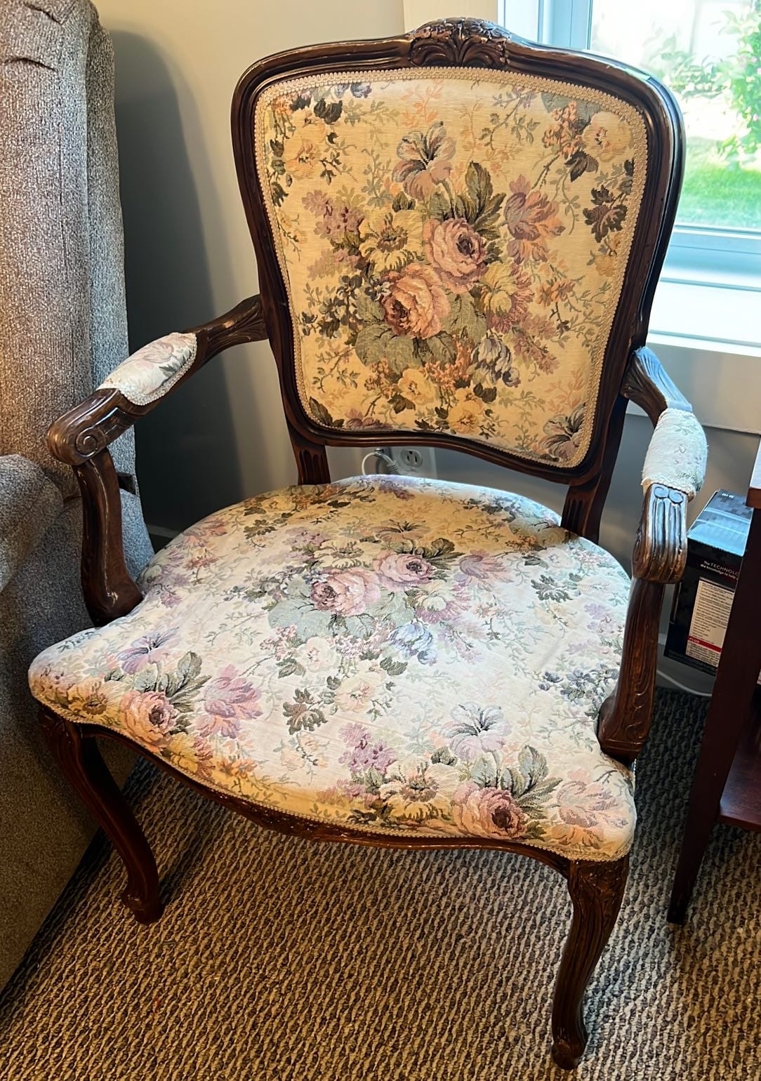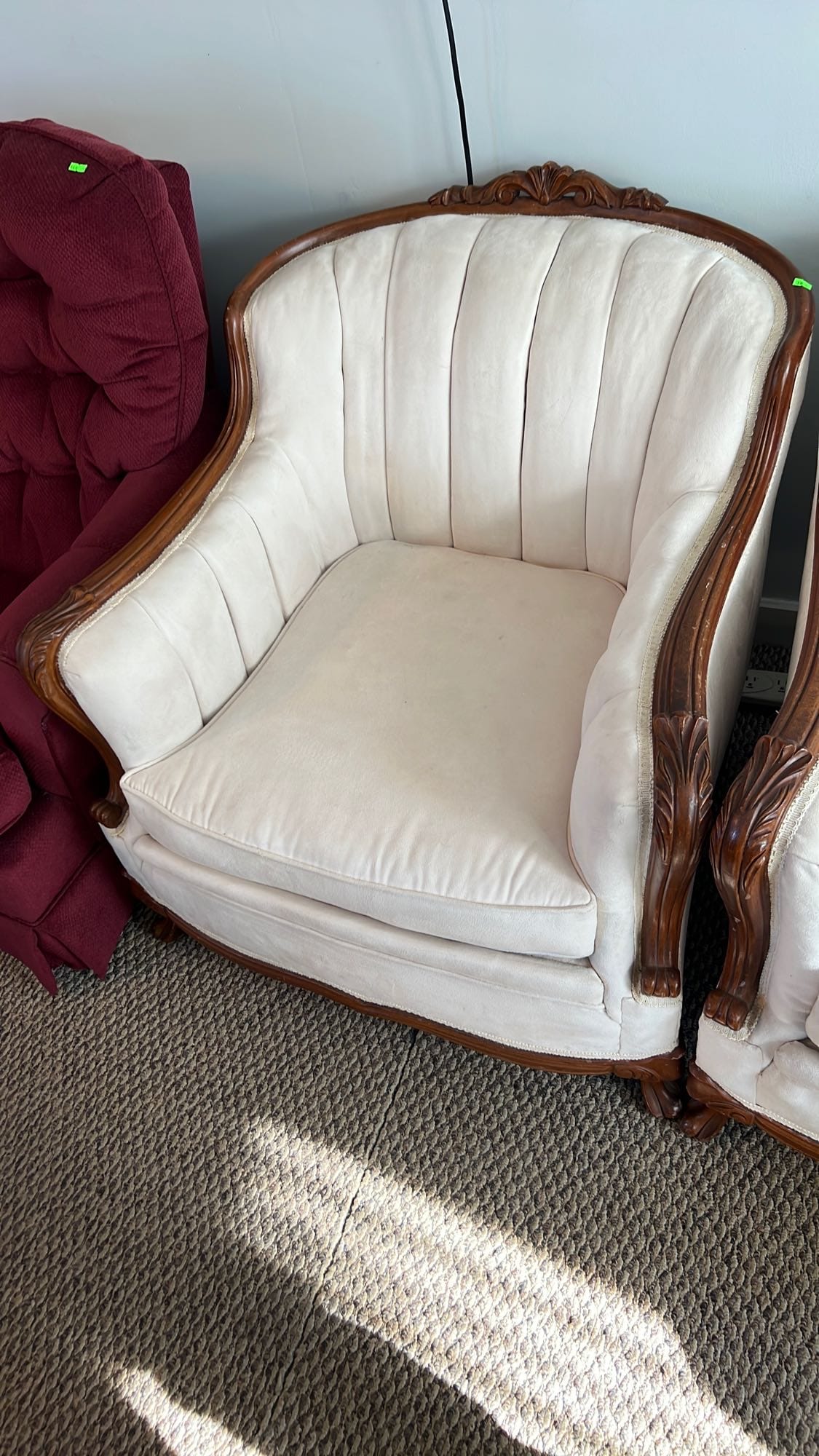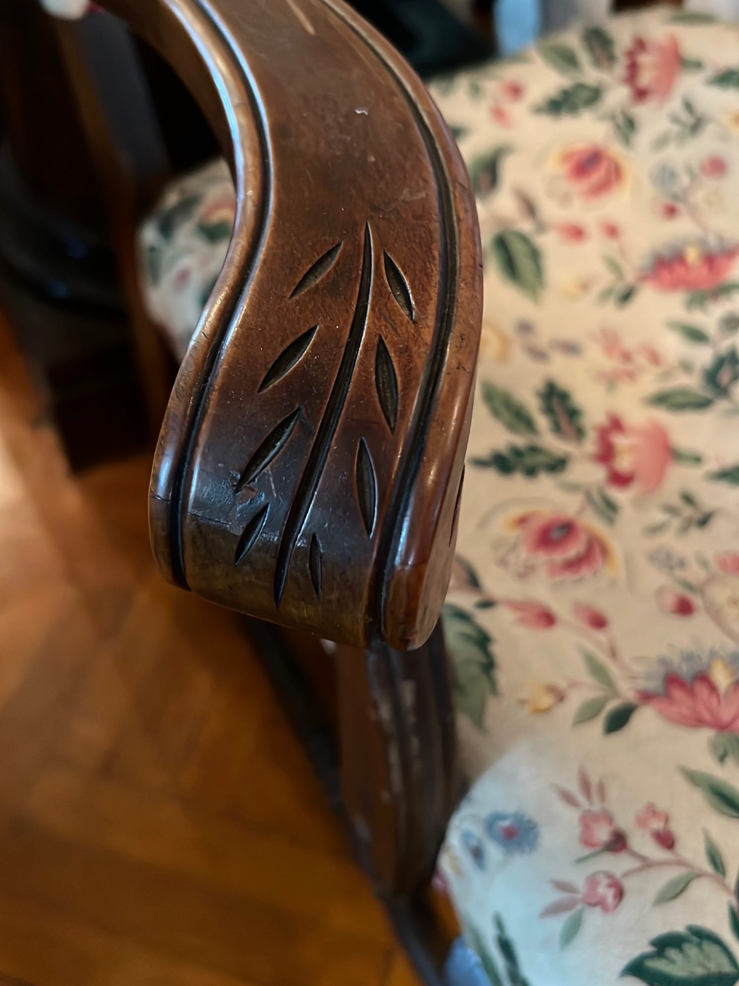19 2- Vintage Ornate Wood Upolstered Arm Chairs