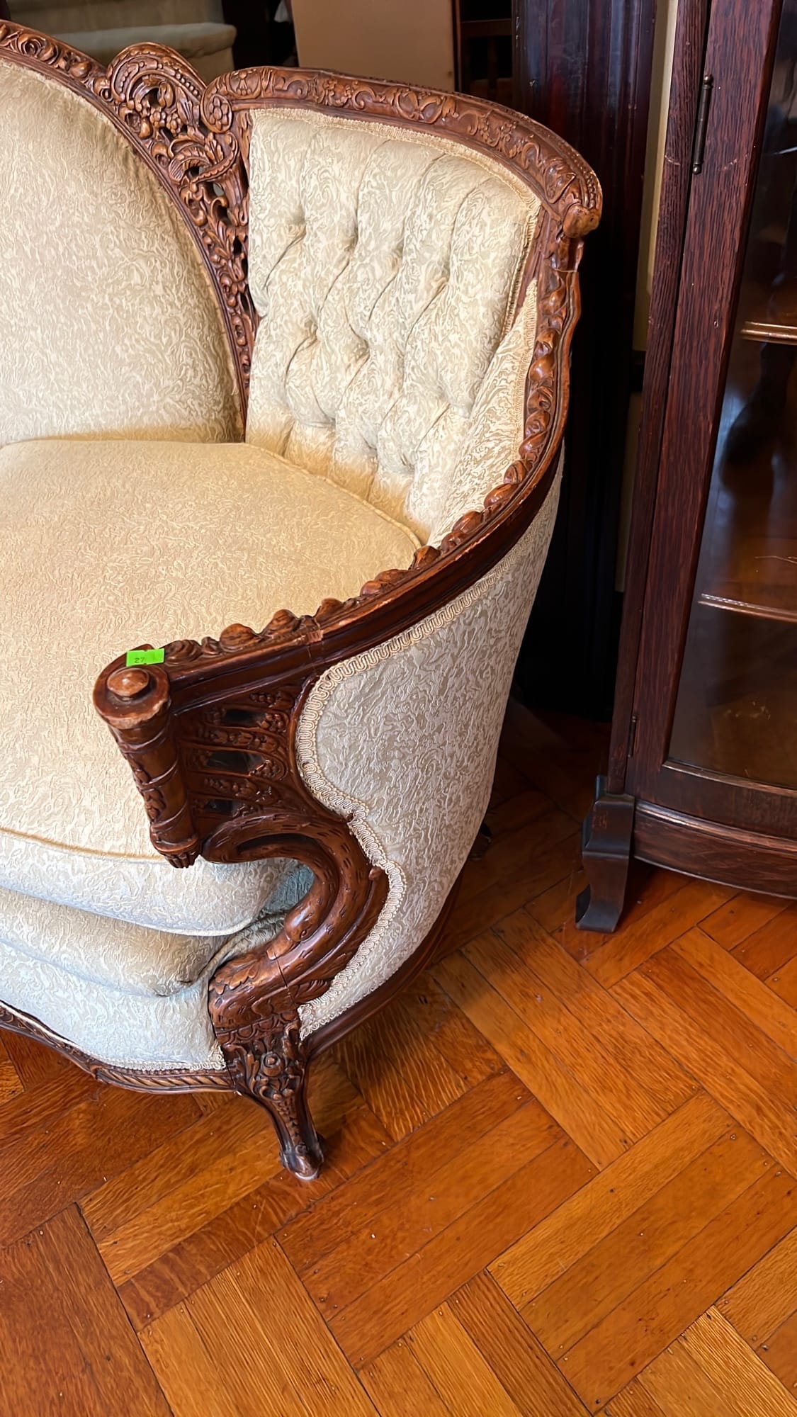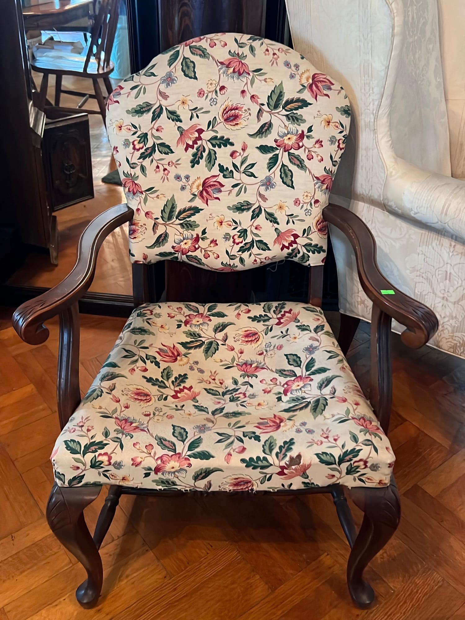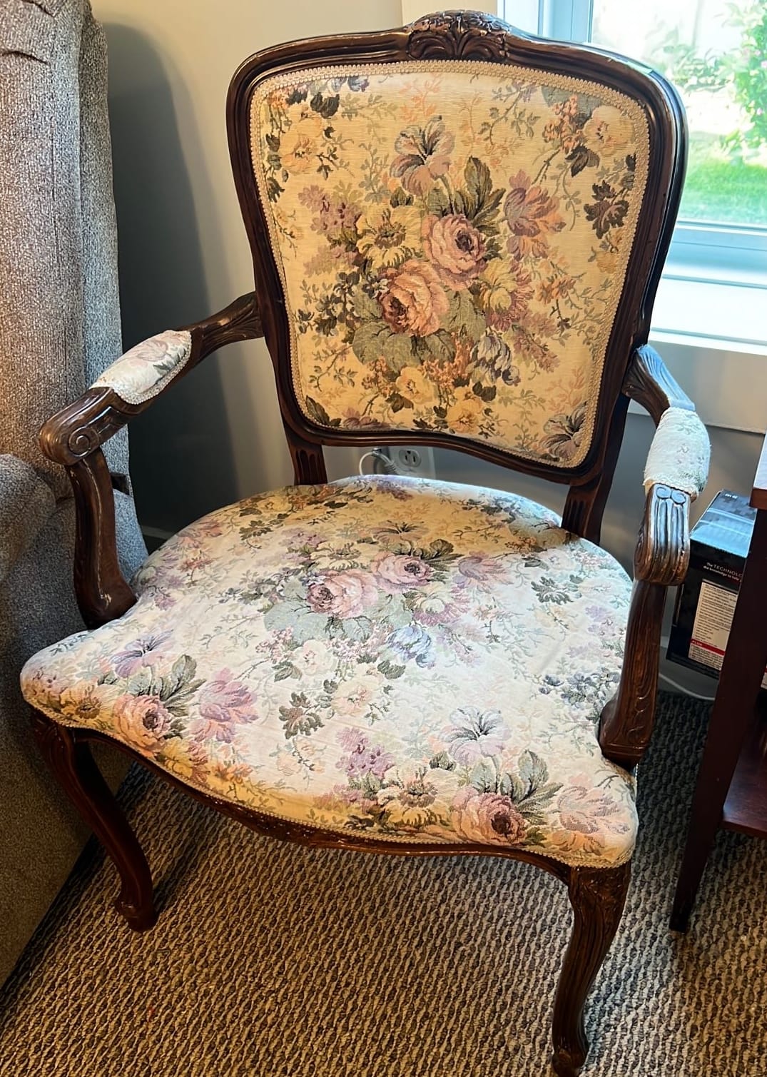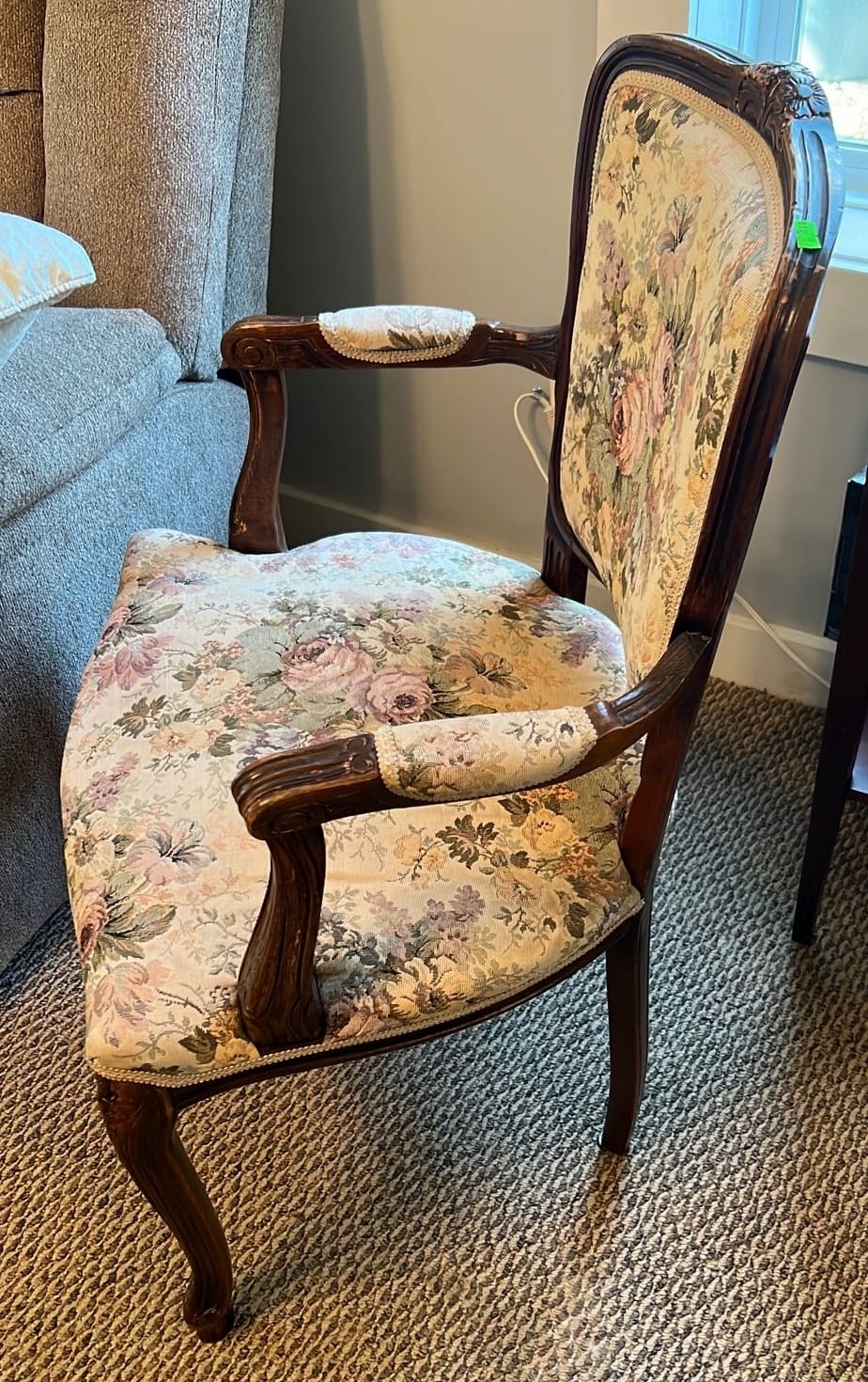 19 2- Vintage Ornate Wood Upolstered Arm Chairs