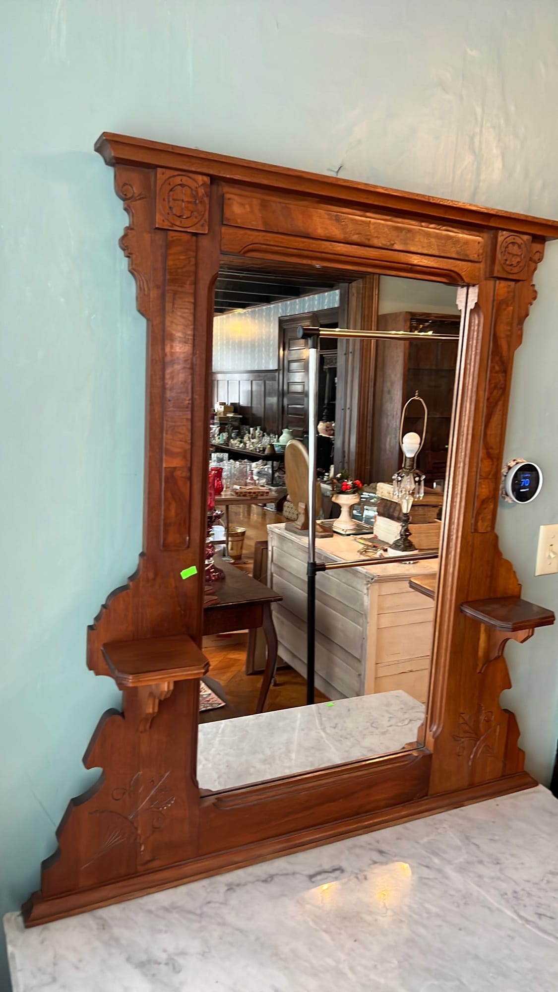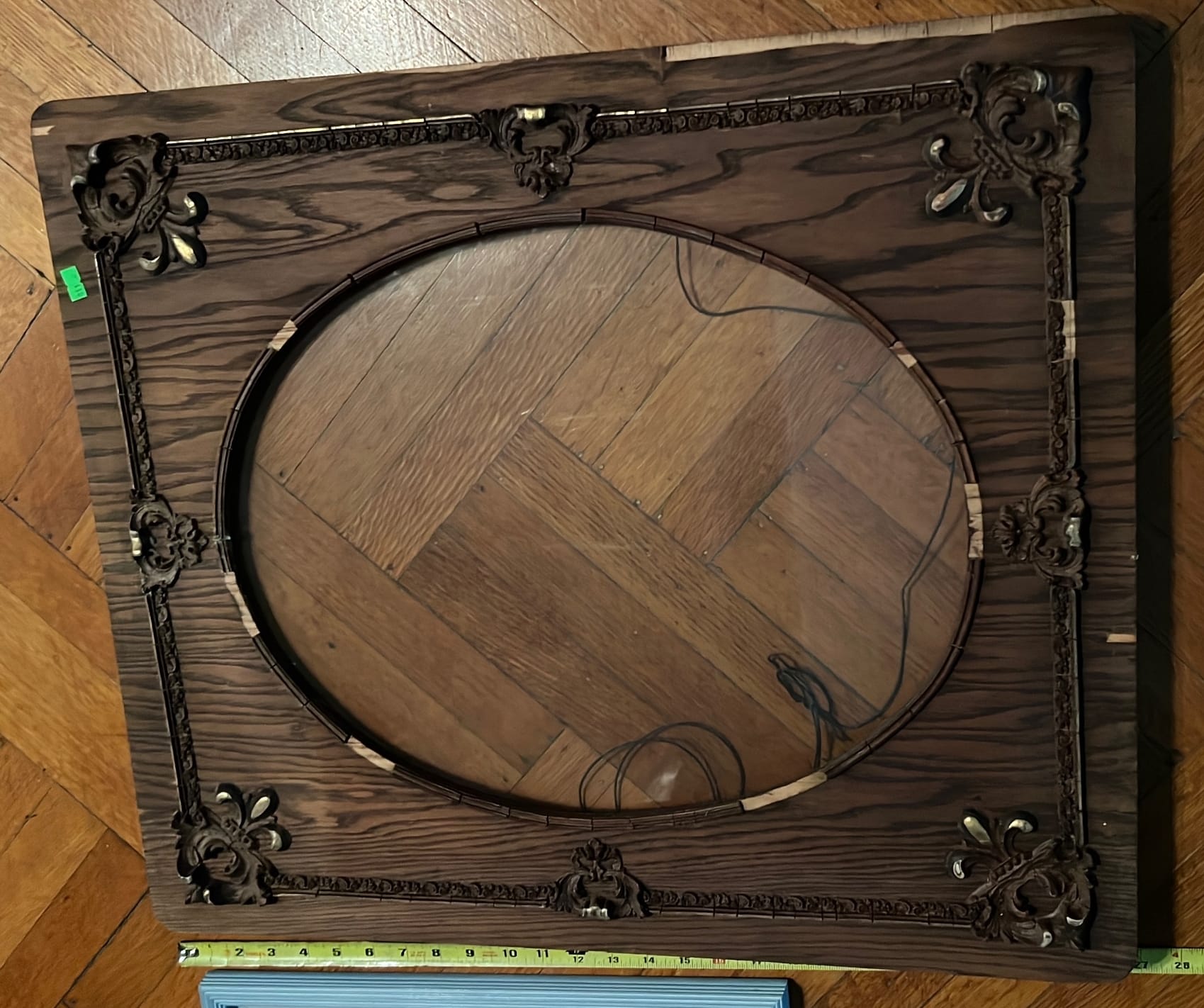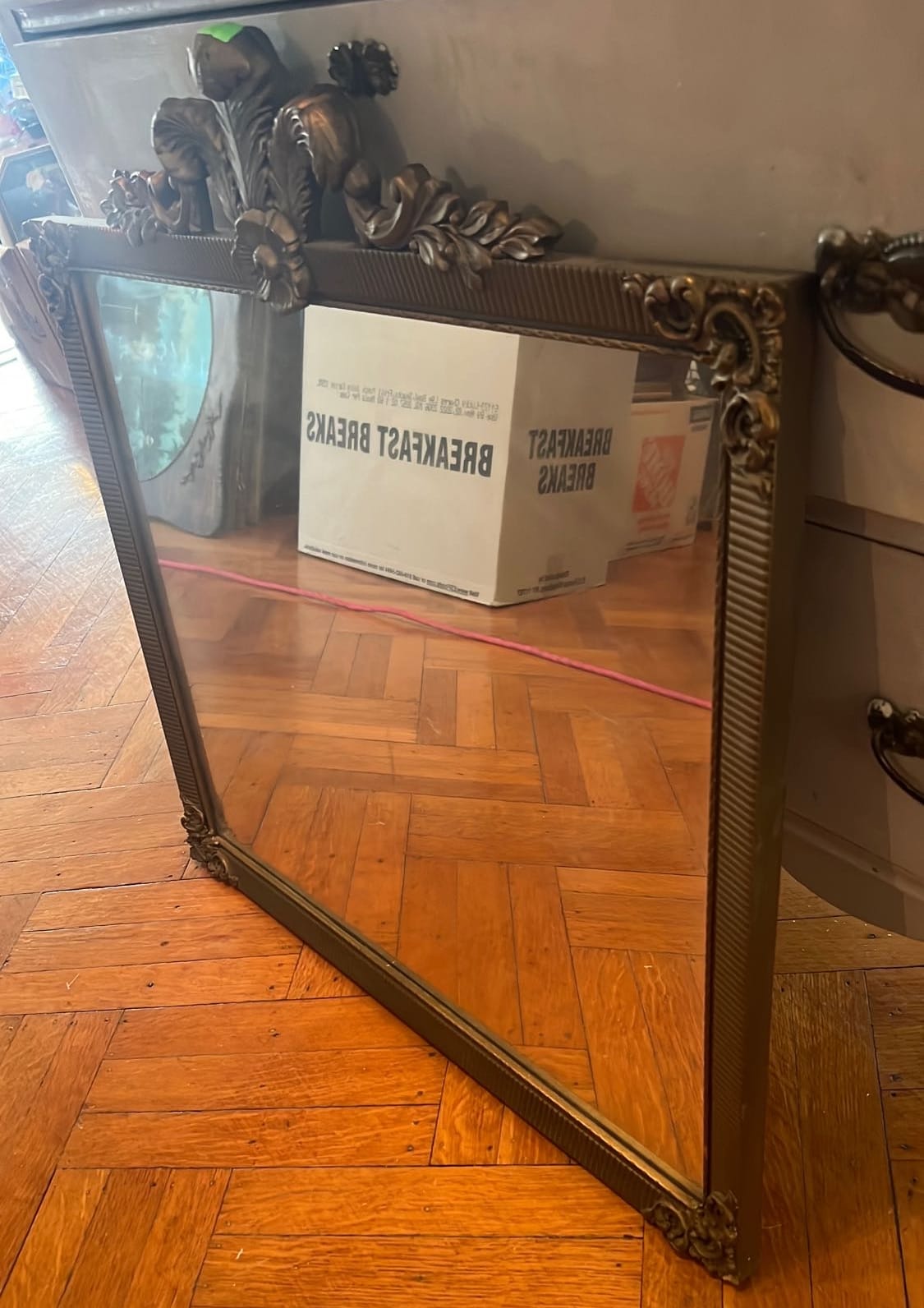116 Vintage Ornate Wood Mirror 23.75”x42.25”