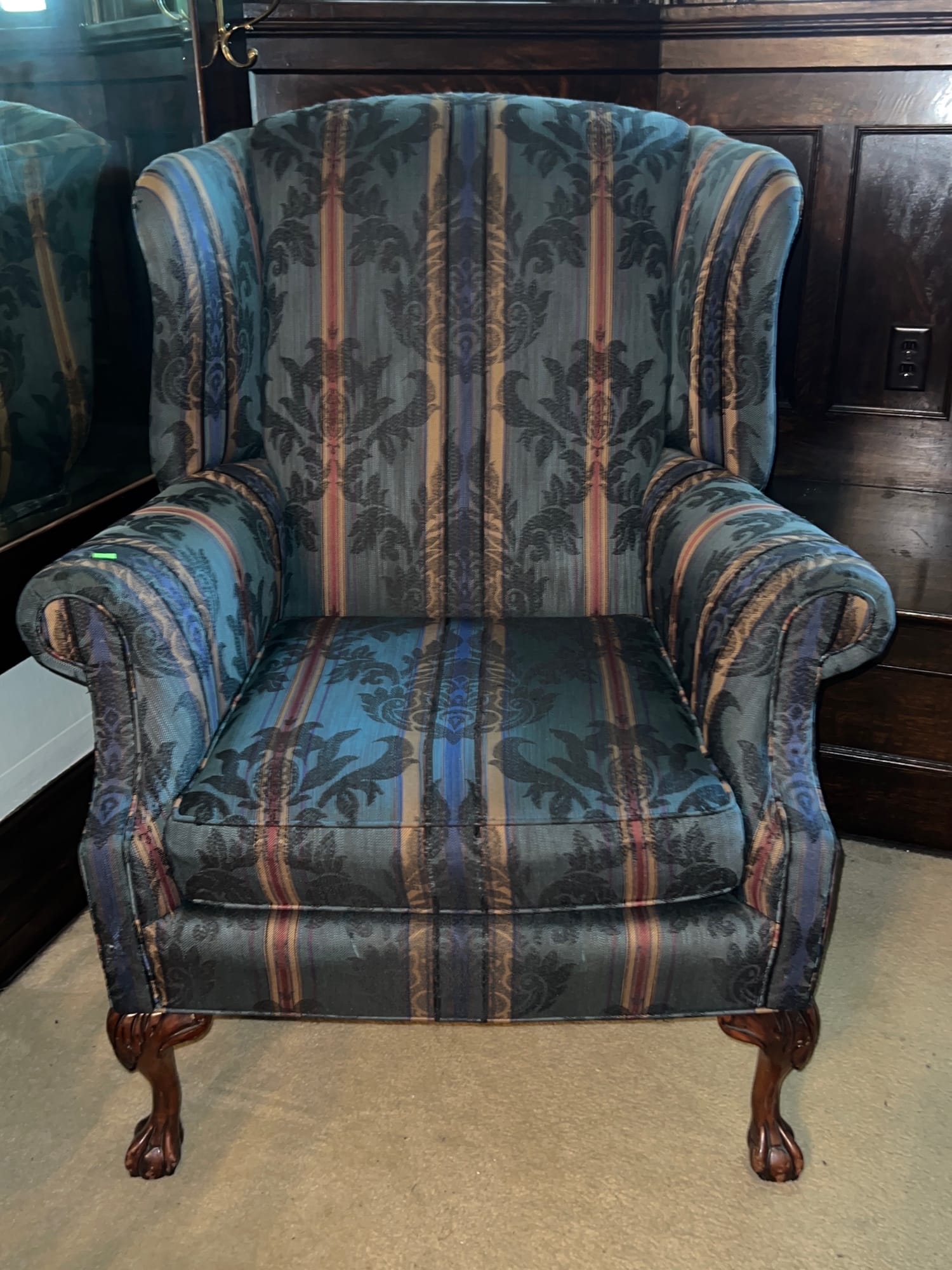 21 Wingback Chair with Front Claw Feet by Perfection Furniture Co. 34.5” wide Seat height 18.5”