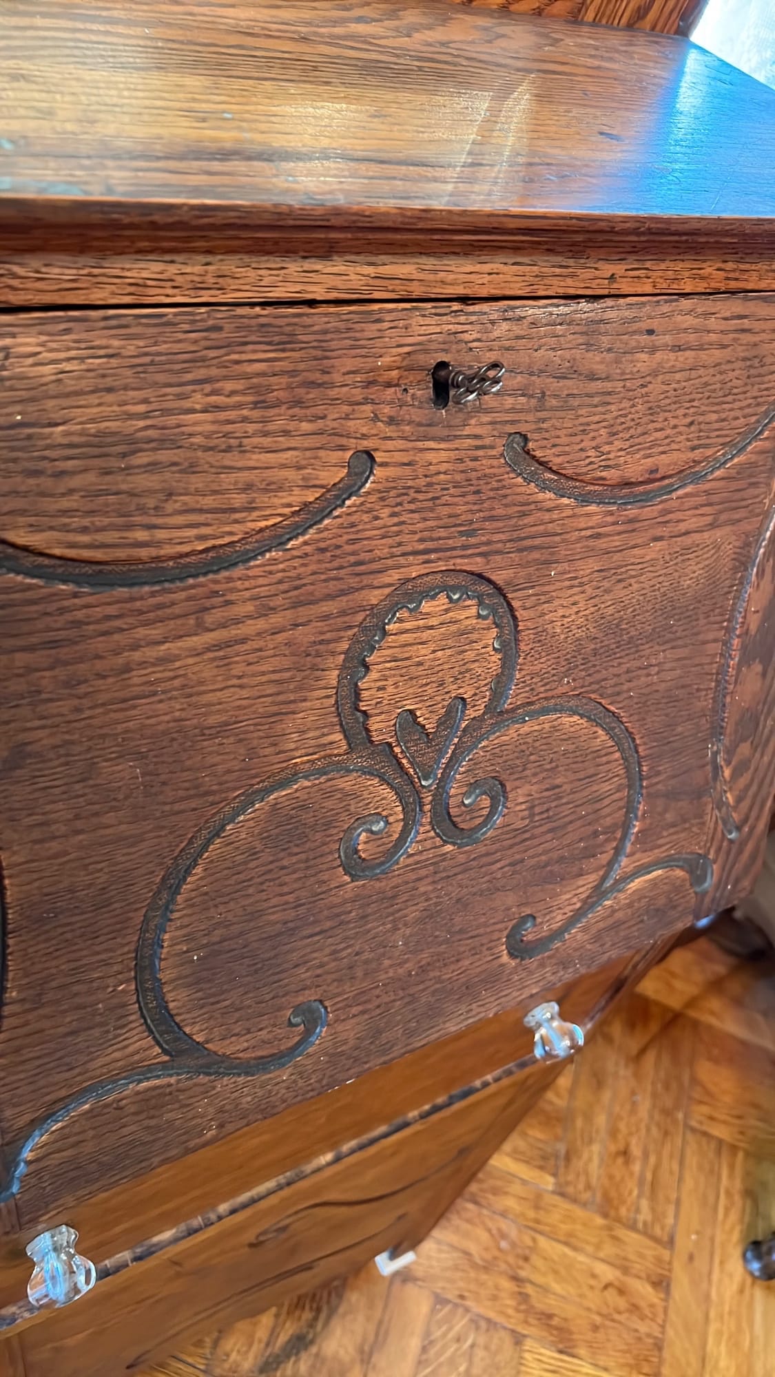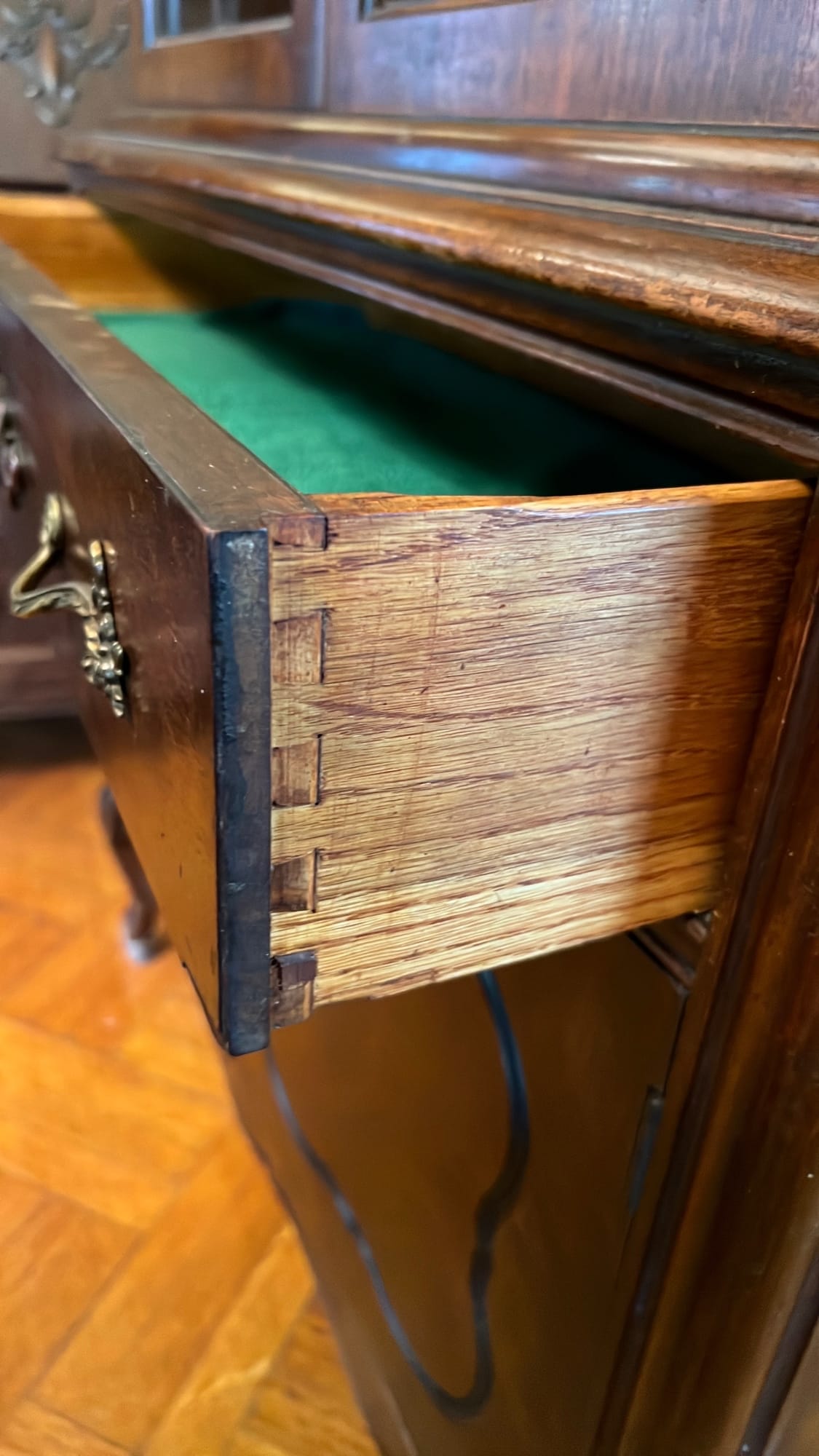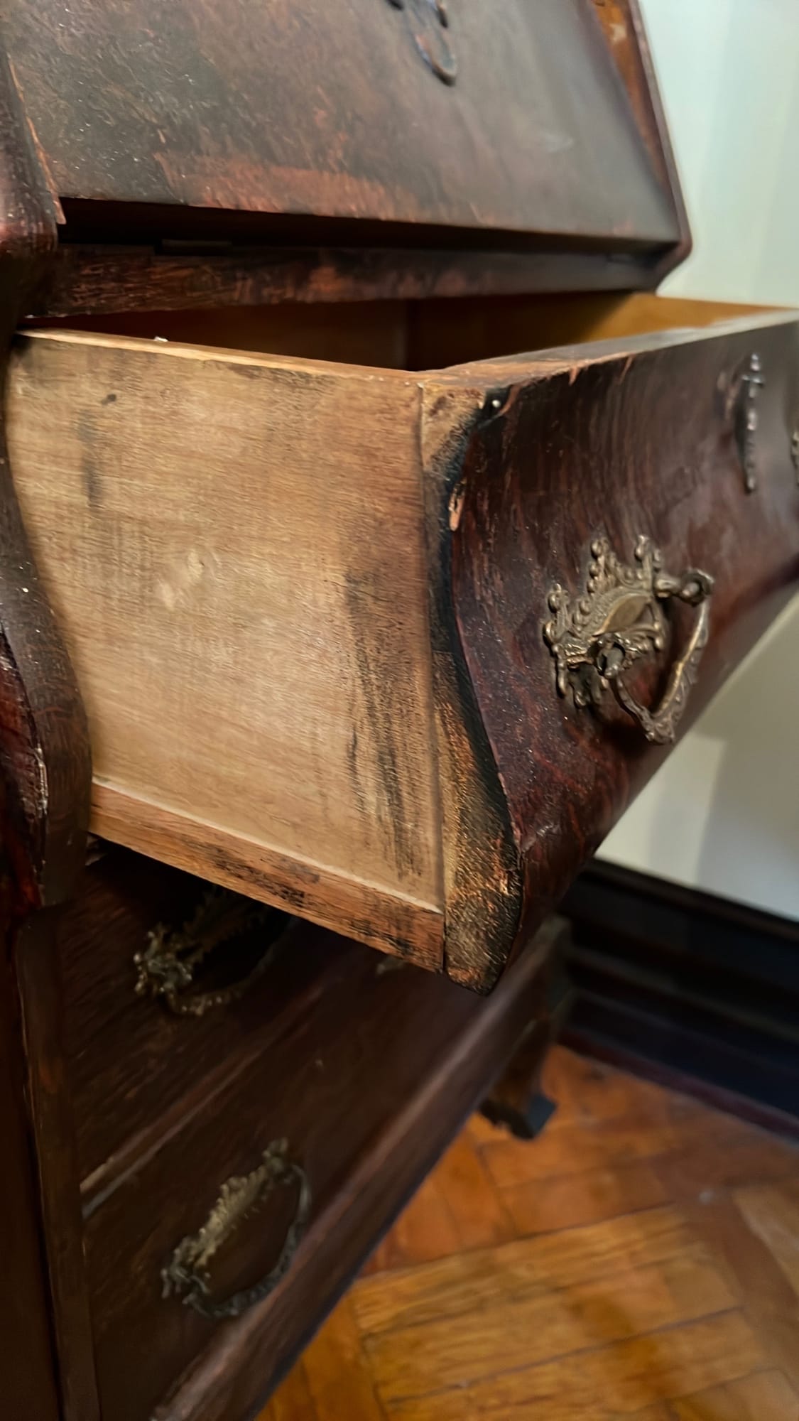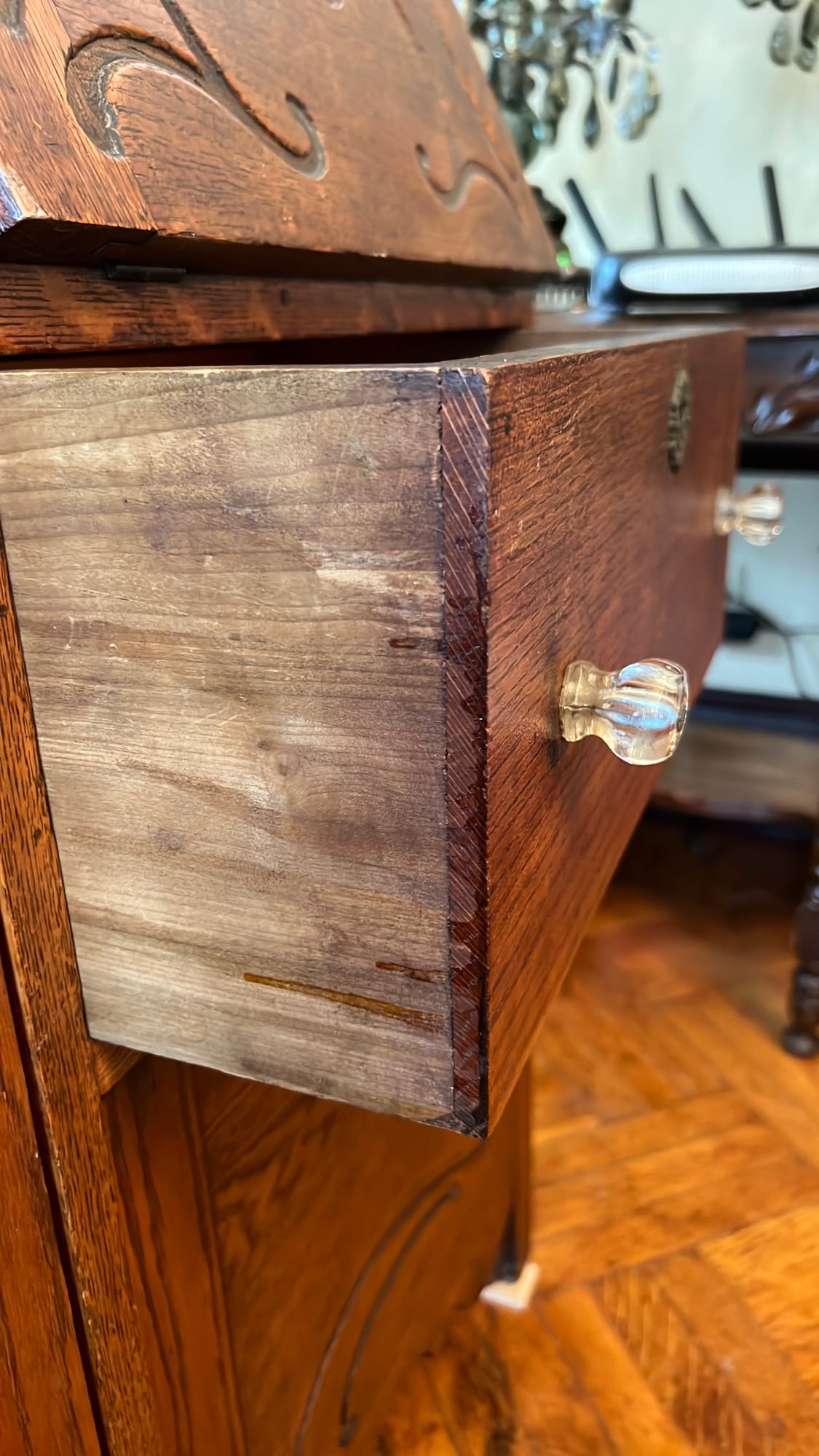 26 Antique Ornate Drop Front Side by Side Secretary with Beveled Mirror 41.5”x68”x14”