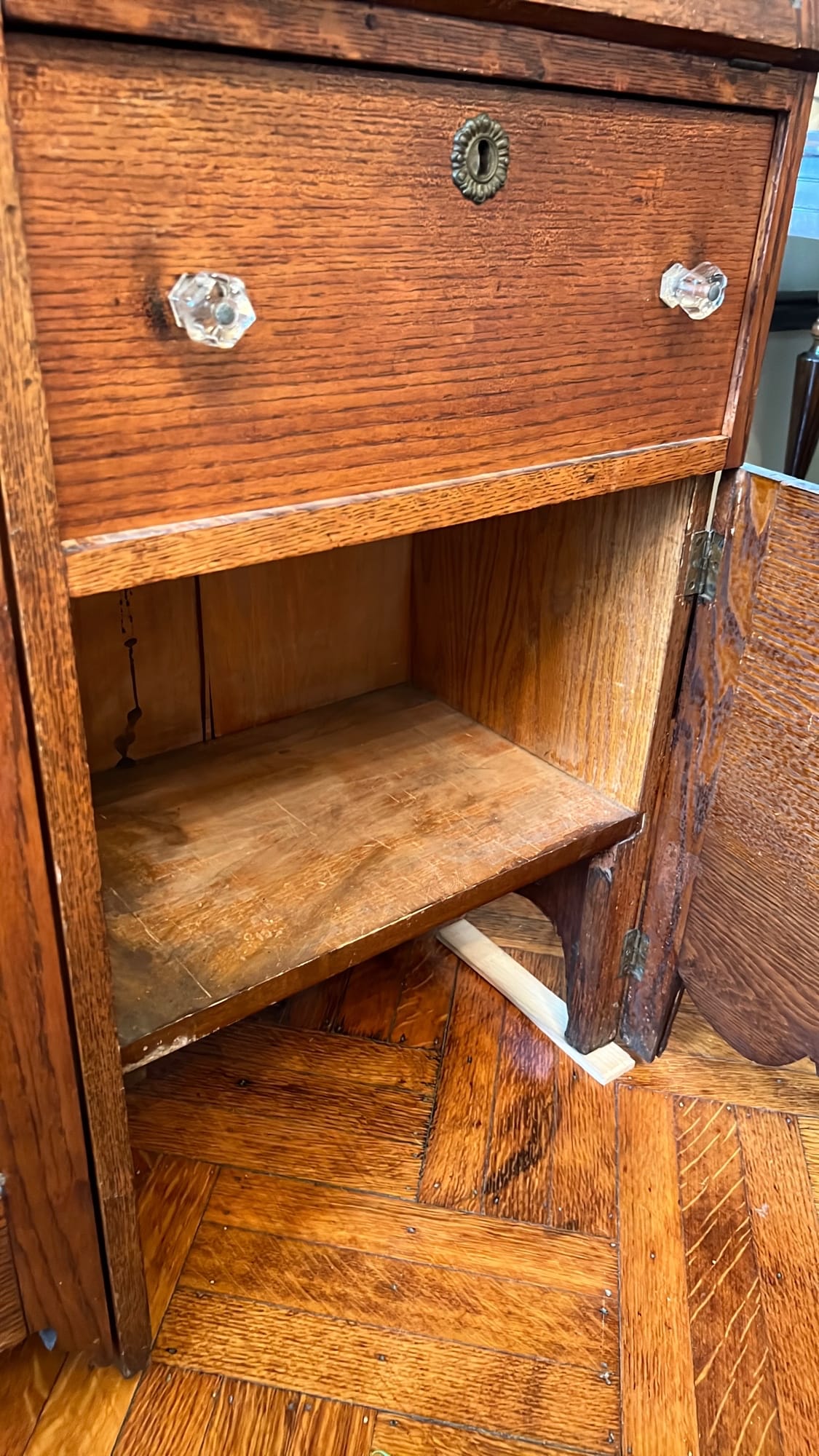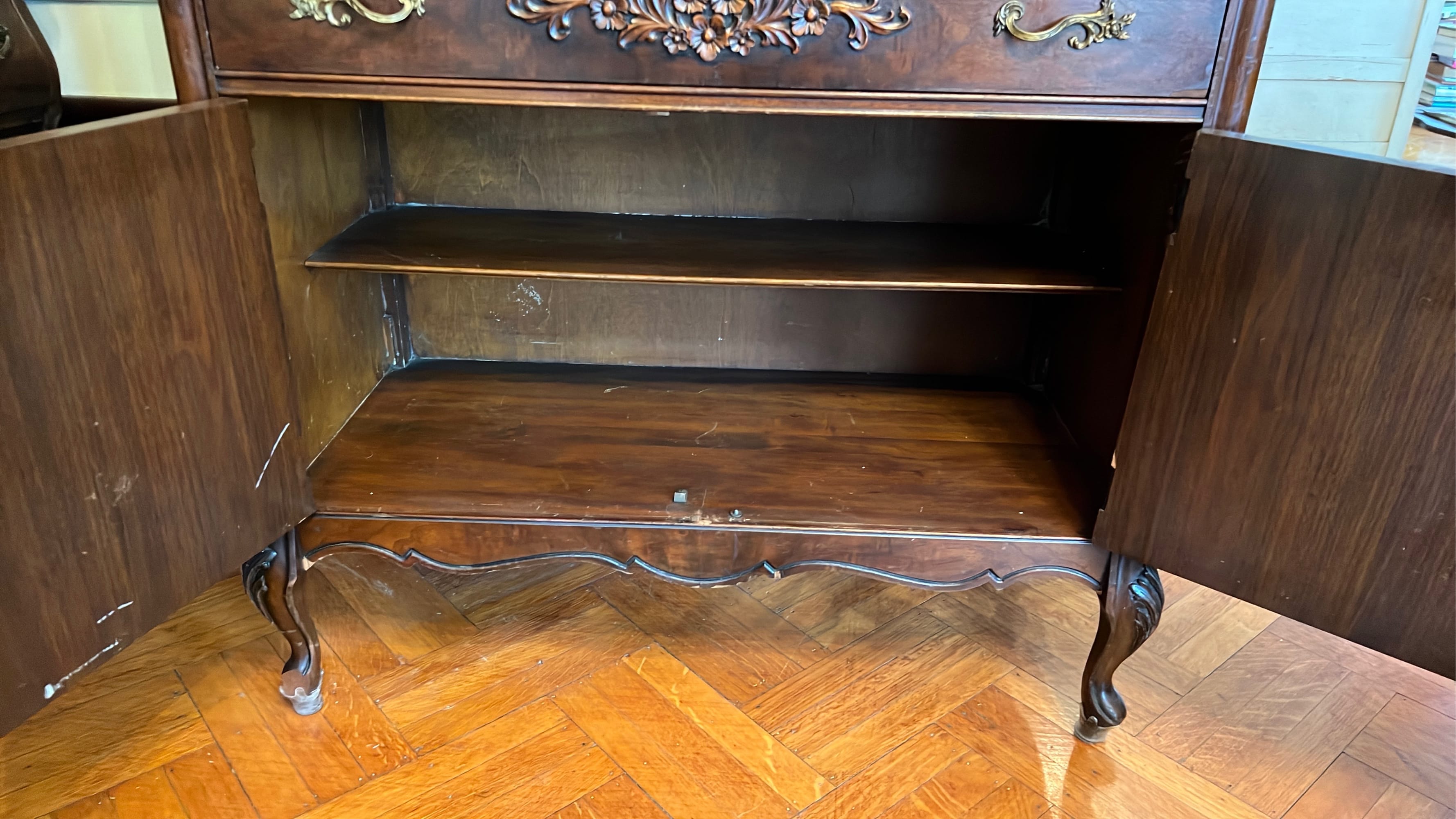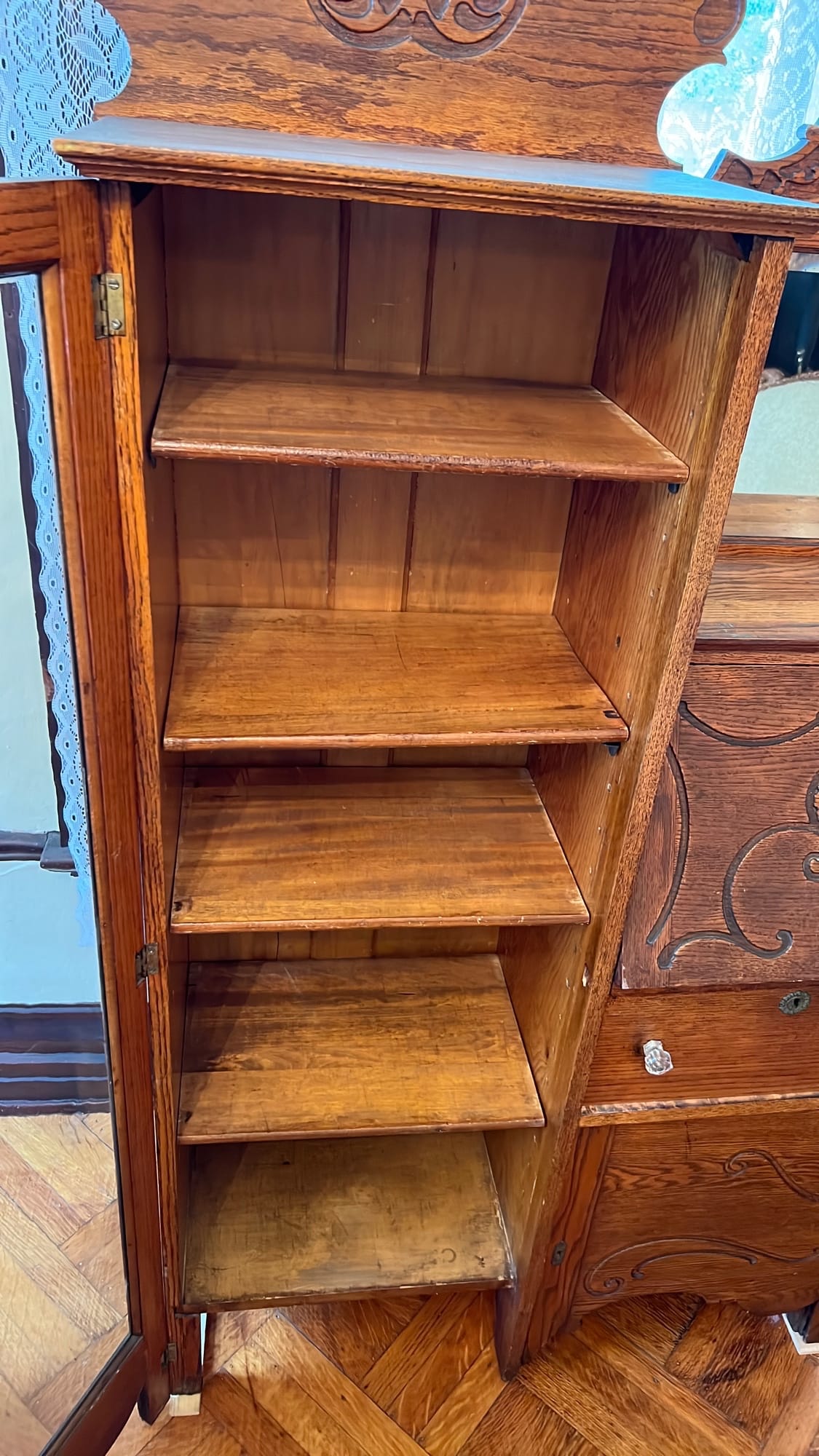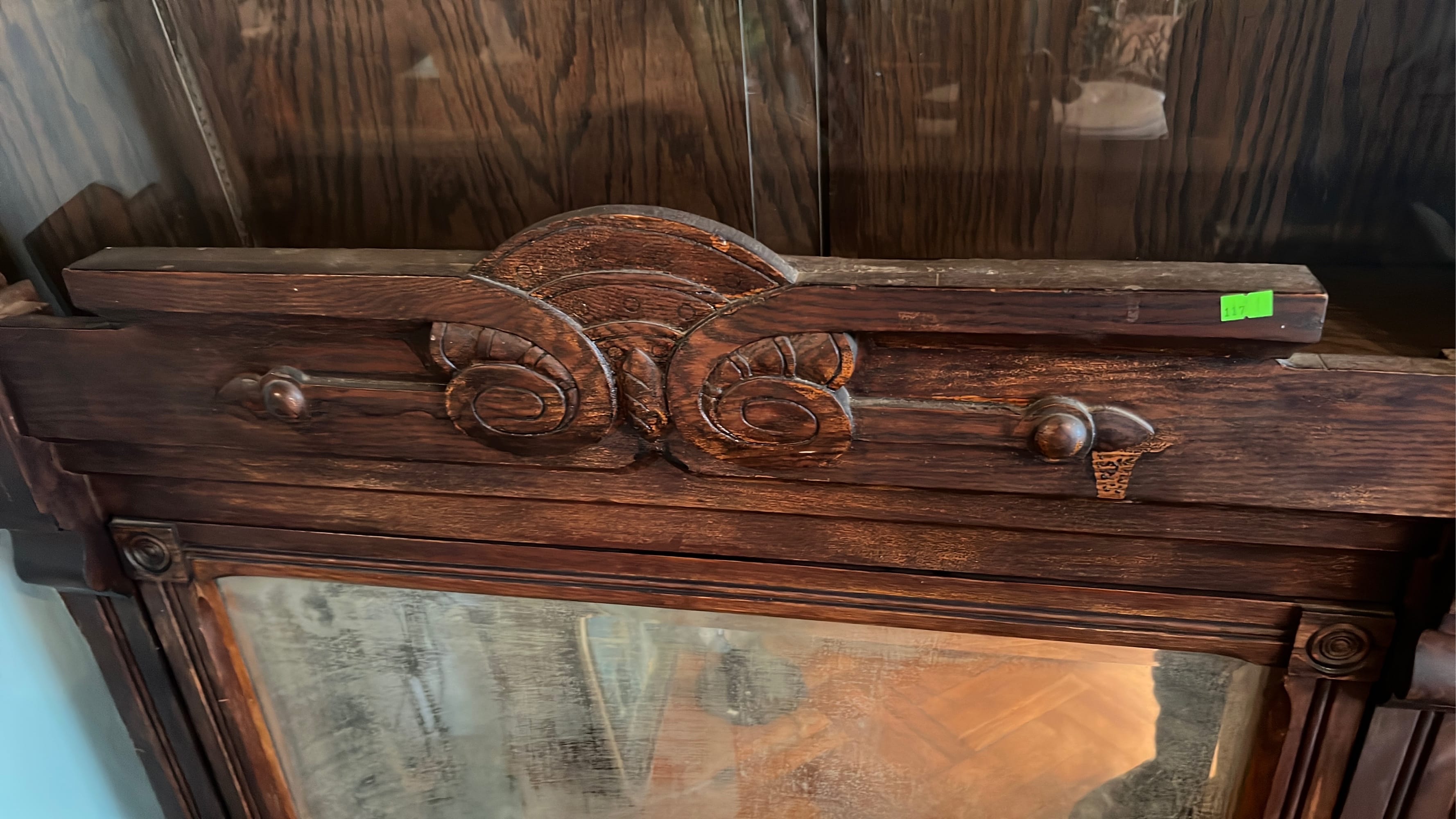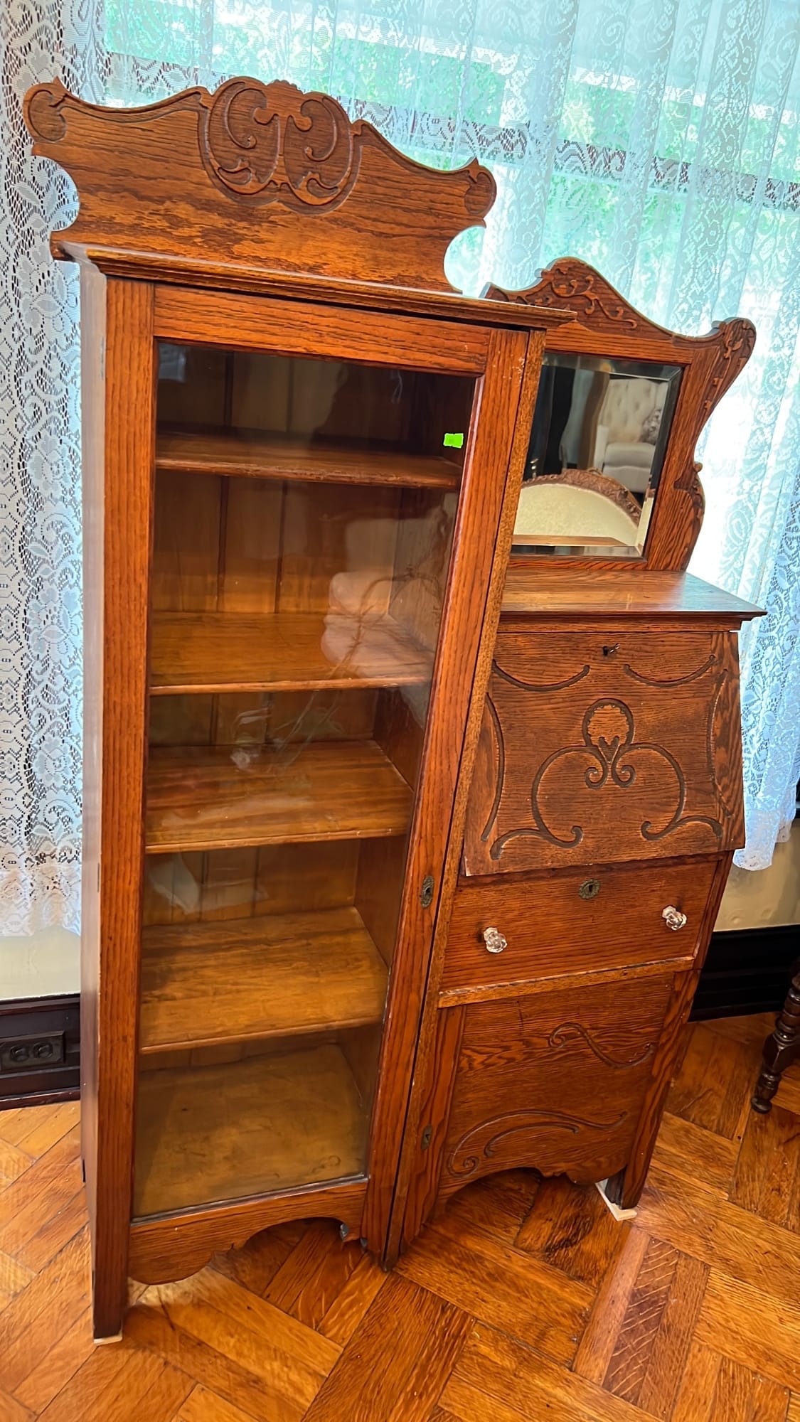 30 Antique Ornate Side by Side Secretary with Beveled Mirror 41”x65”x13.5”