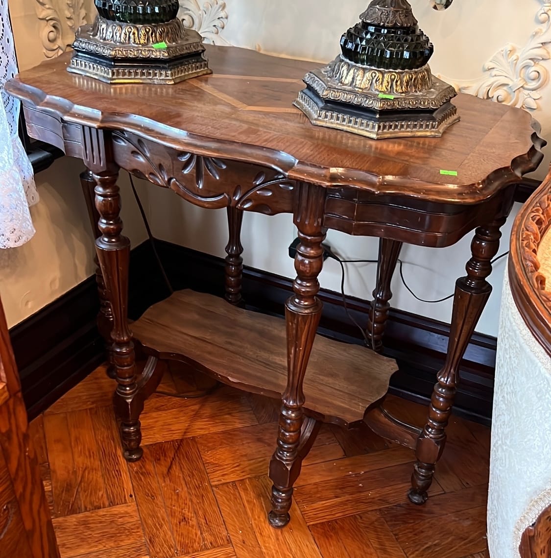 23 Vintage Ornate Parlor Table 30”x30.5”x21.5”