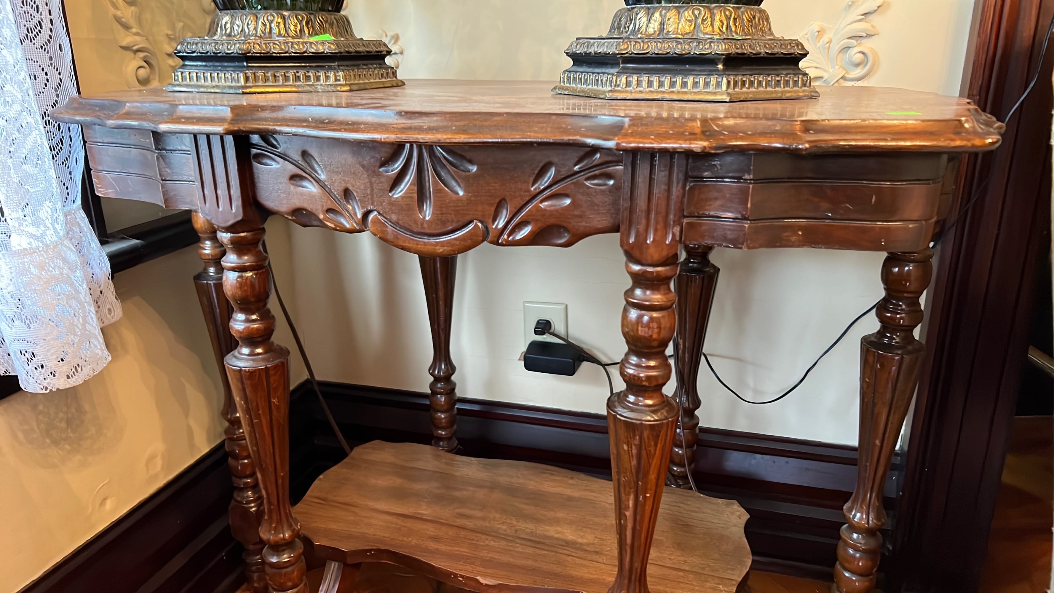 28 Vintage Parlor Table 34”x29.25”x19.75” (Contents not included)