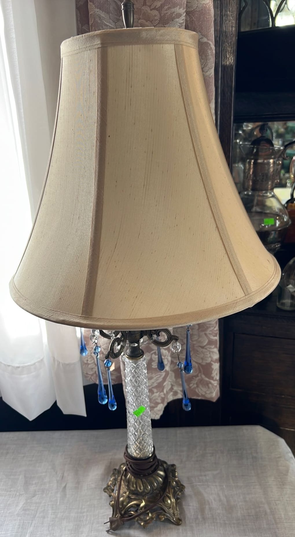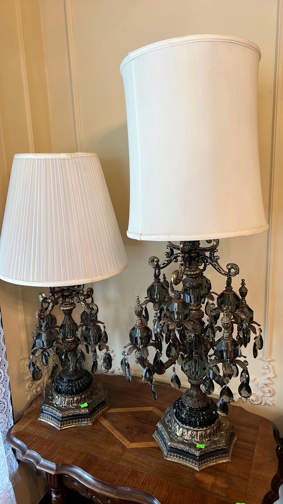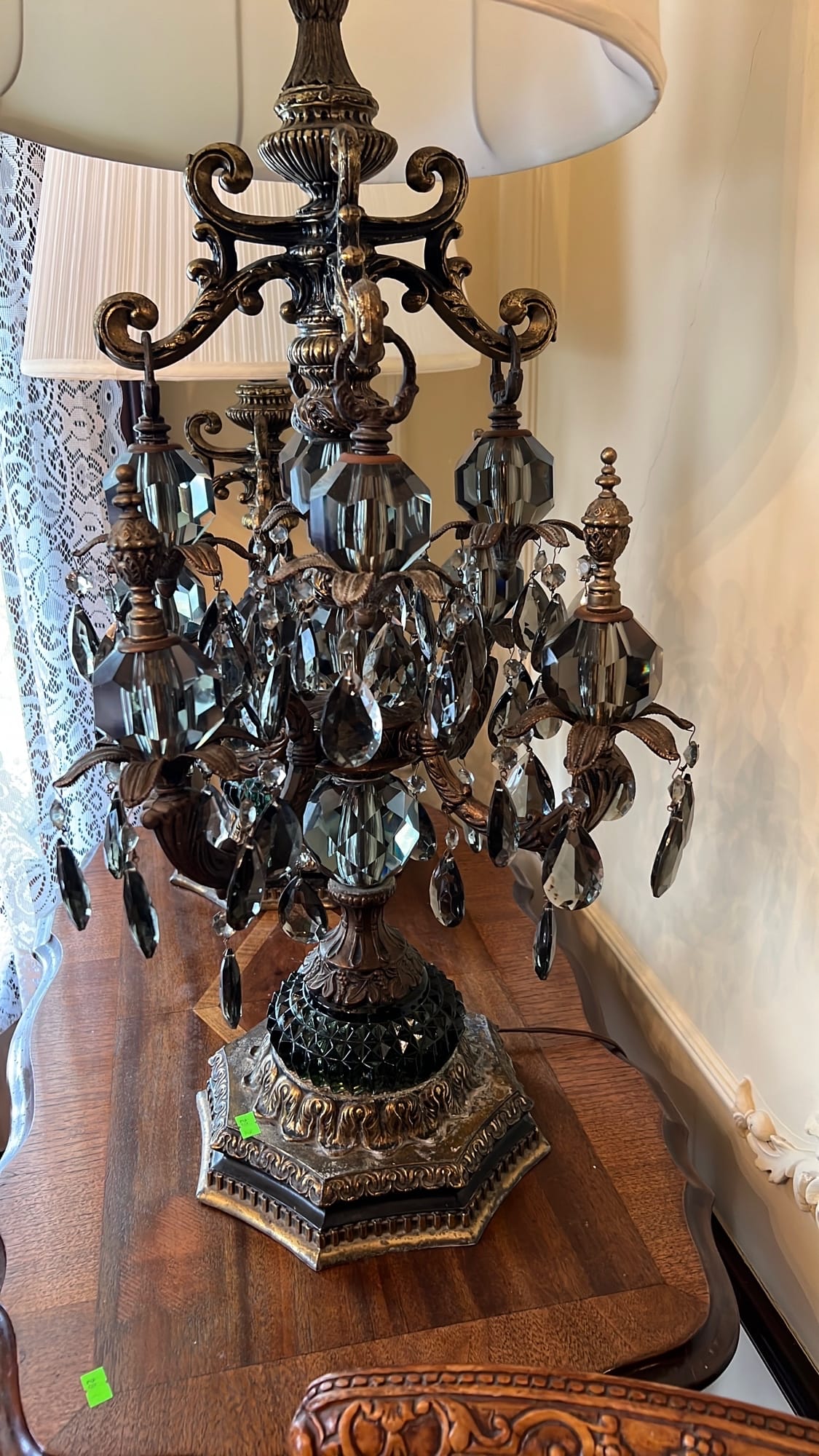 29 2- Vintage Table lamps with Crystal Prisms 33” & Vintage Four Arm Table Lamp with Prisms 41”
