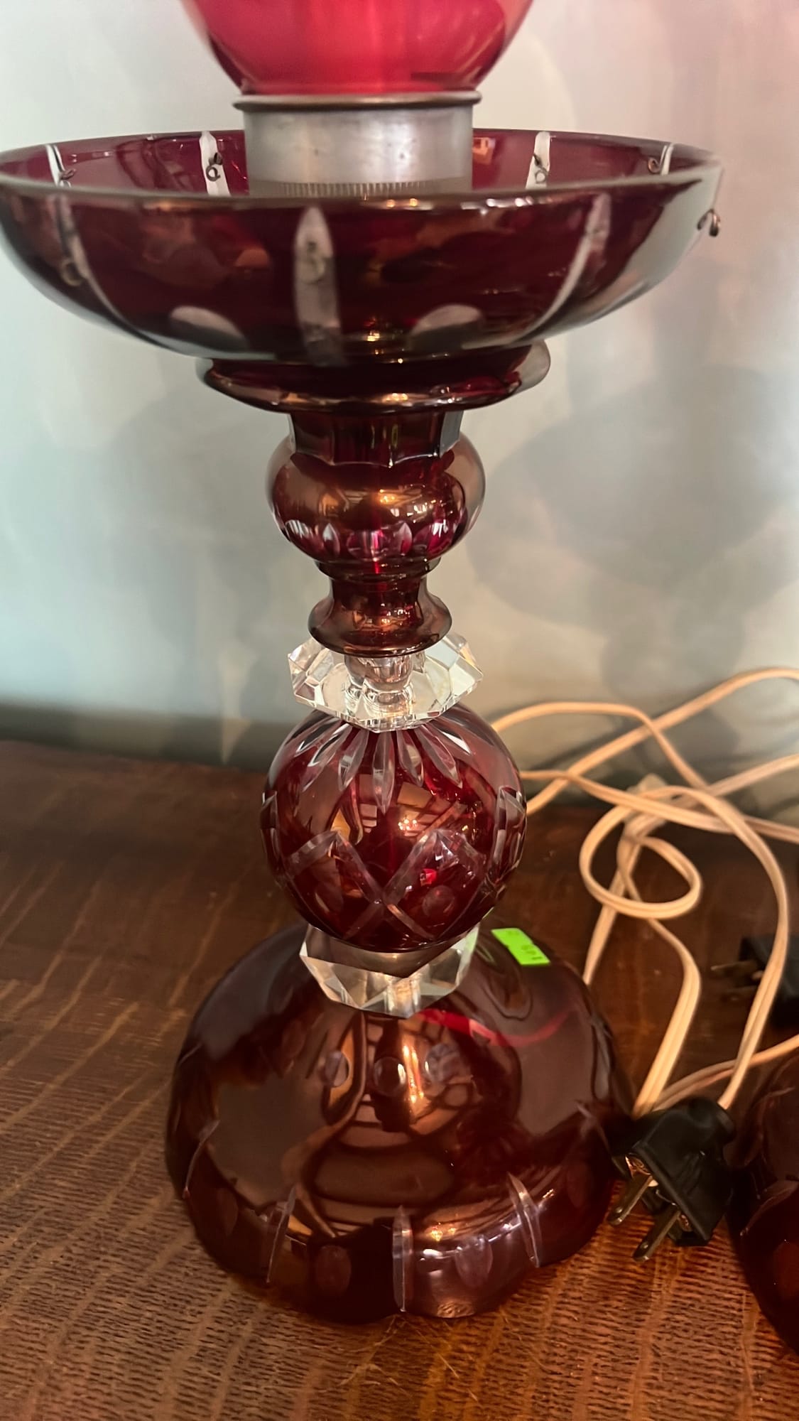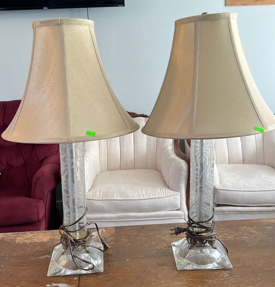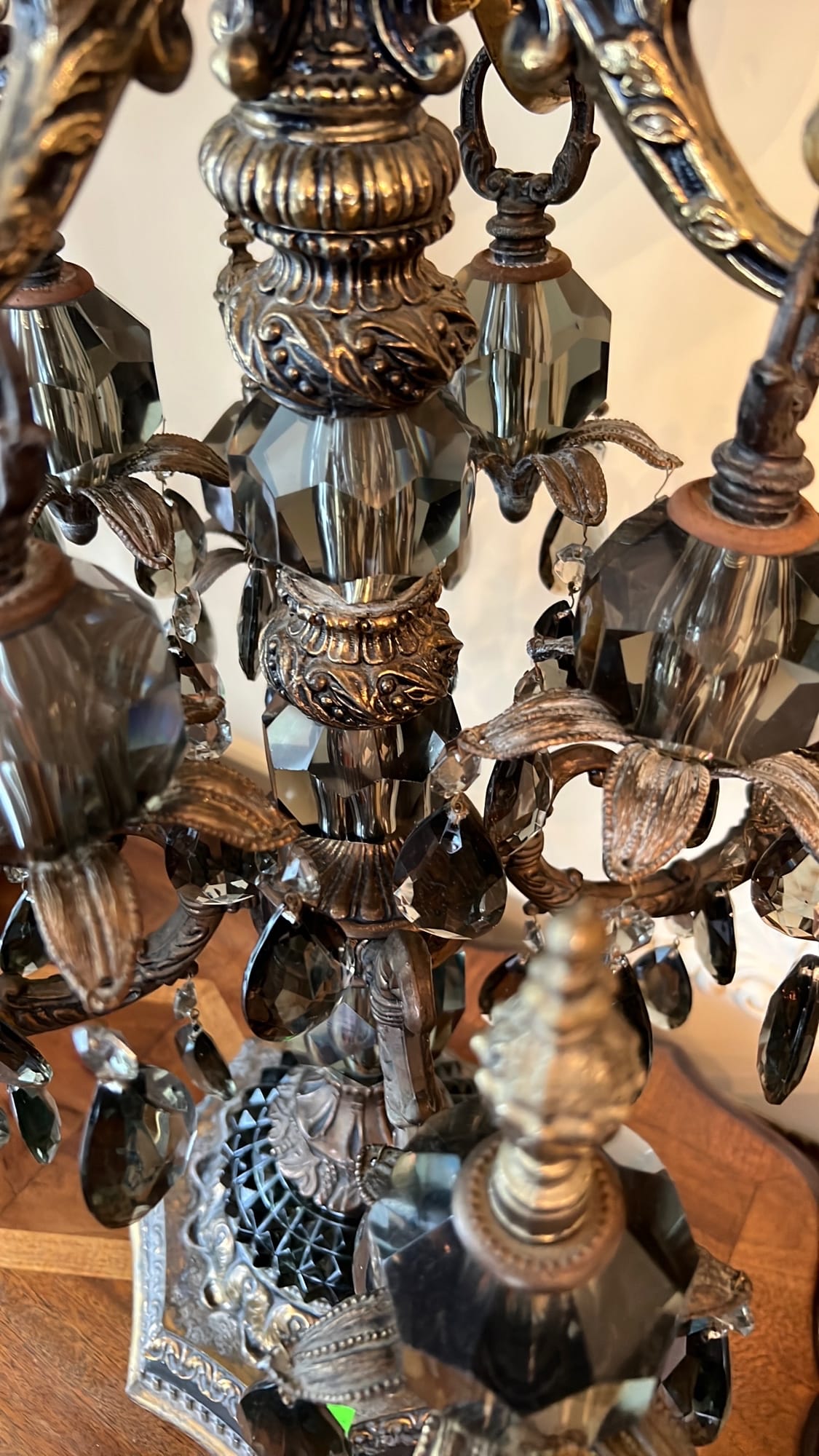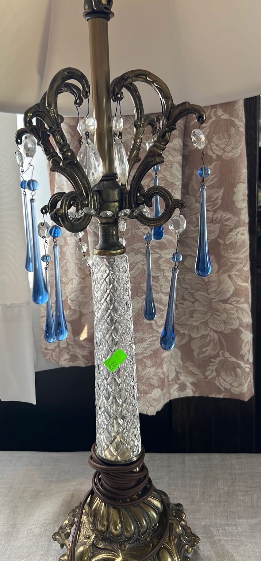 29 2- Vintage Table lamps with Crystal Prisms 33” & Vintage Four Arm Table Lamp with Prisms 41”