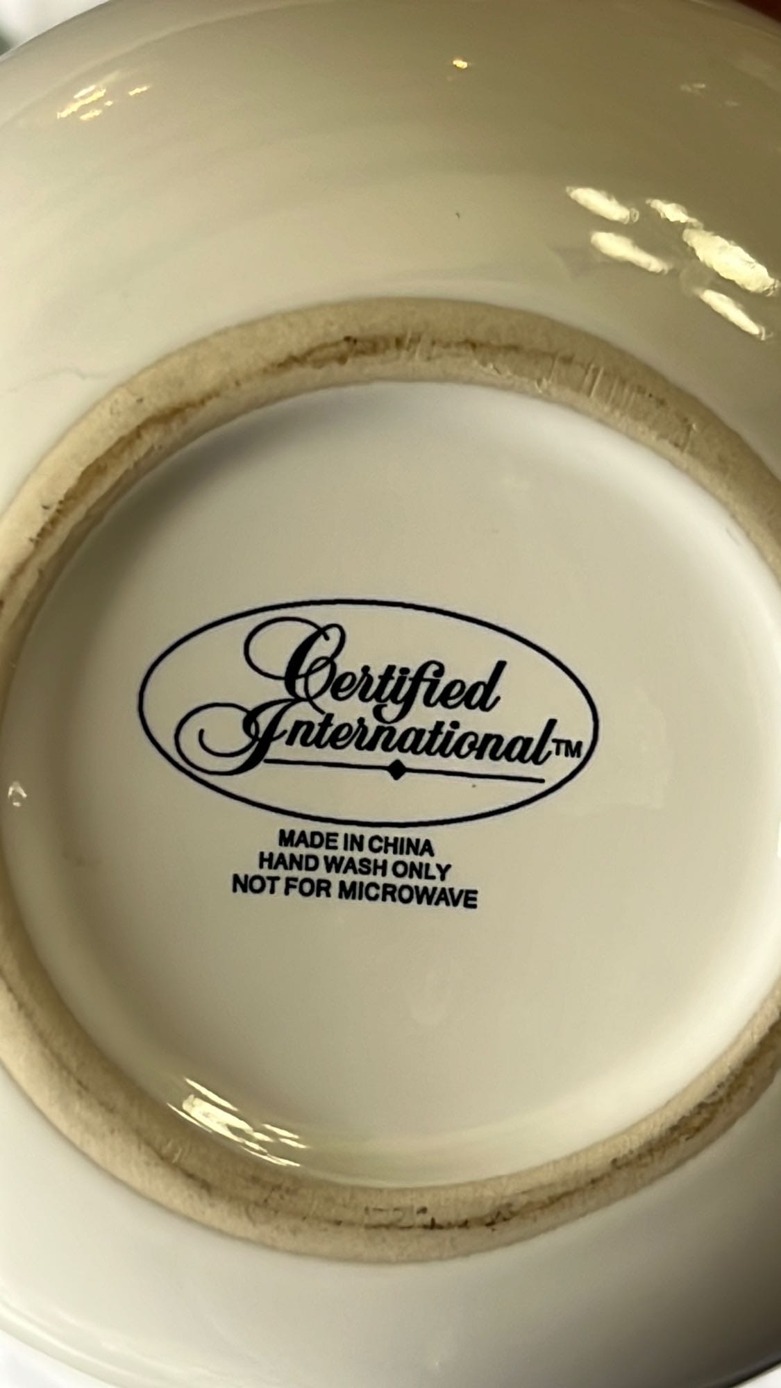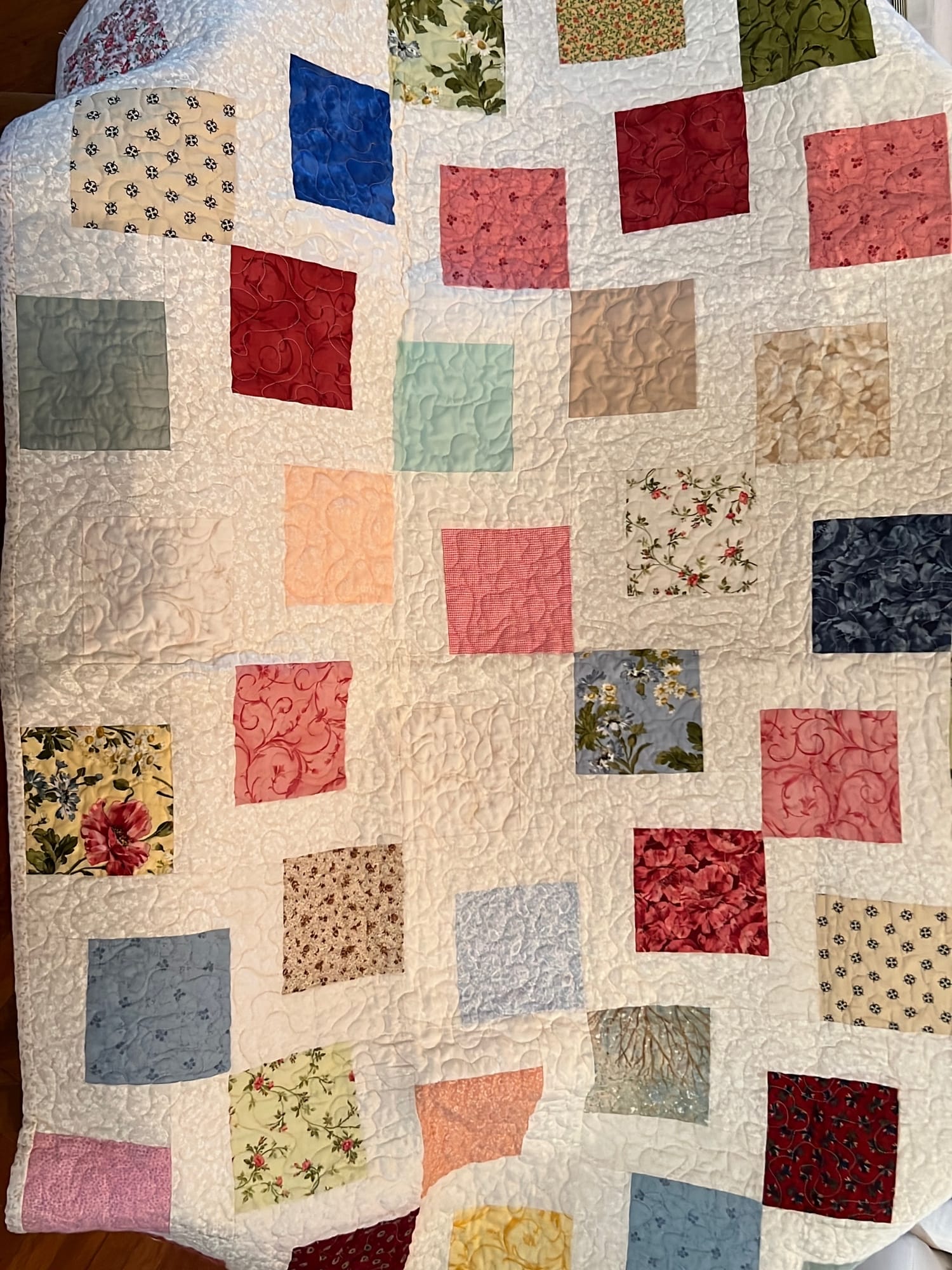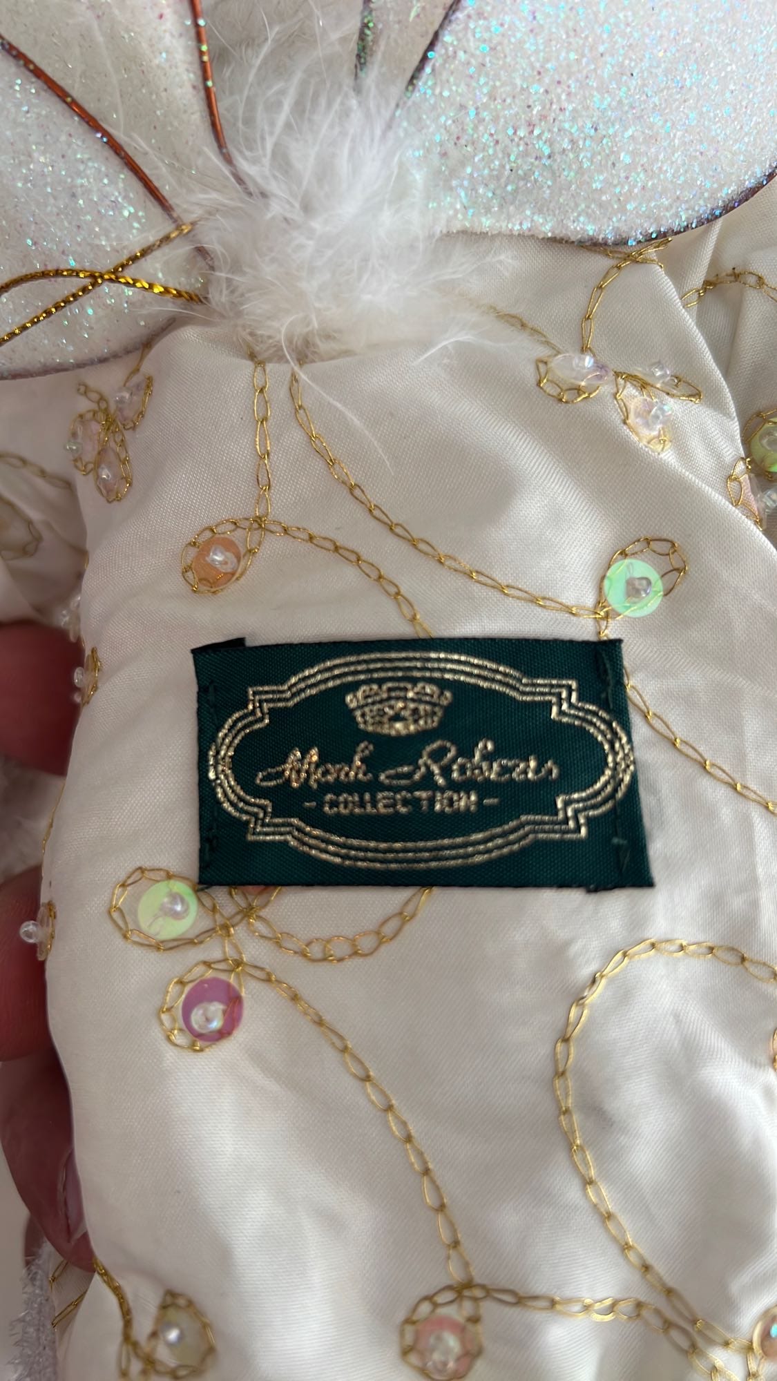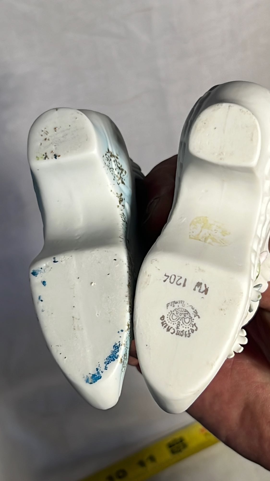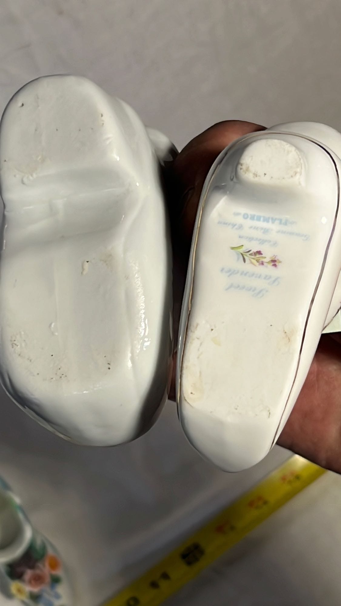 34 Pair of Ivory Vintage Chairs with Floral Pillows 23.5” wide Seat height 20.5”