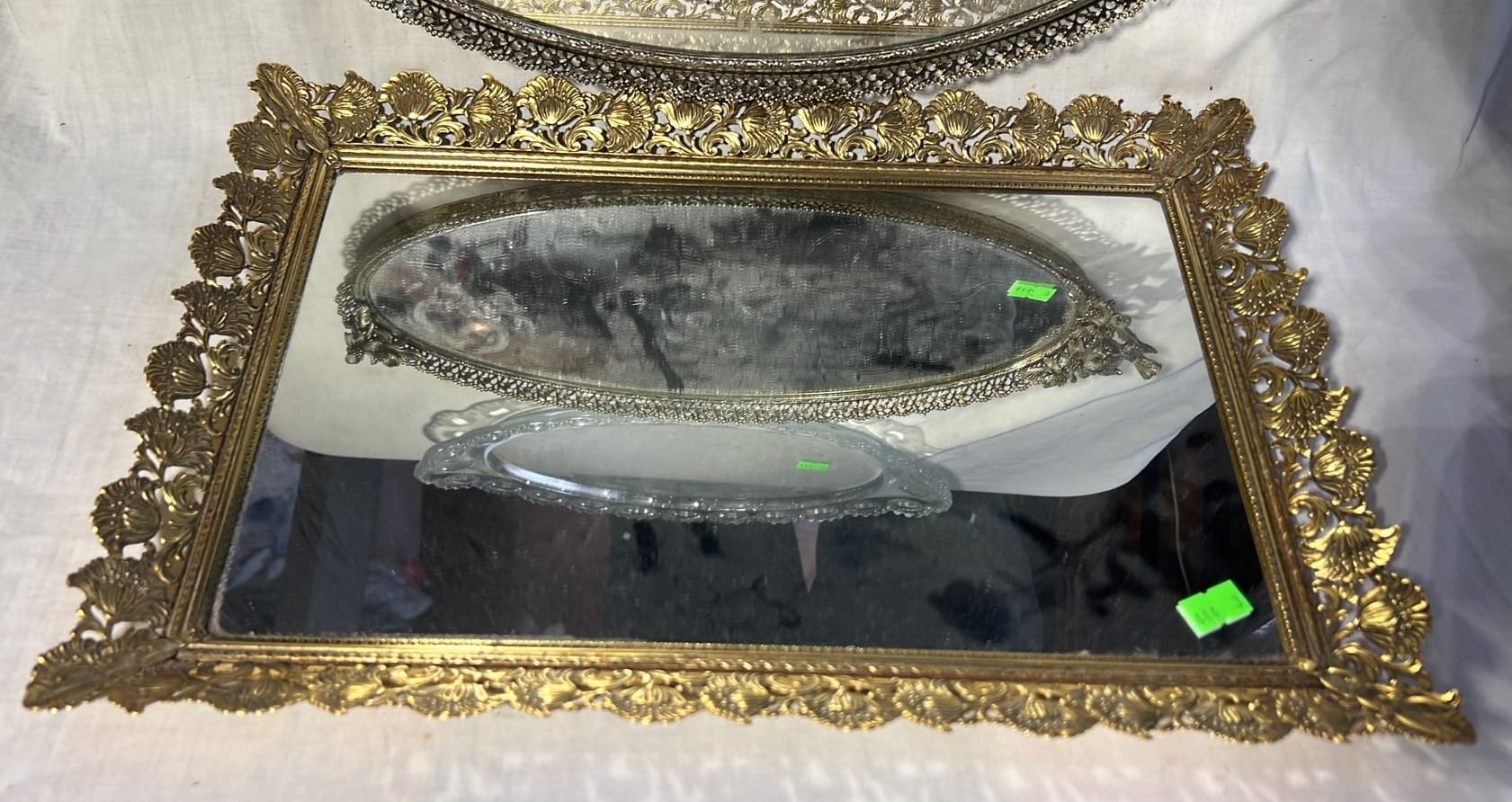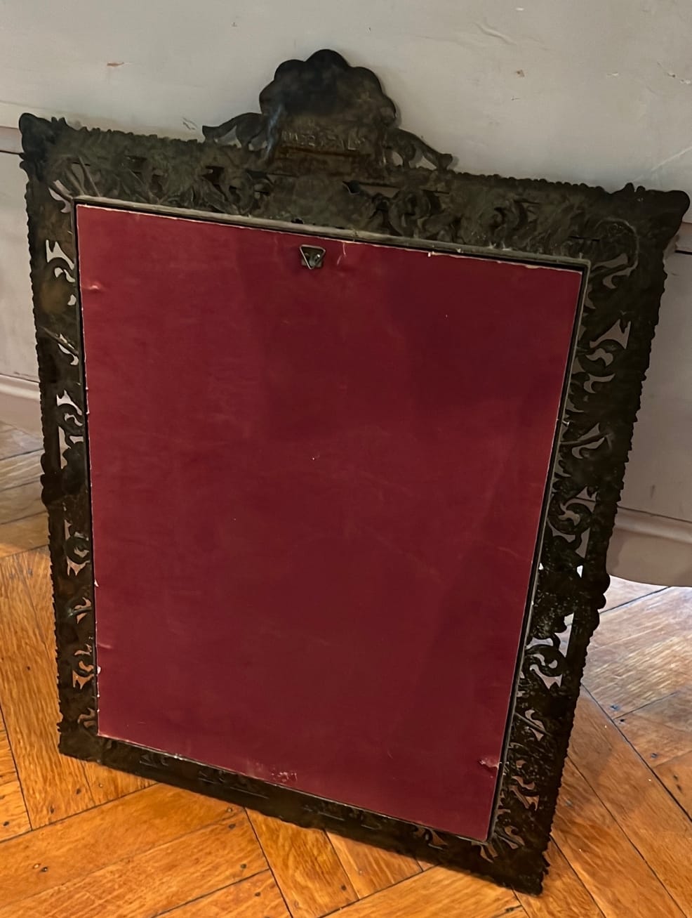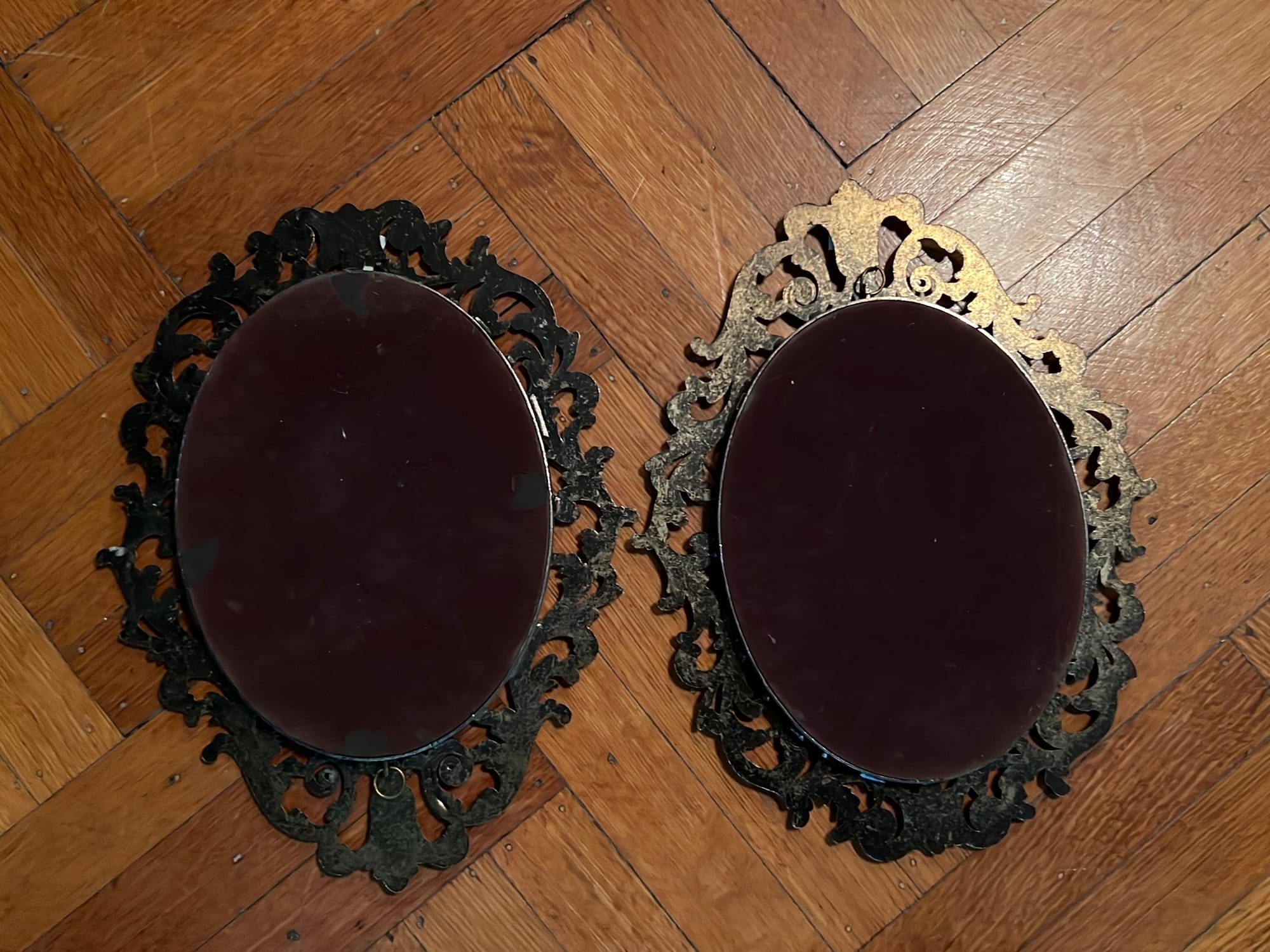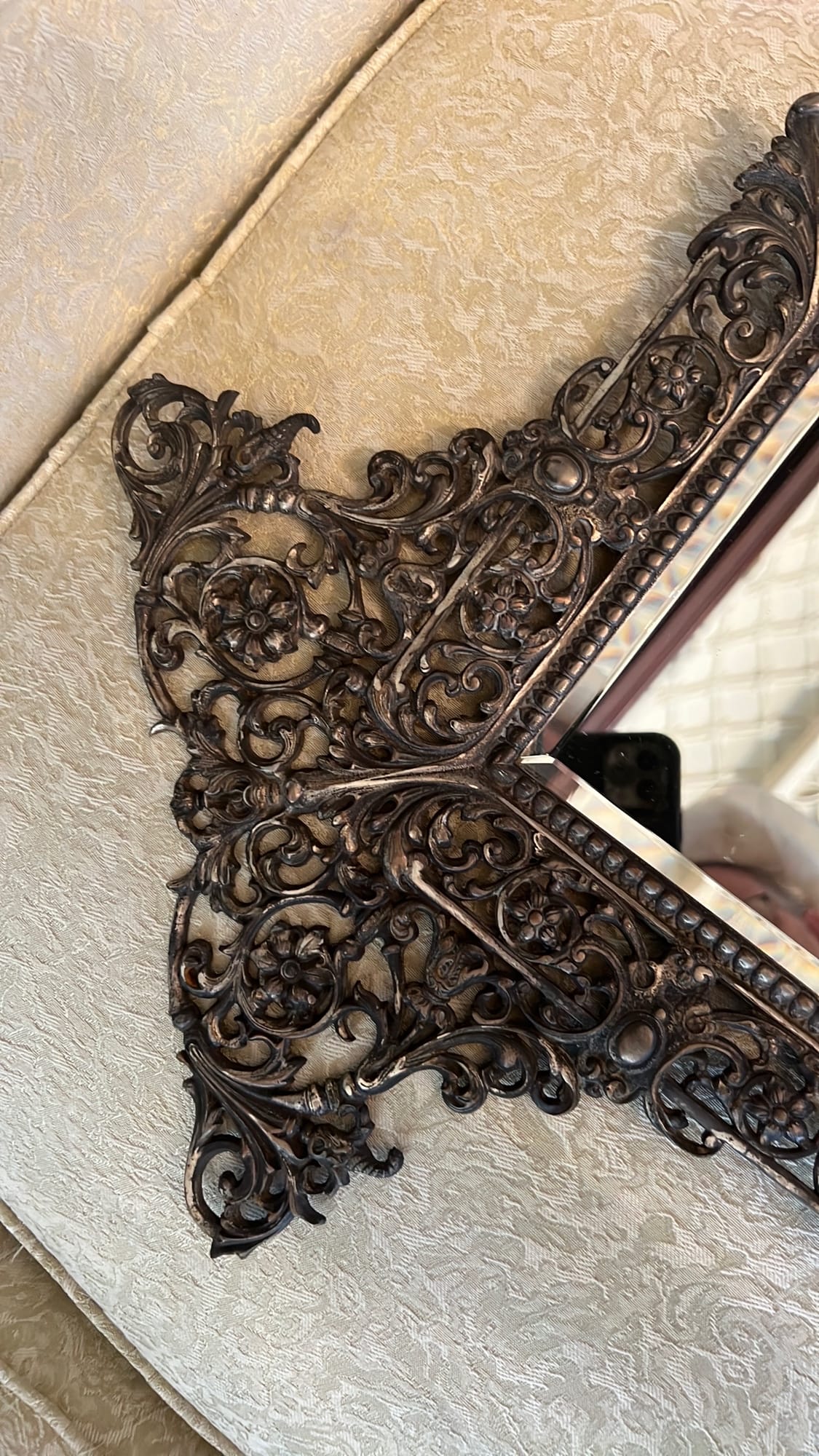 36 Vintage Beveled Mirror with Ornate Metal Frame 14.5”x16”