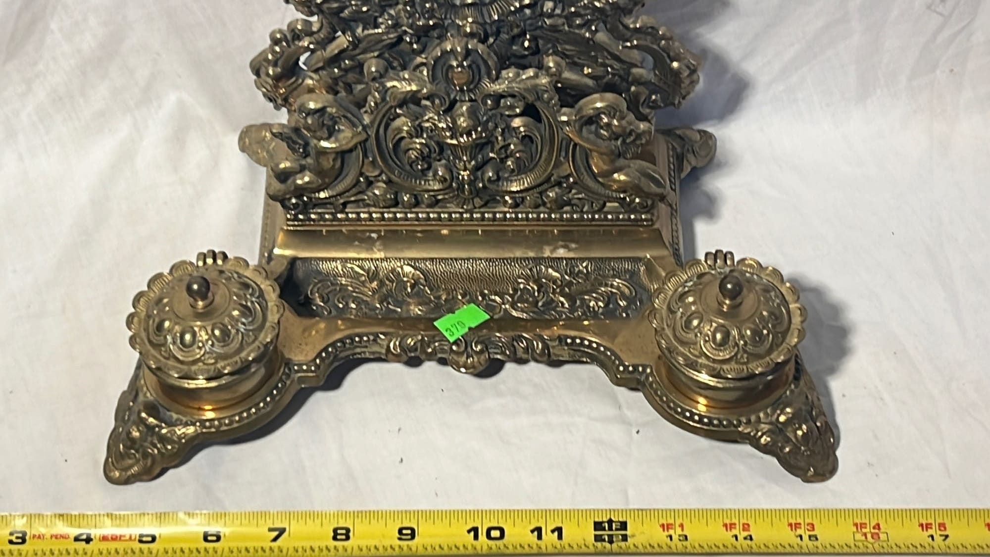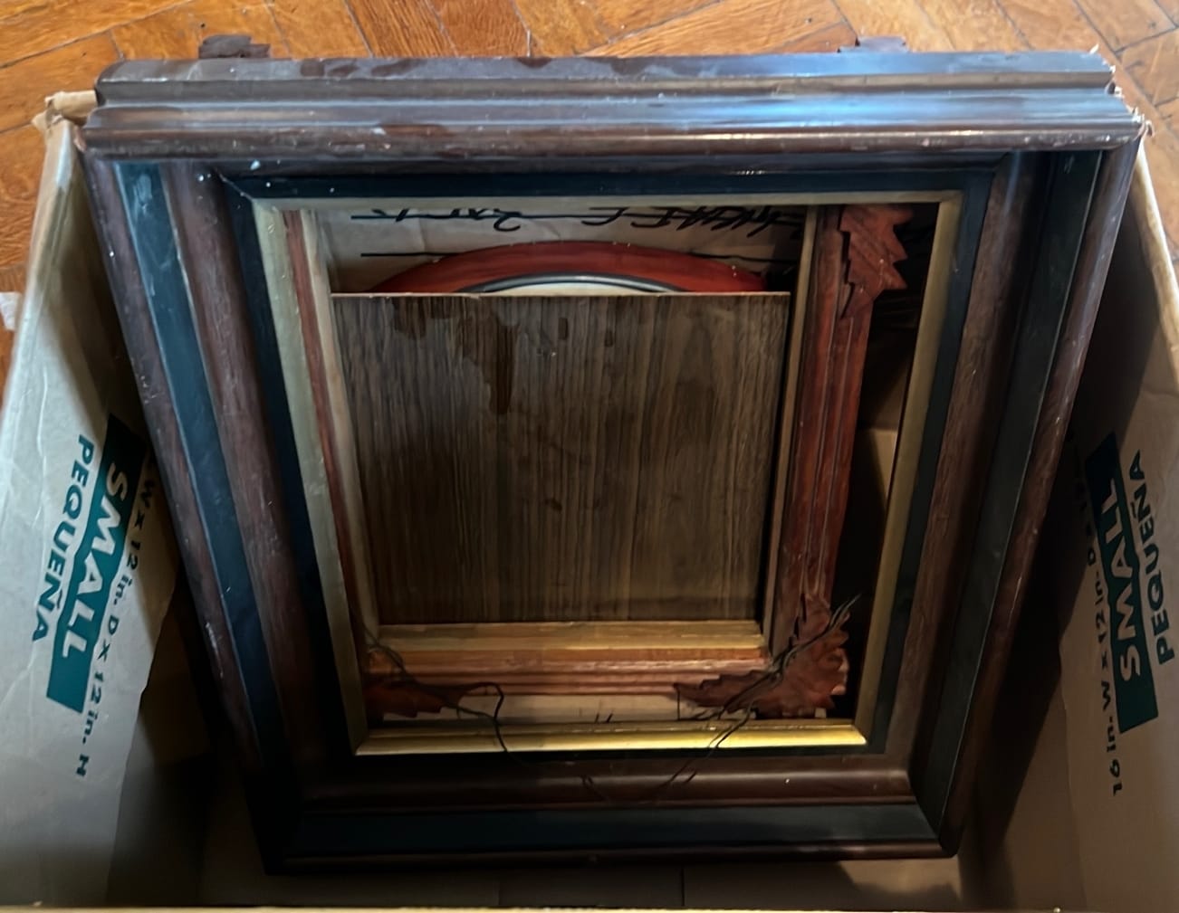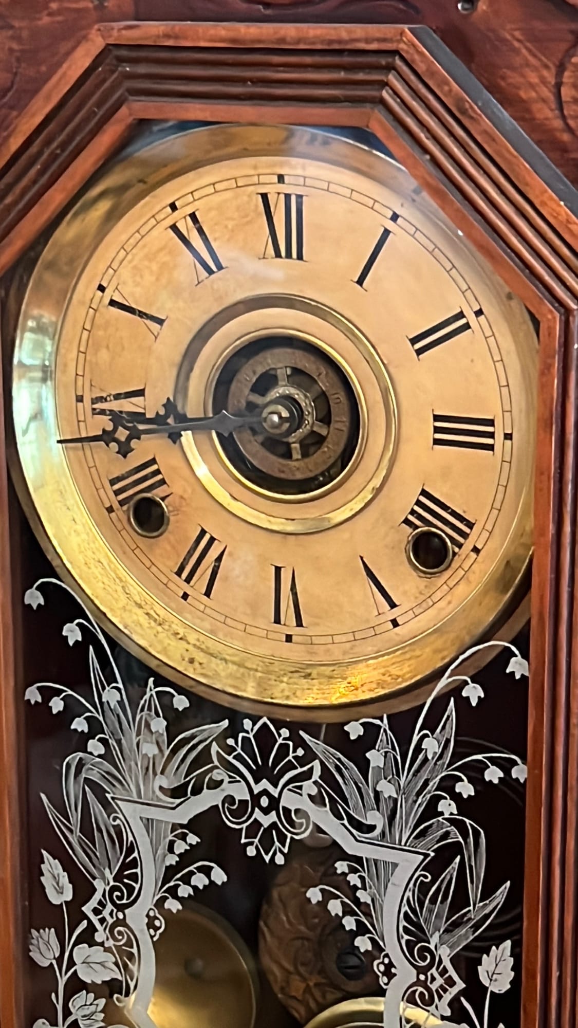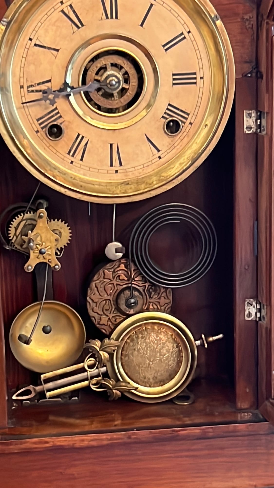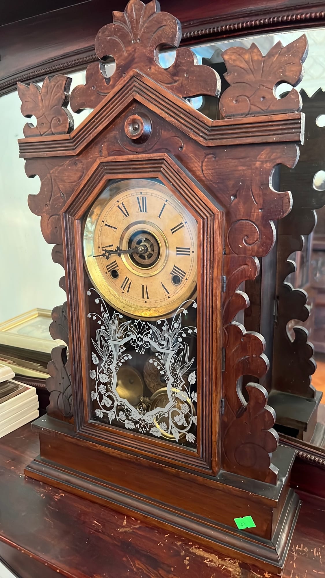 42 Vintage Ornate Wood Mantel Clock 14”x22”x4.5”