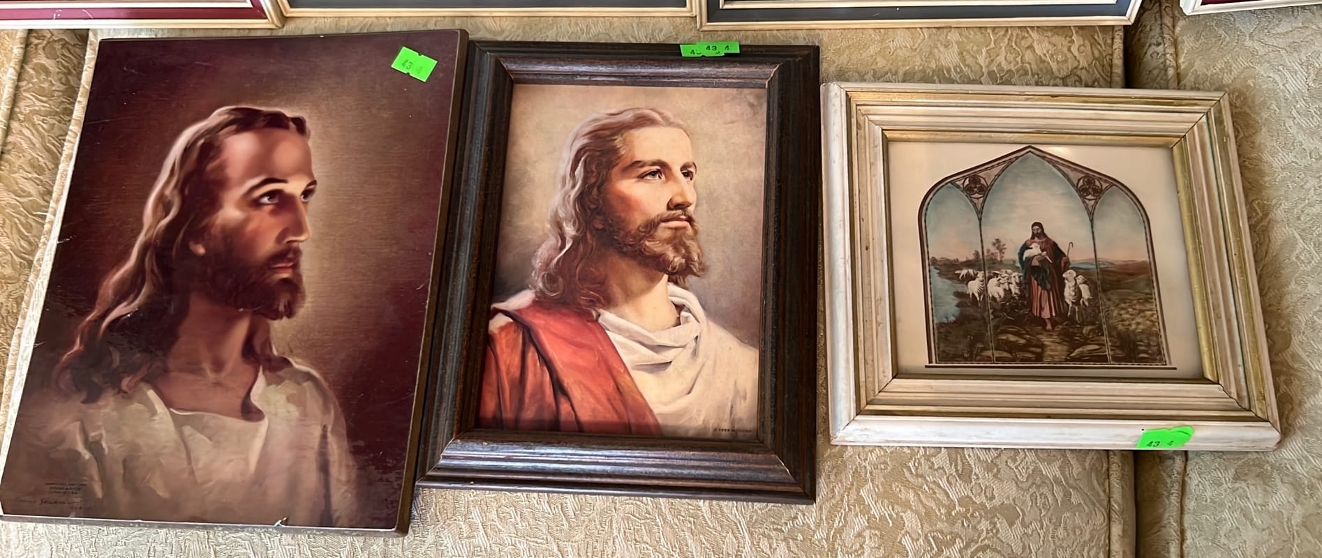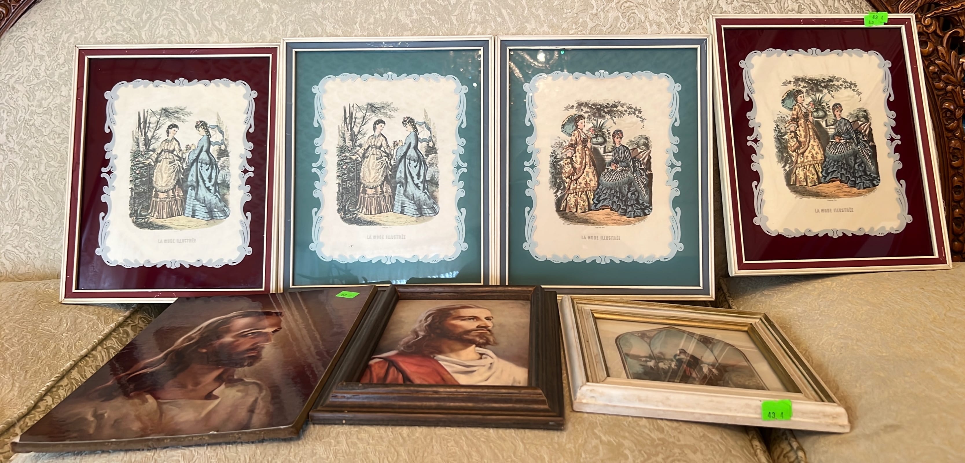 43 Four La Mode Illustree Framed Pictures 8.75”x10.75” & Three Religious Framed Pictures 8”x7”, 7”x9”, 8”x10”