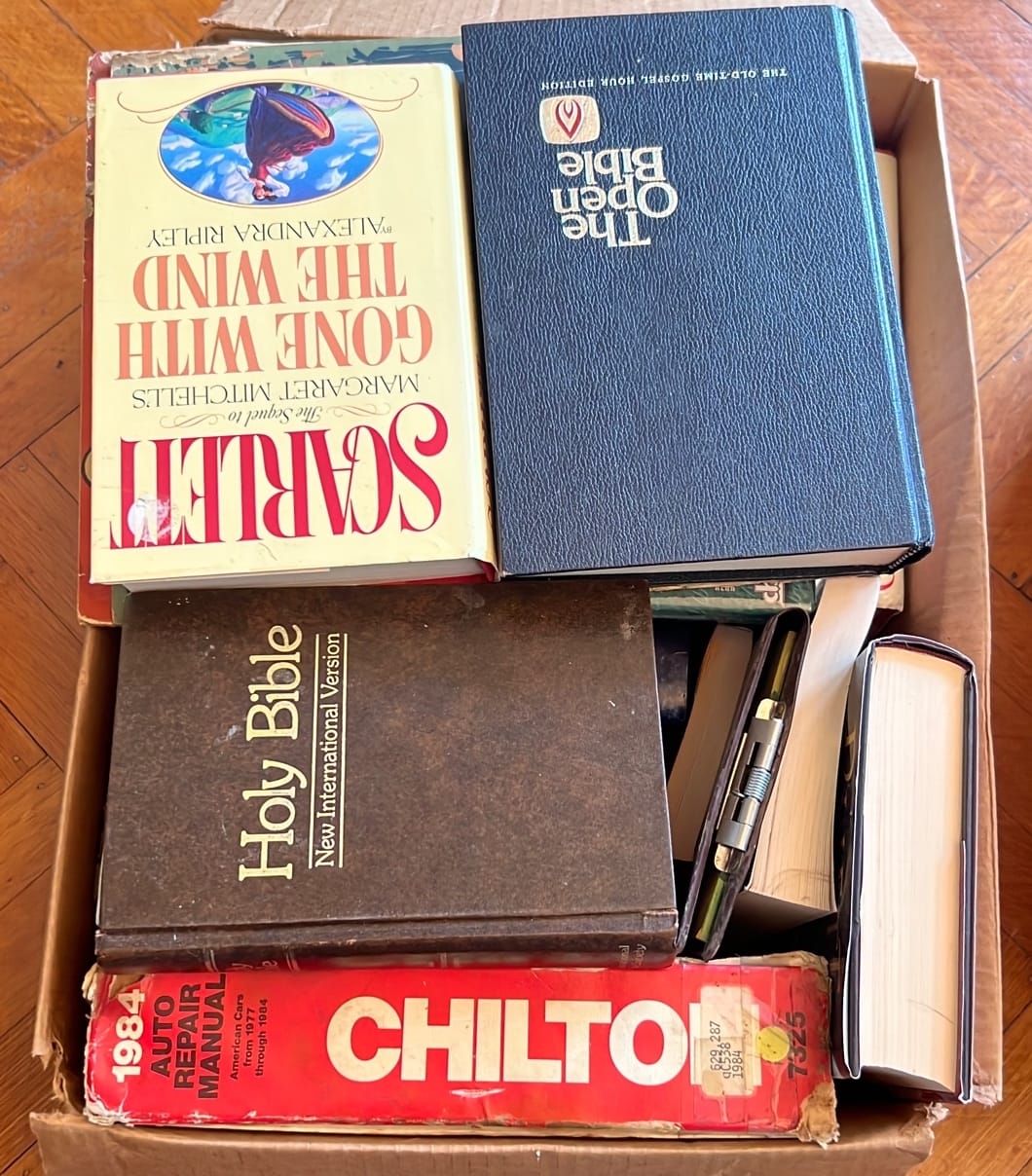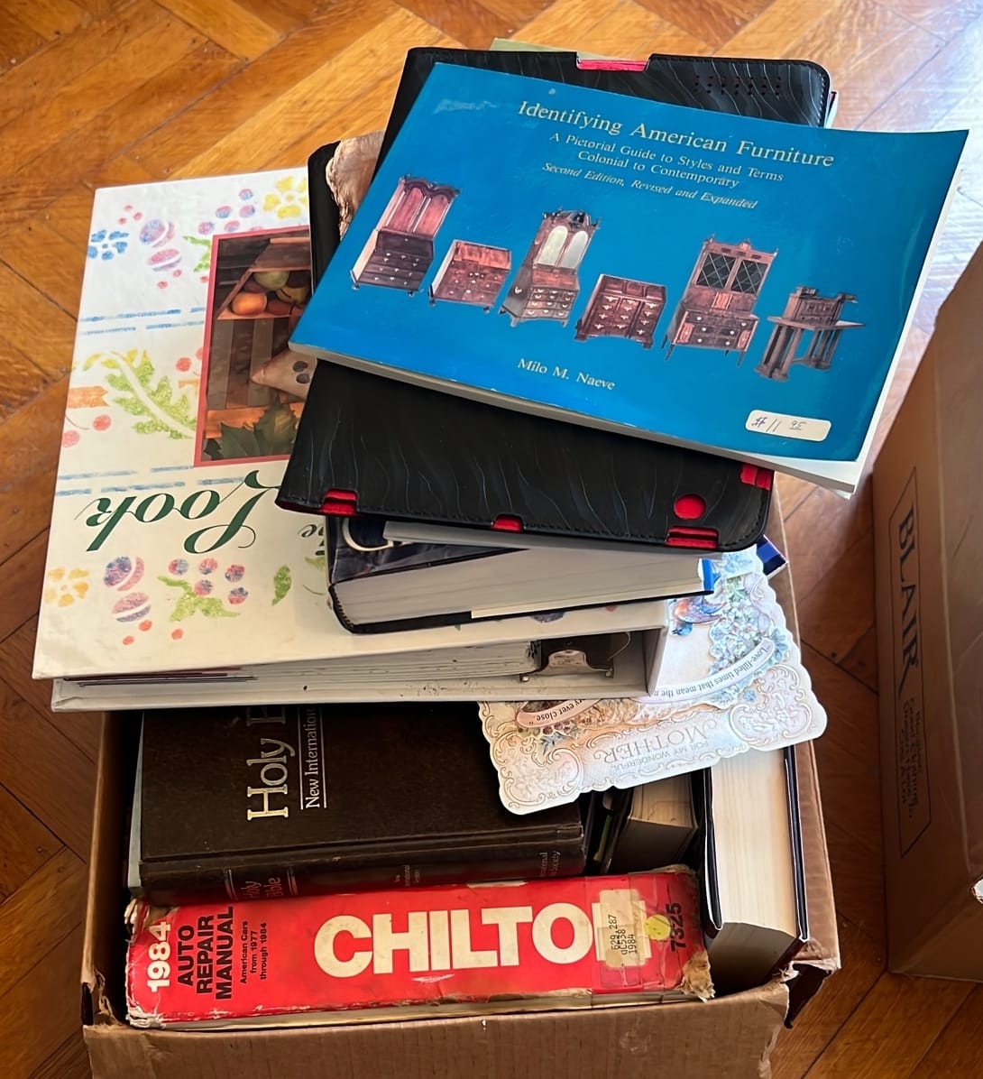 45 Book assortment • Bible • The Country Look • Identifying American Furniture • Scarlett Gone With The Wind • Chilton Auto Repair • Billy Graham and more