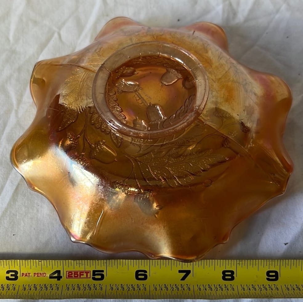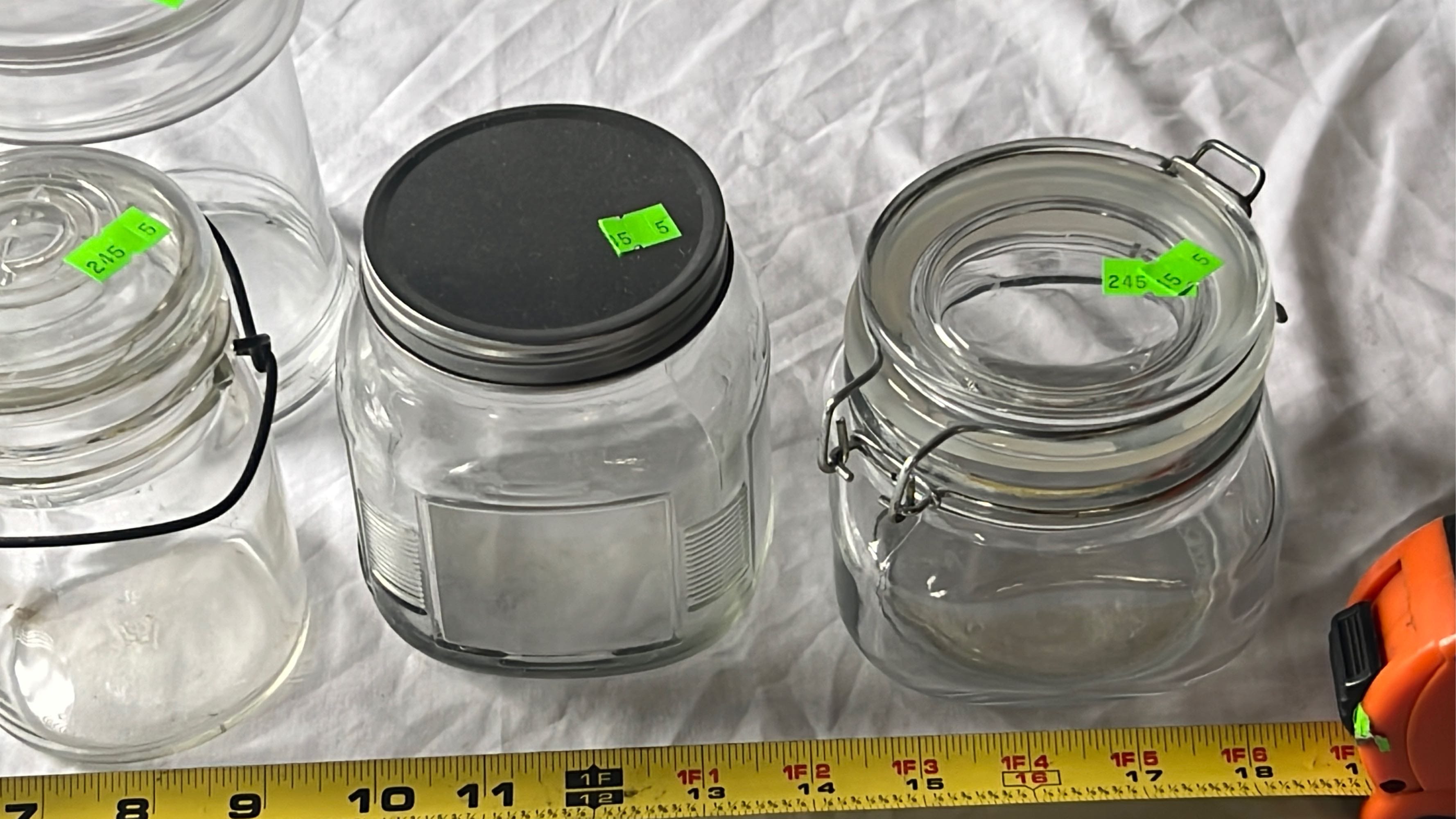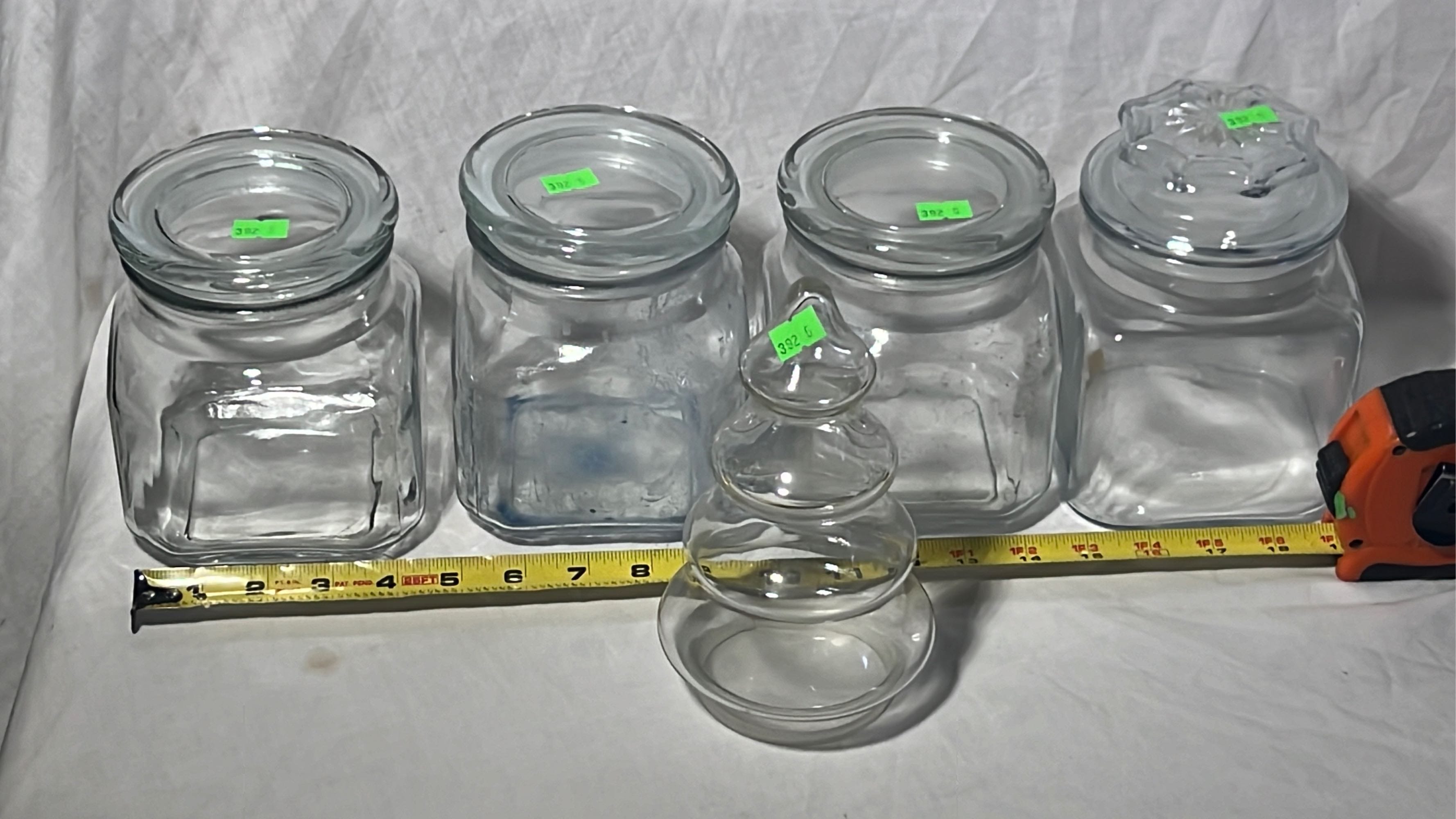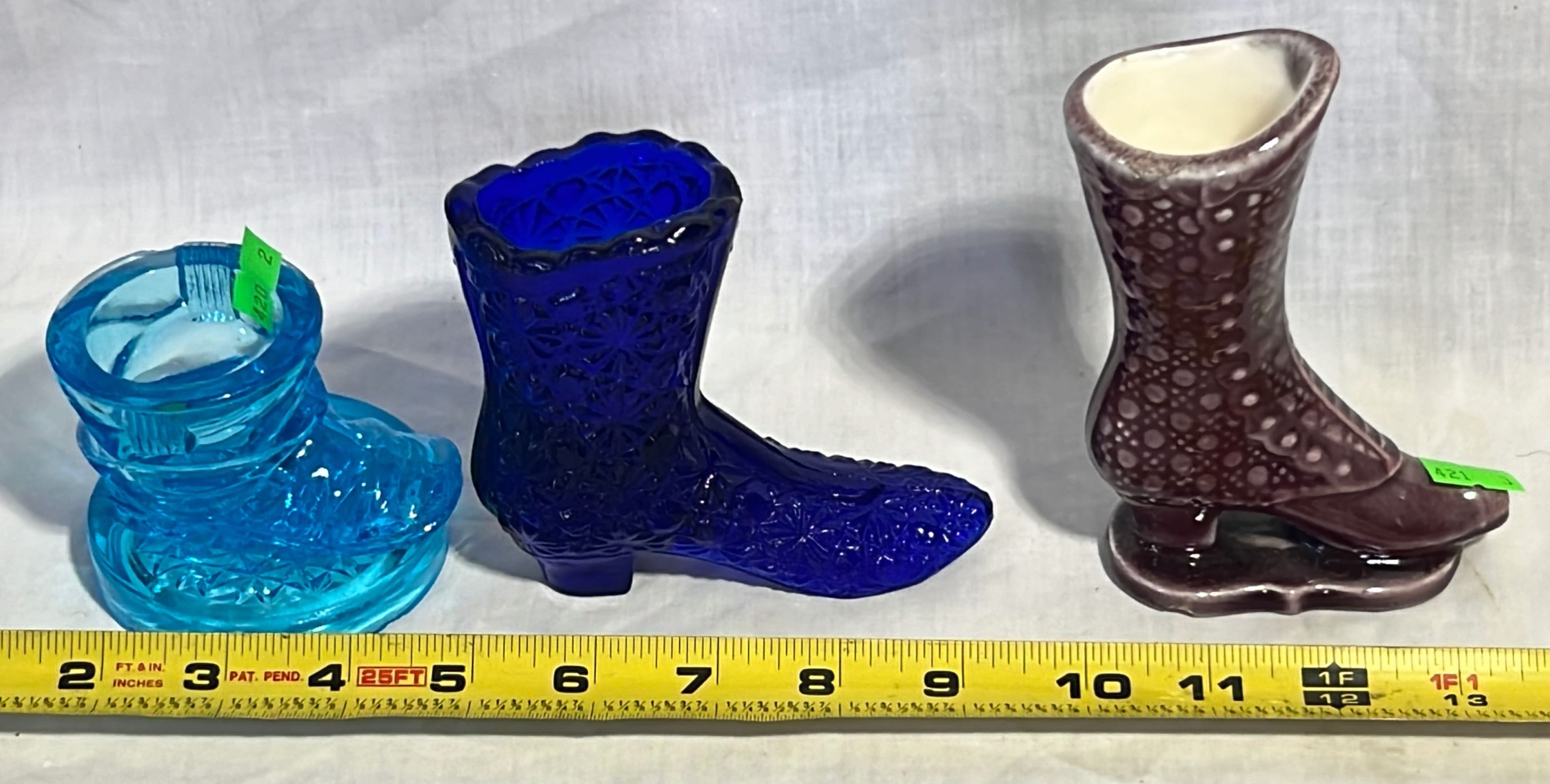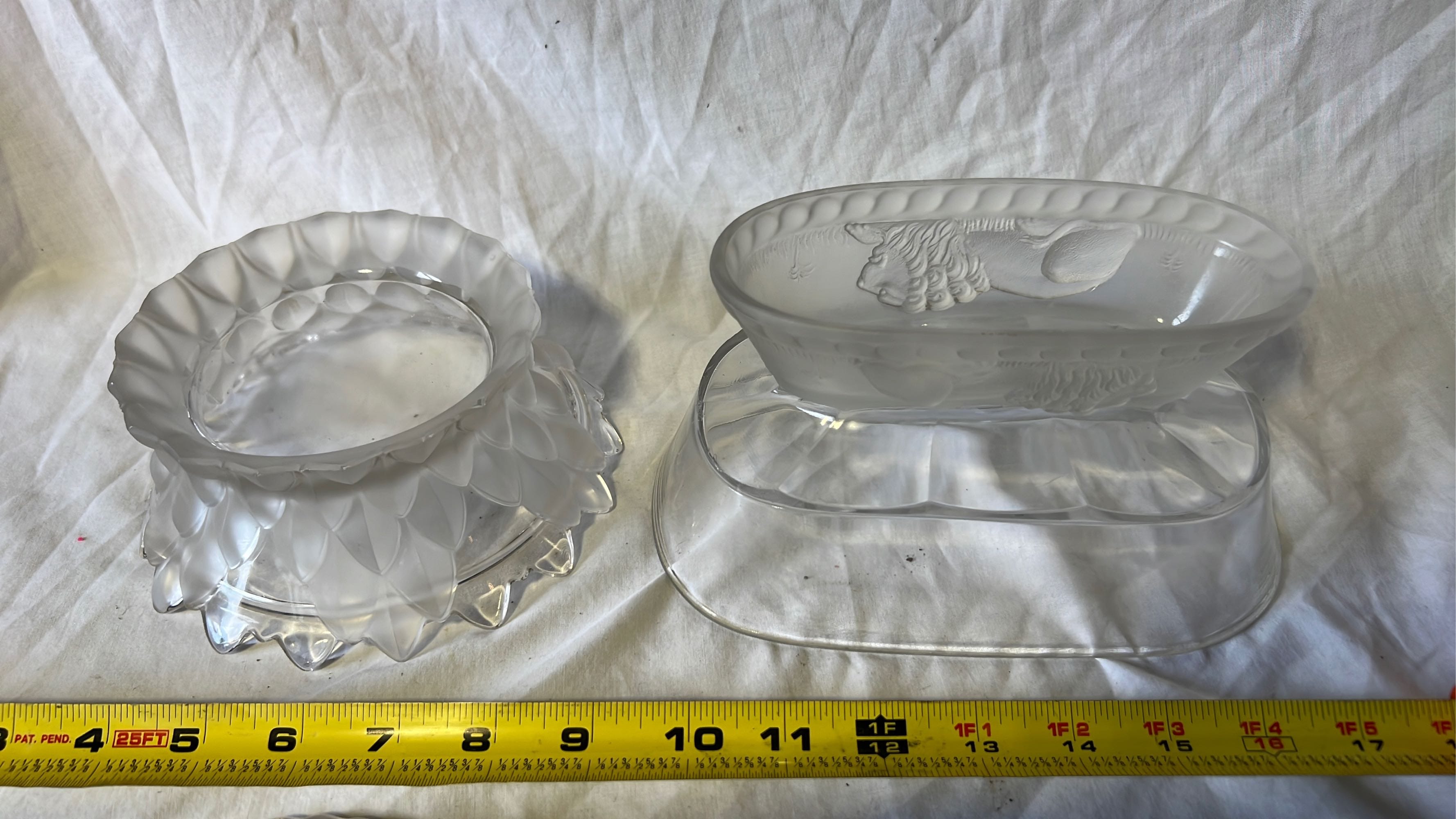 106 Gibson Blue Glass Lid 2.5” • Clear Ball No. 10 Lid 2.25” • Vintage Letter Opener • Brown Funeral Home Thermometer Advertisement 6.5” • Peacock Feathers 16”
