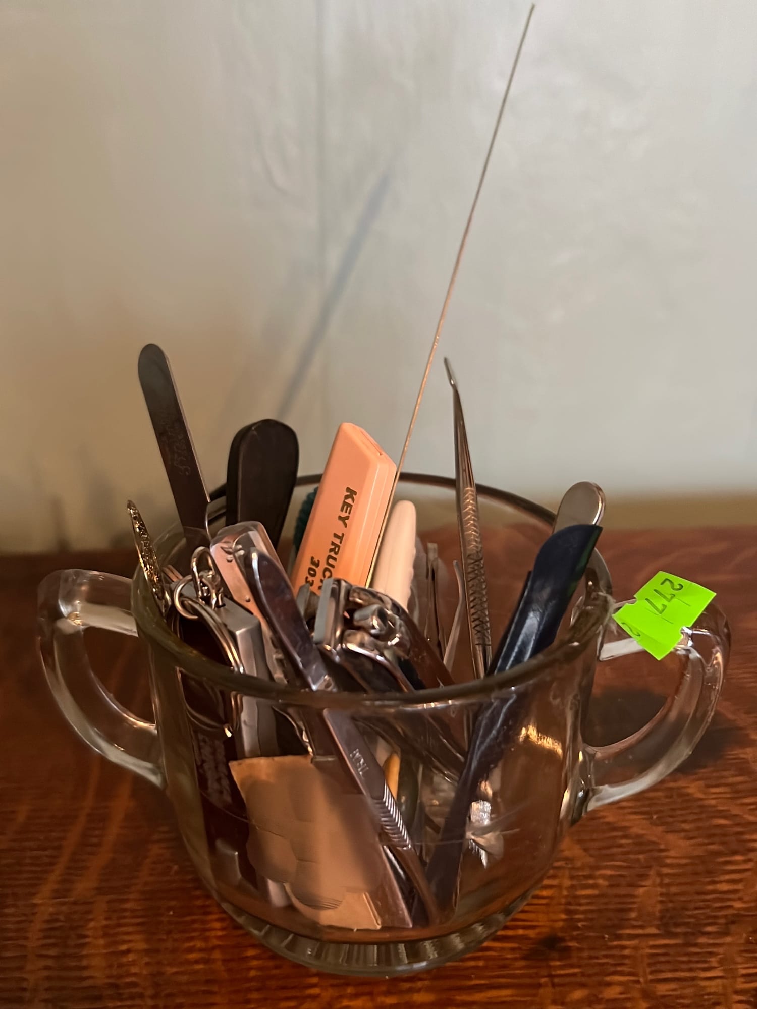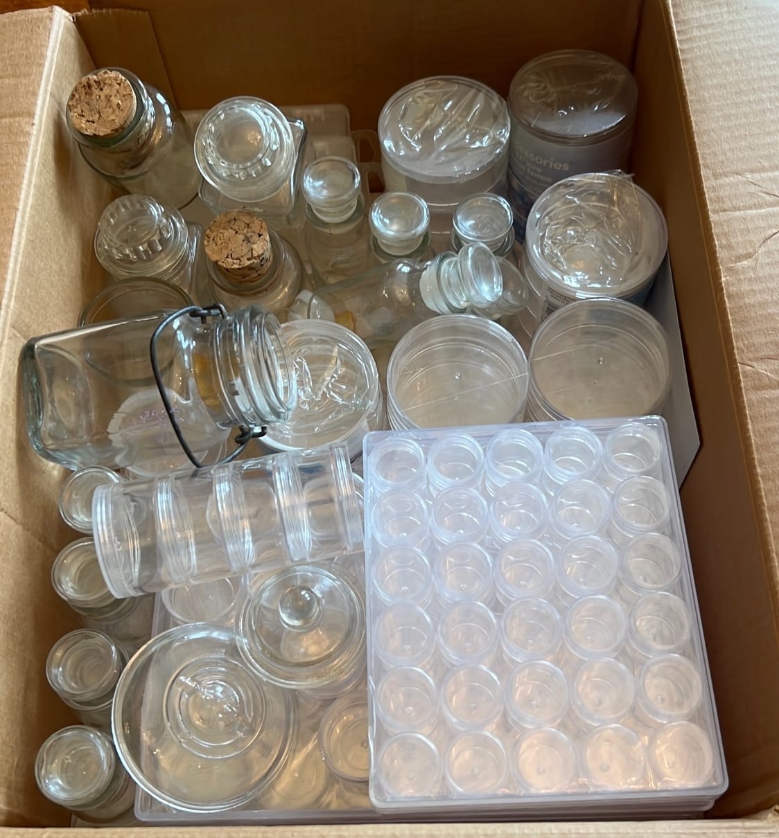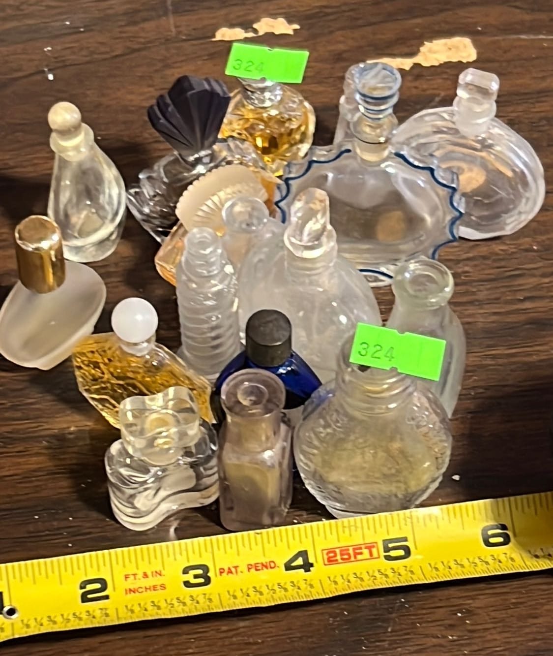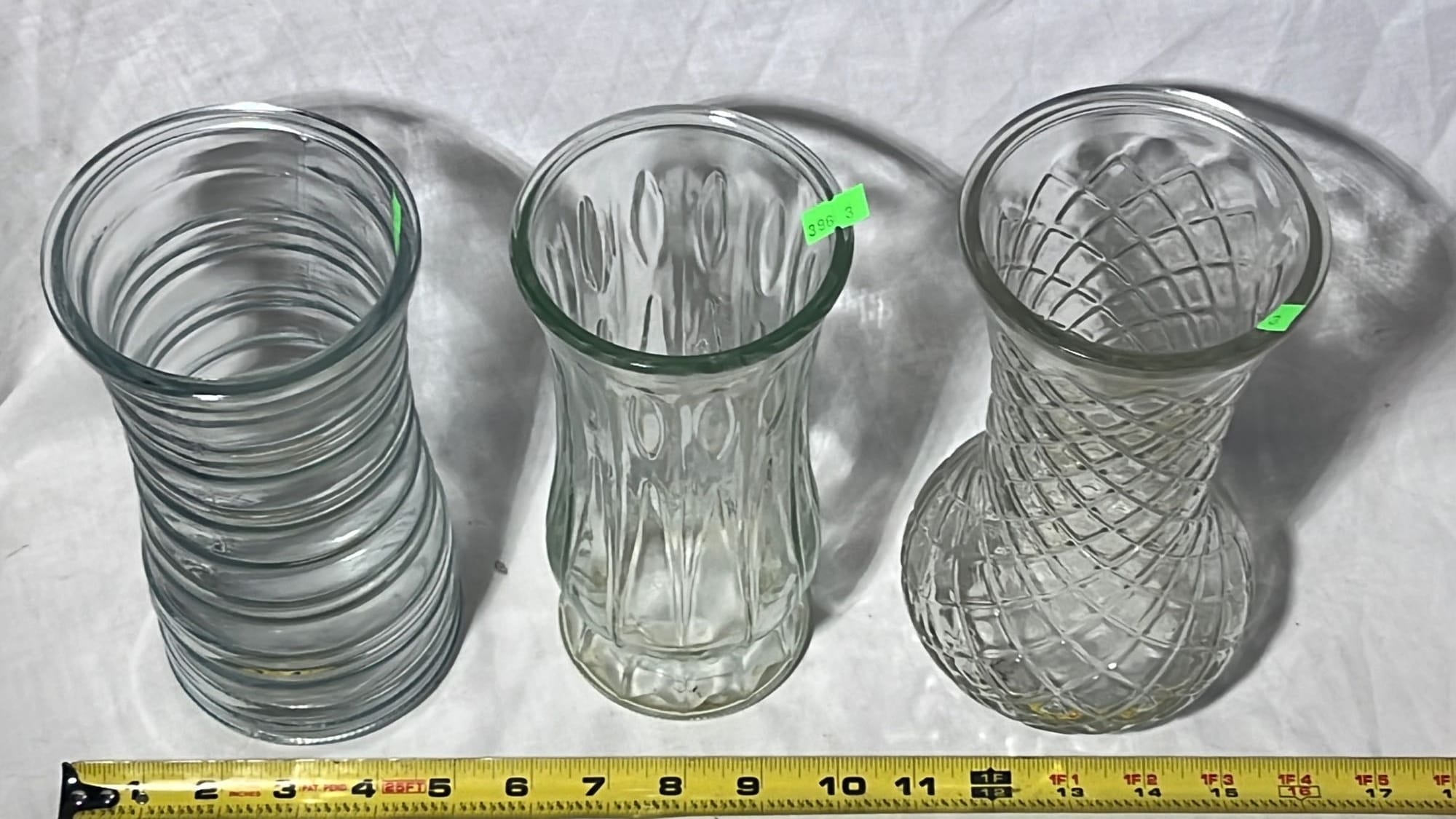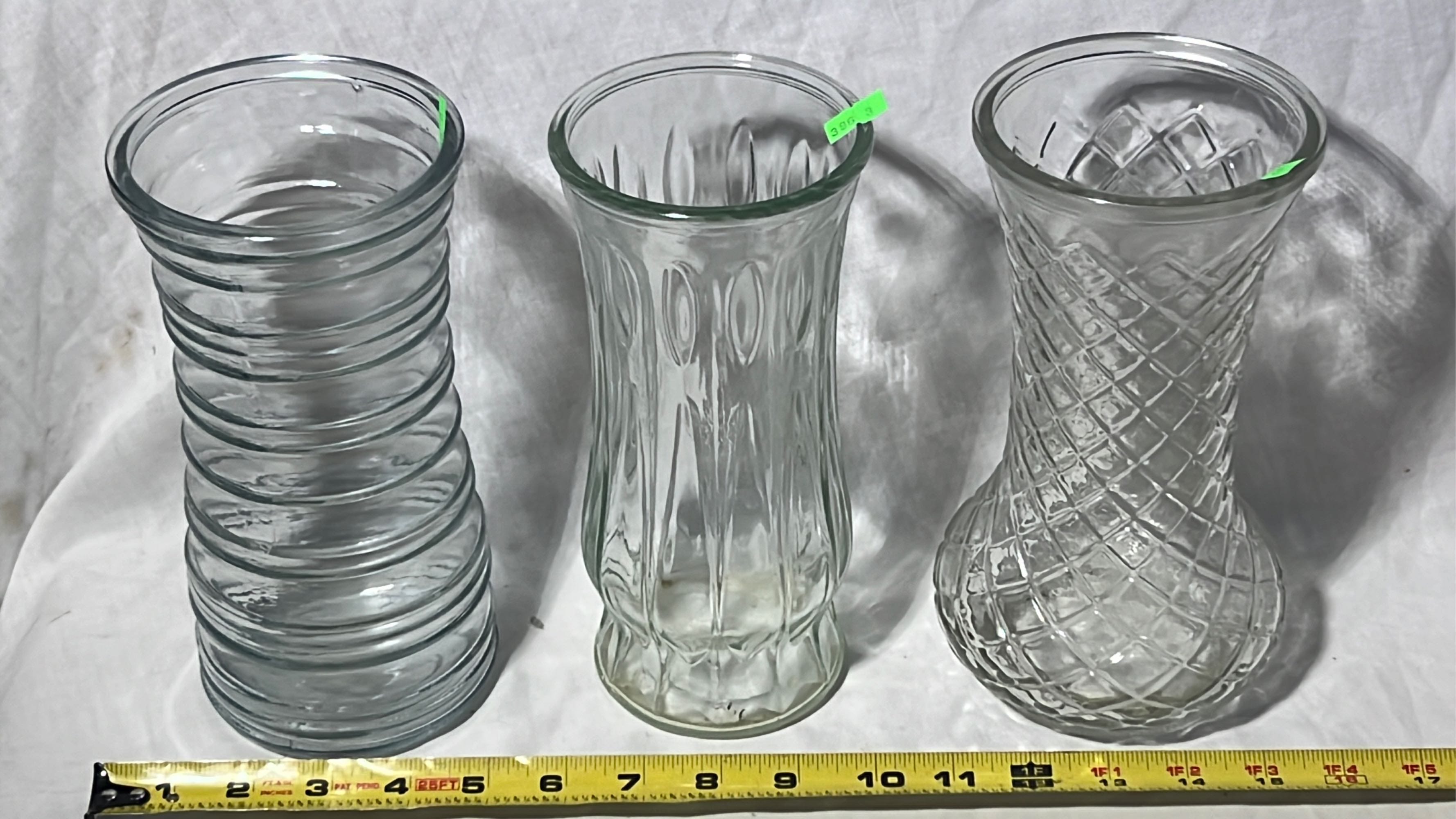 106 Gibson Blue Glass Lid 2.5” • Clear Ball No. 10 Lid 2.25” • Vintage Letter Opener • Brown Funeral Home Thermometer Advertisement 6.5” • Peacock Feathers 16”